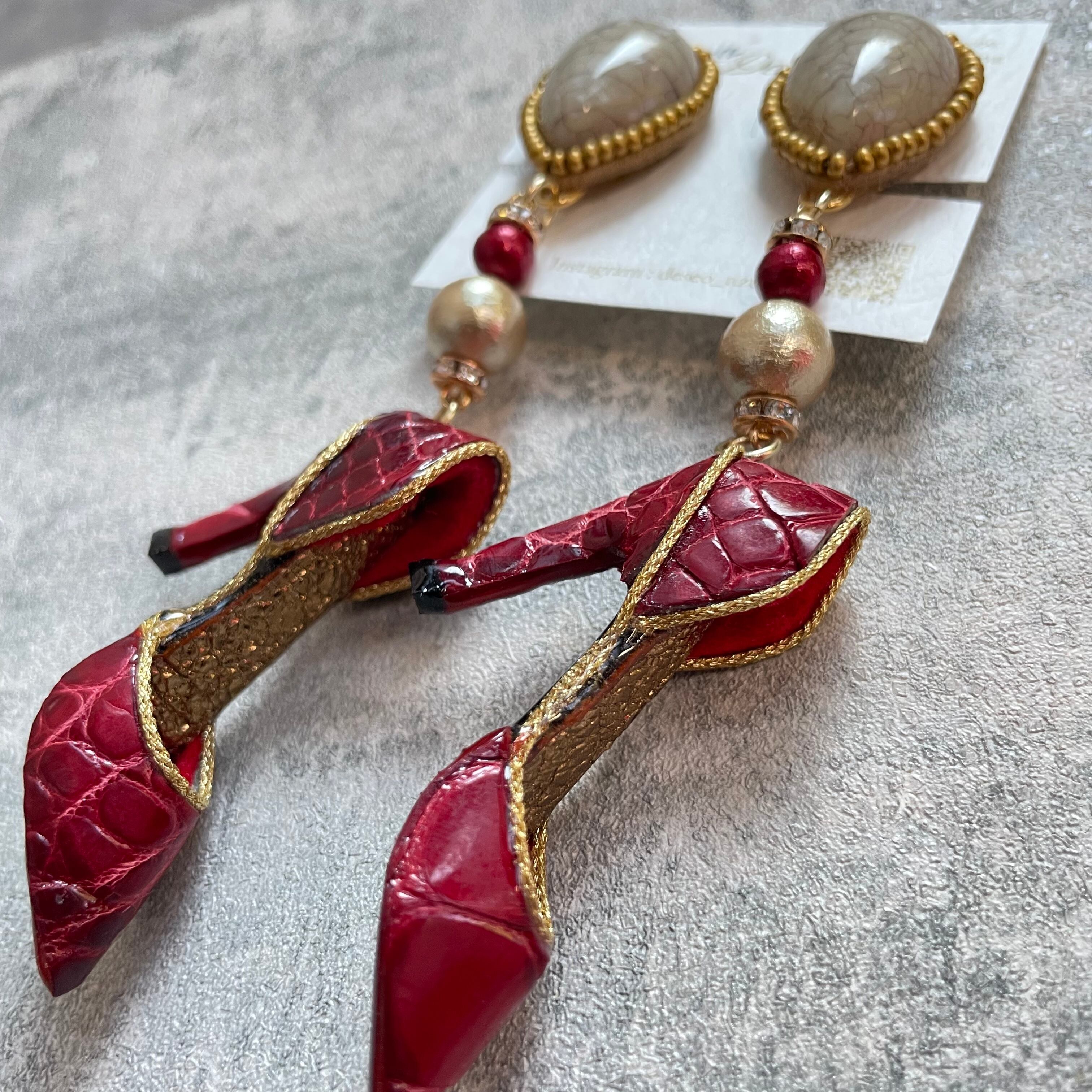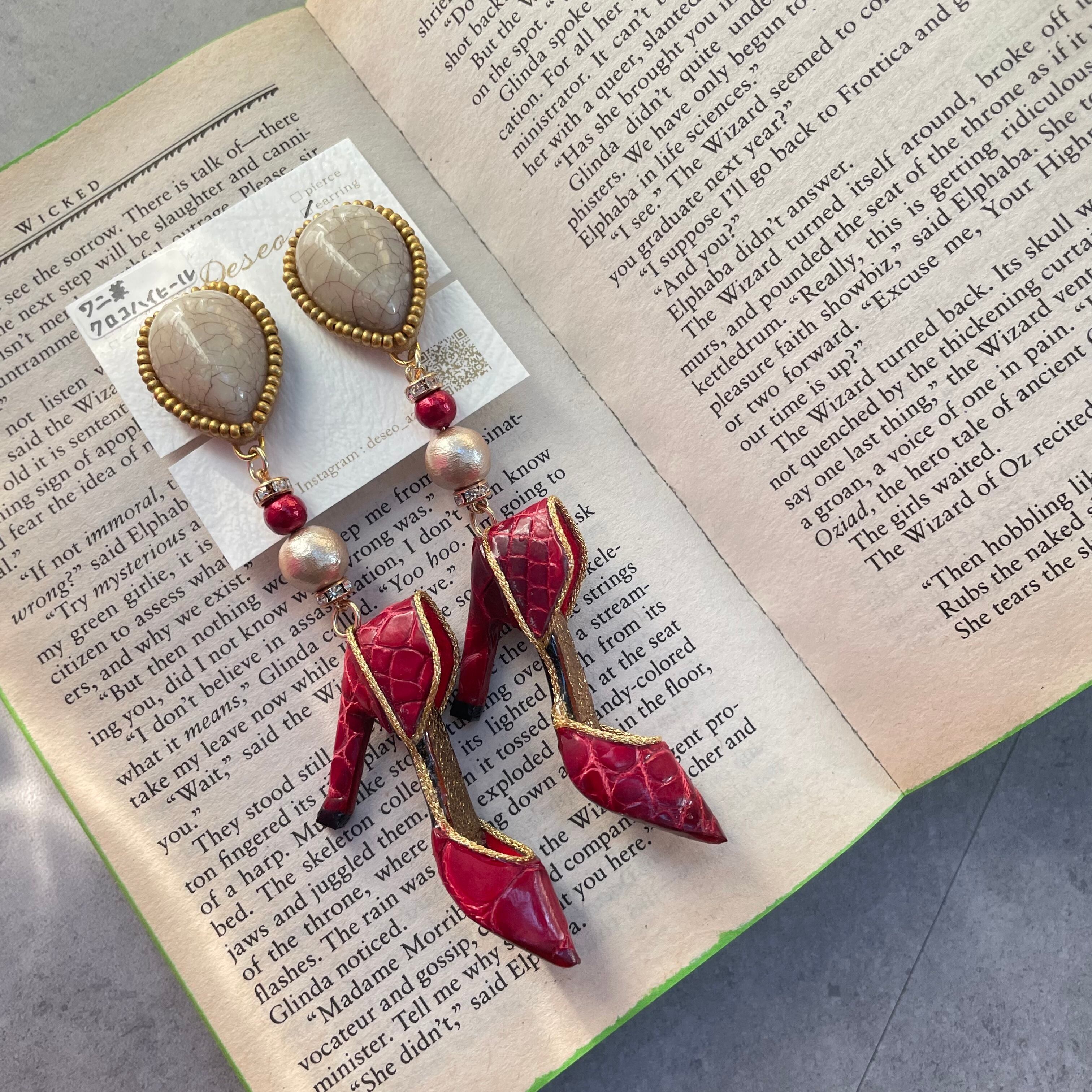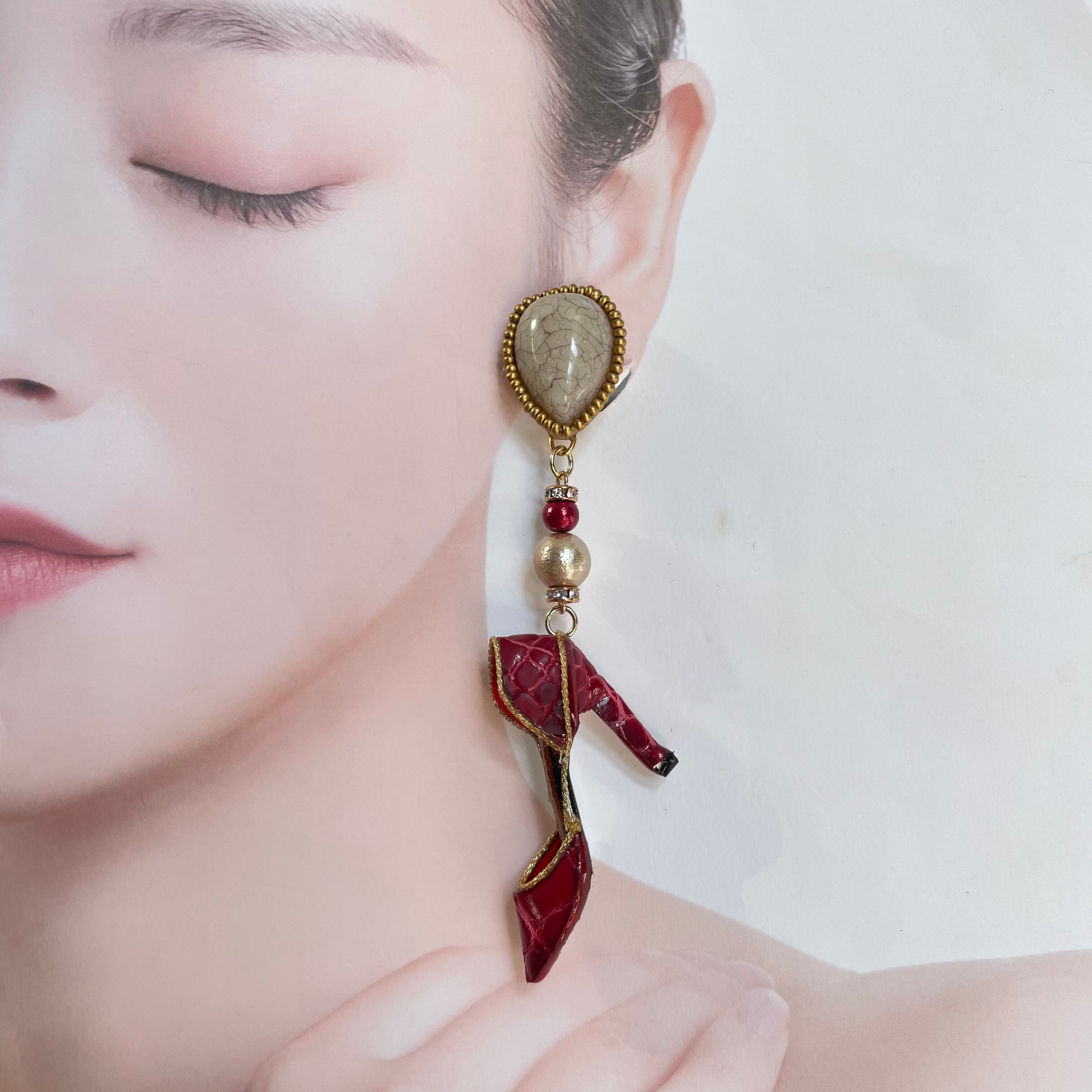 ボルドーワニ革★クロコハイヒール❤️ハイヒールピアス ハイヒールイヤリング NO.392