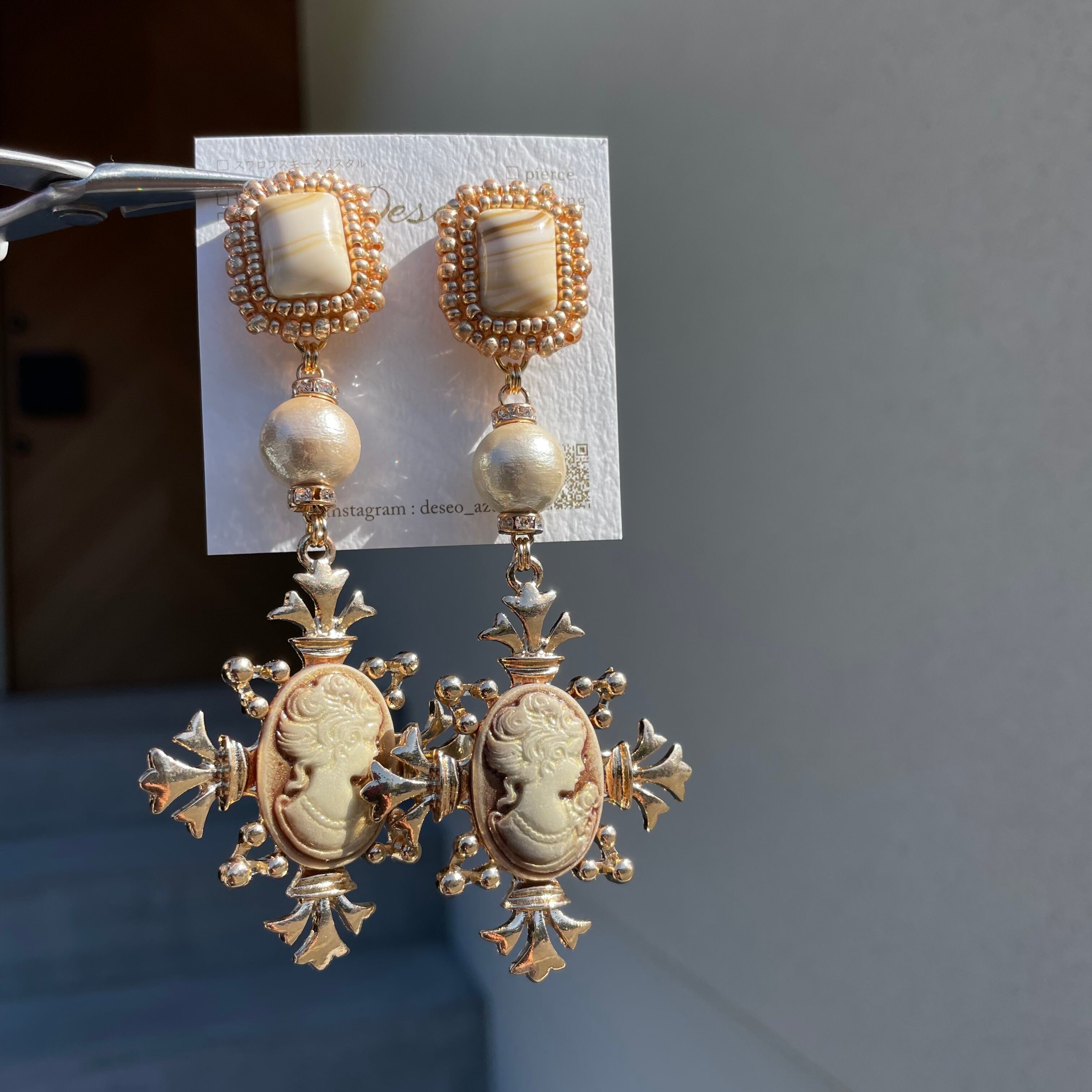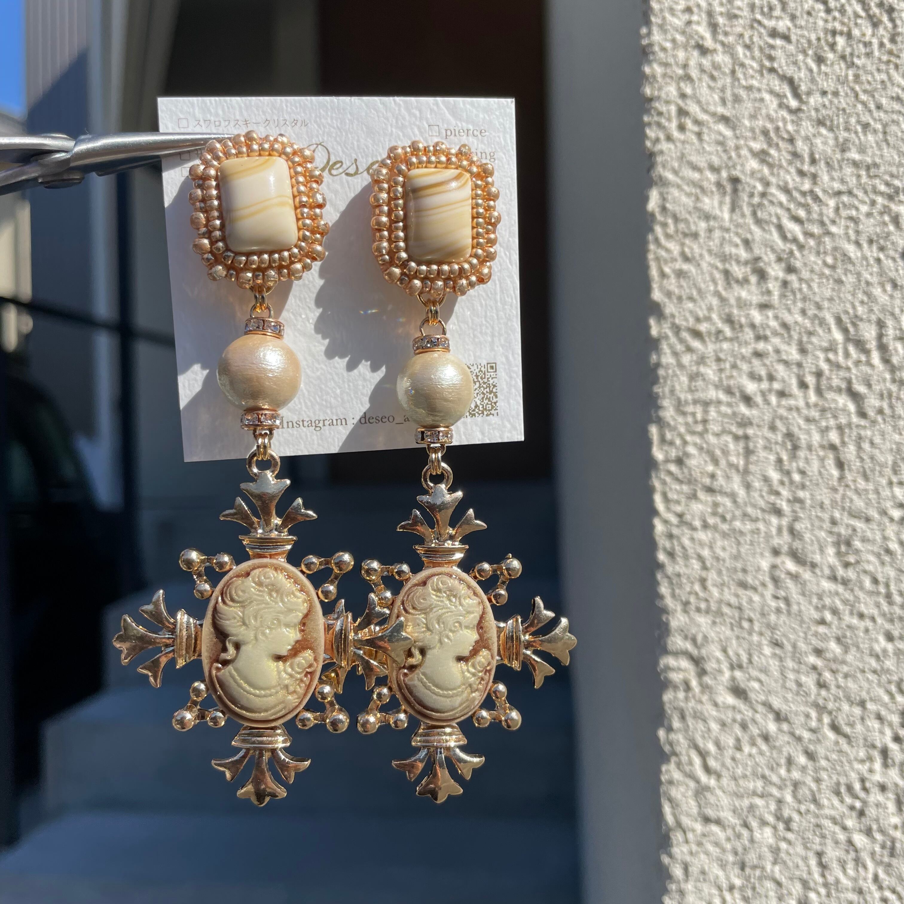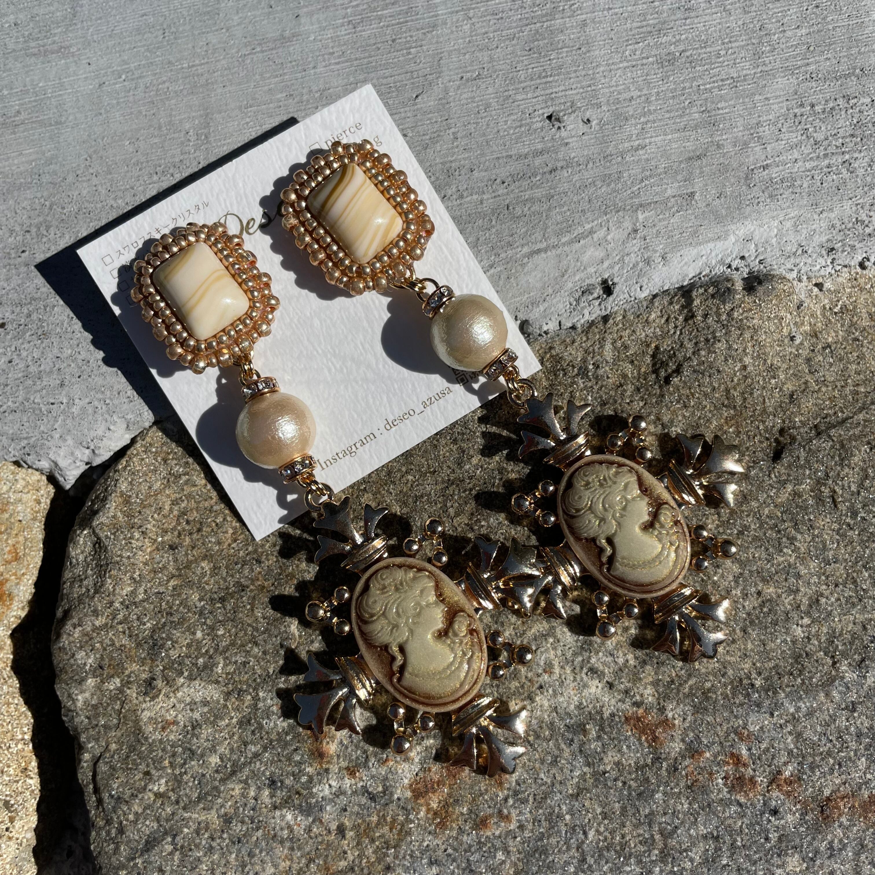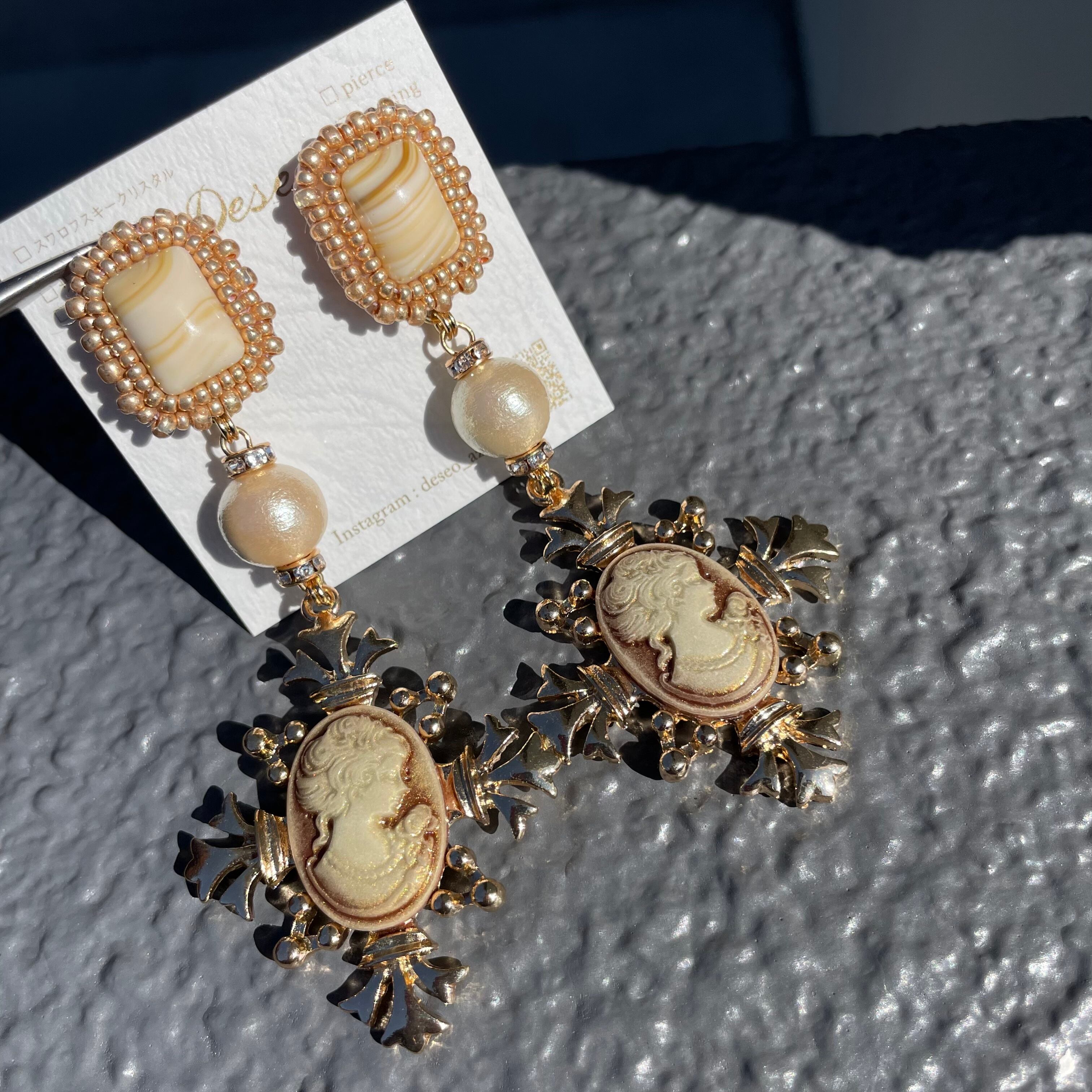 揺れるcameo❤️カメオピアス カメオイヤリング NO.401