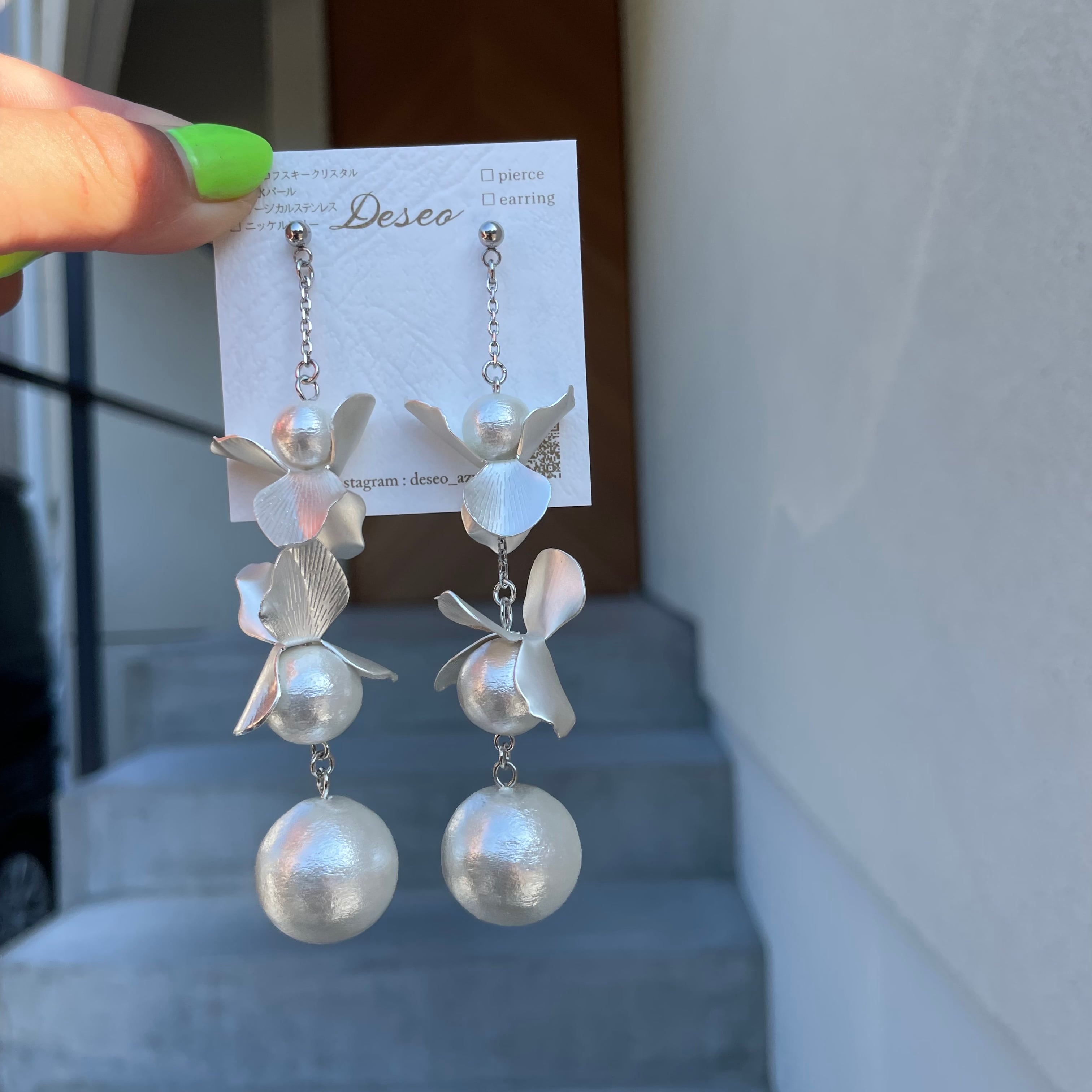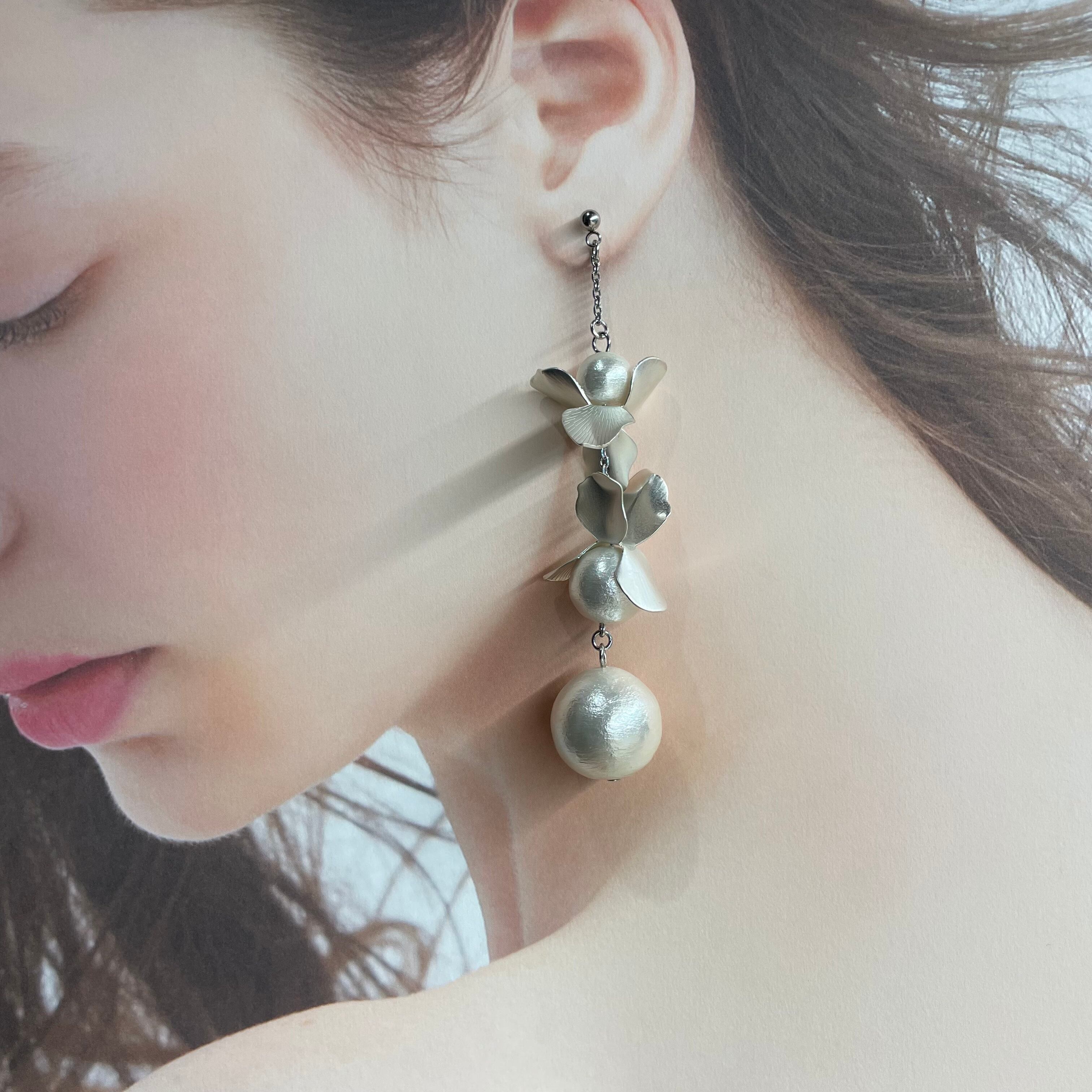 シルバーフラワー × パール✨お花ピアス お花イヤリング ブライダルピアス ブライダルイヤリング NO.411