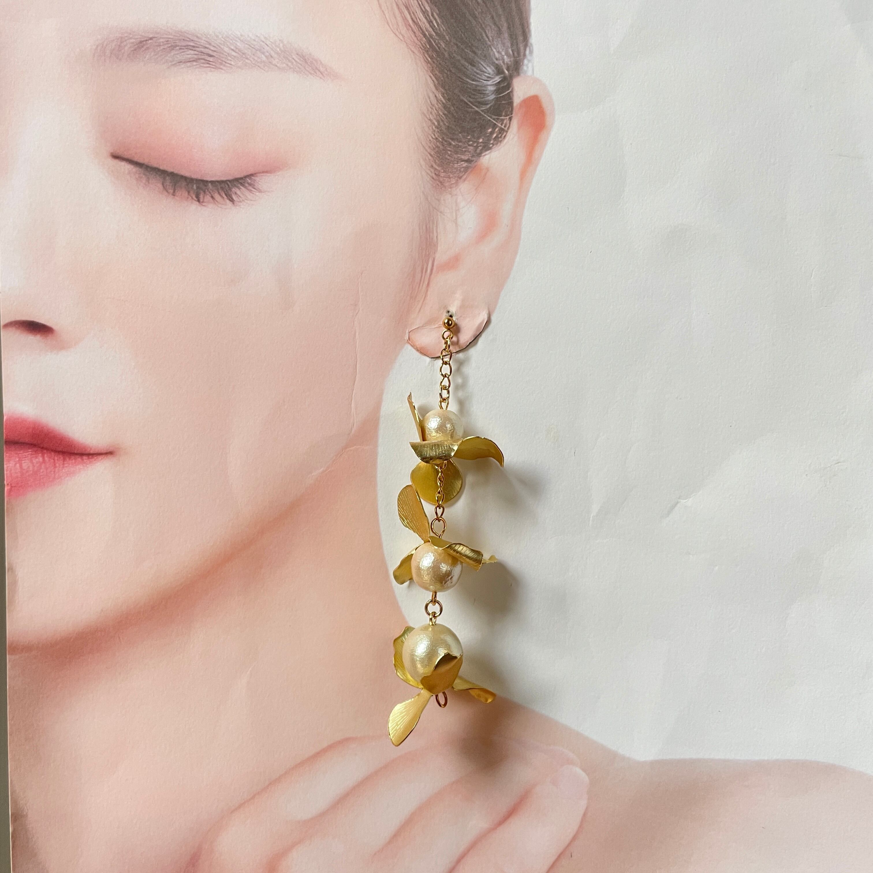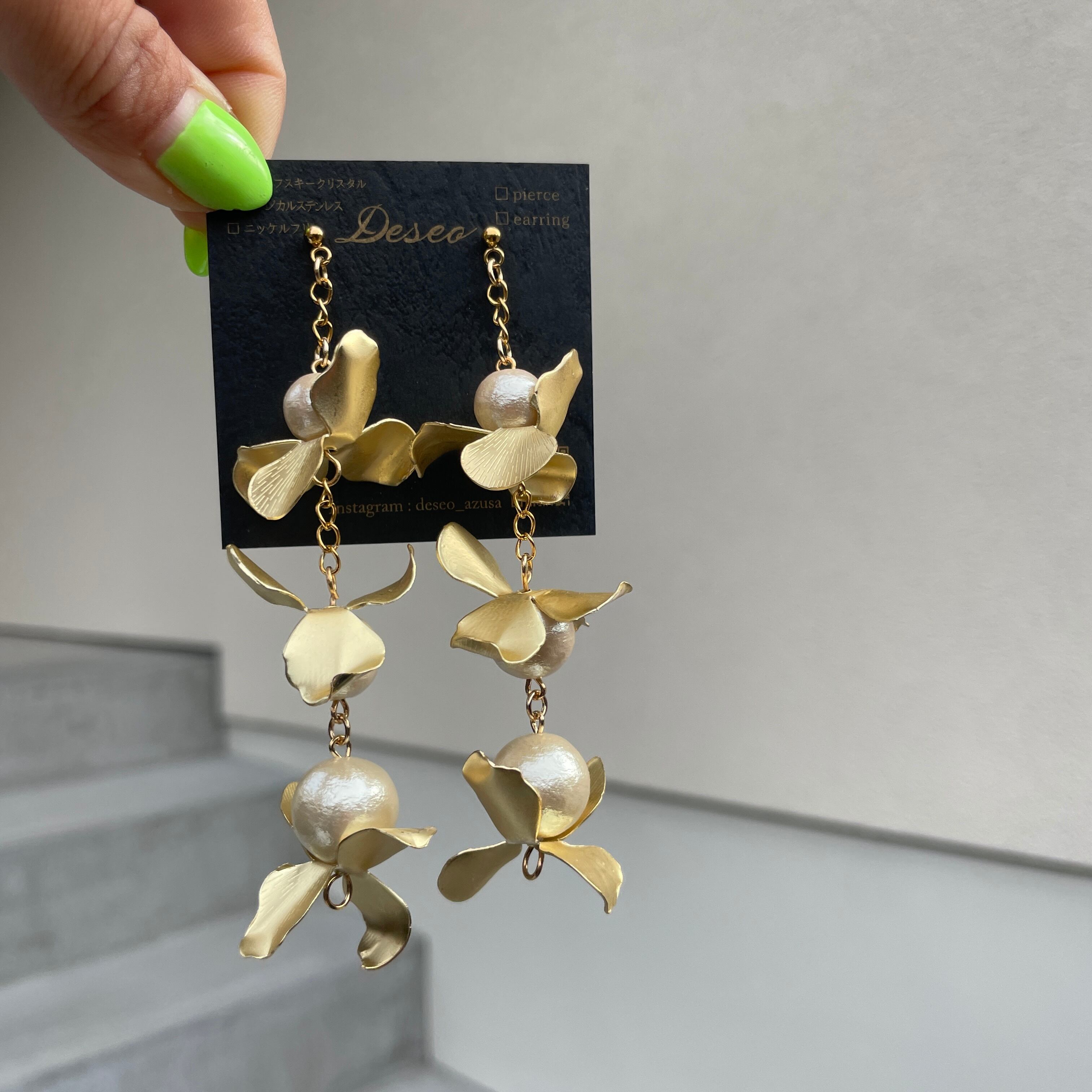 Flower❤️マットゴールド✨お花ピアス お花イヤリング 普段使いにもブライダルアクセサリーにも NO.427
