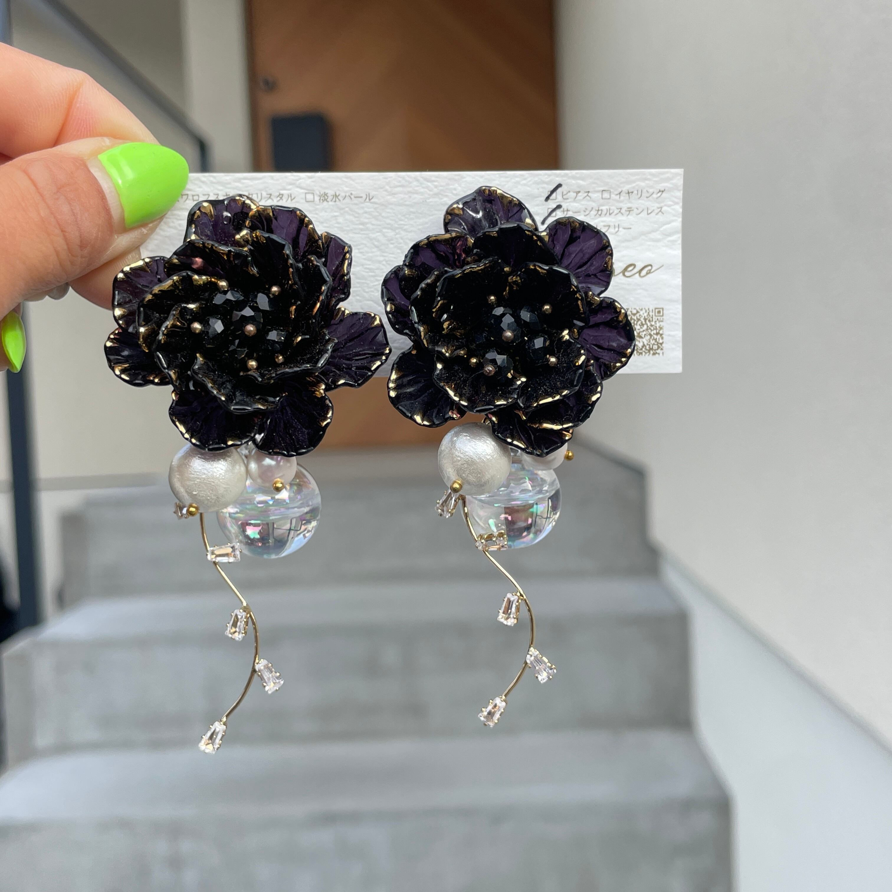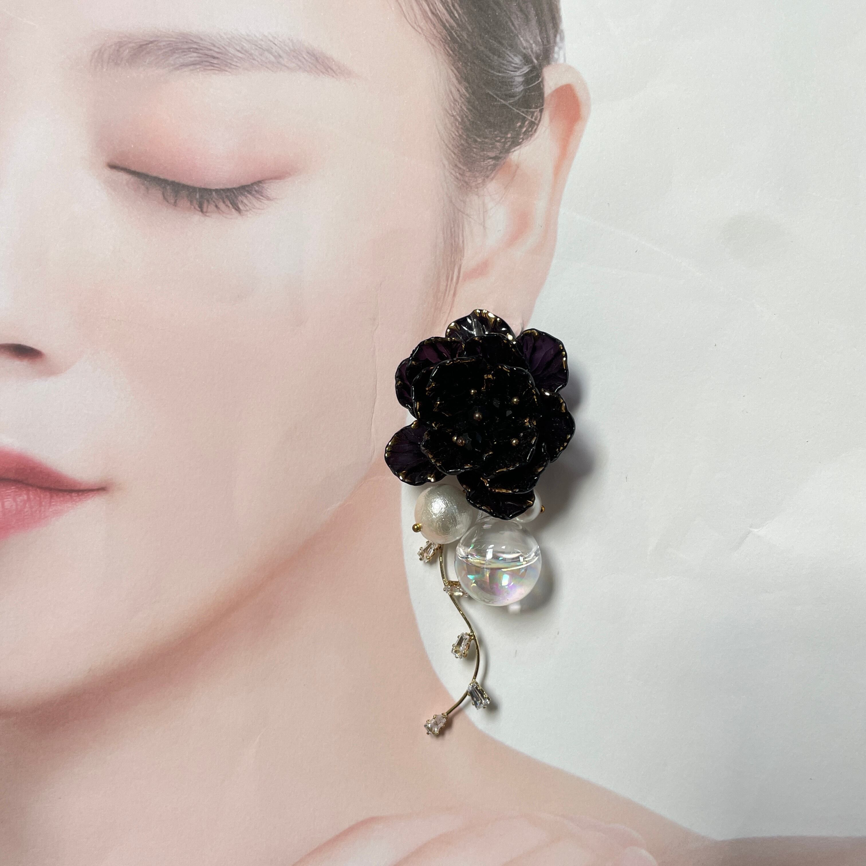 Black Flower❤️お花ピアス お花イヤリング✨ブライダルアクセサリーにも NO.428