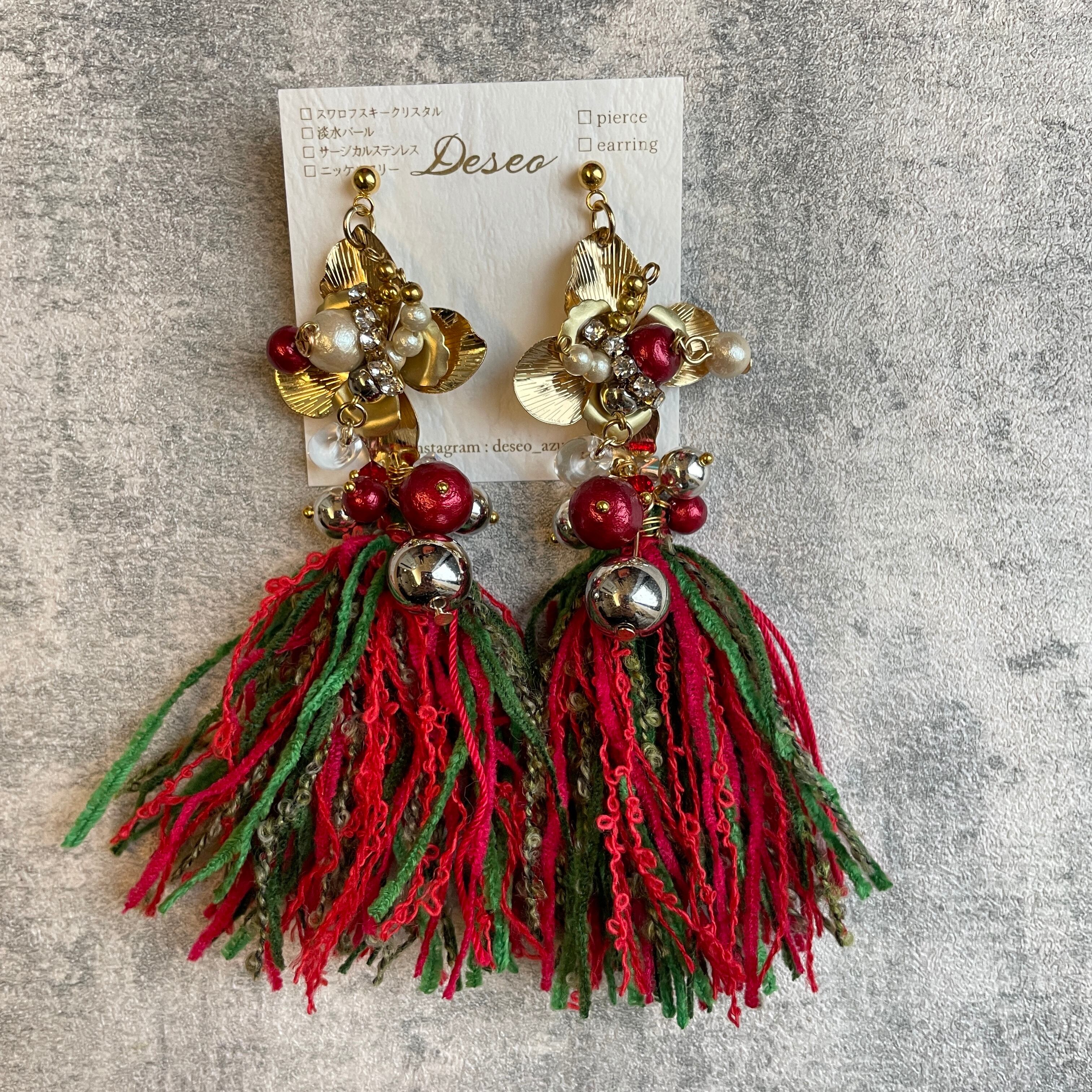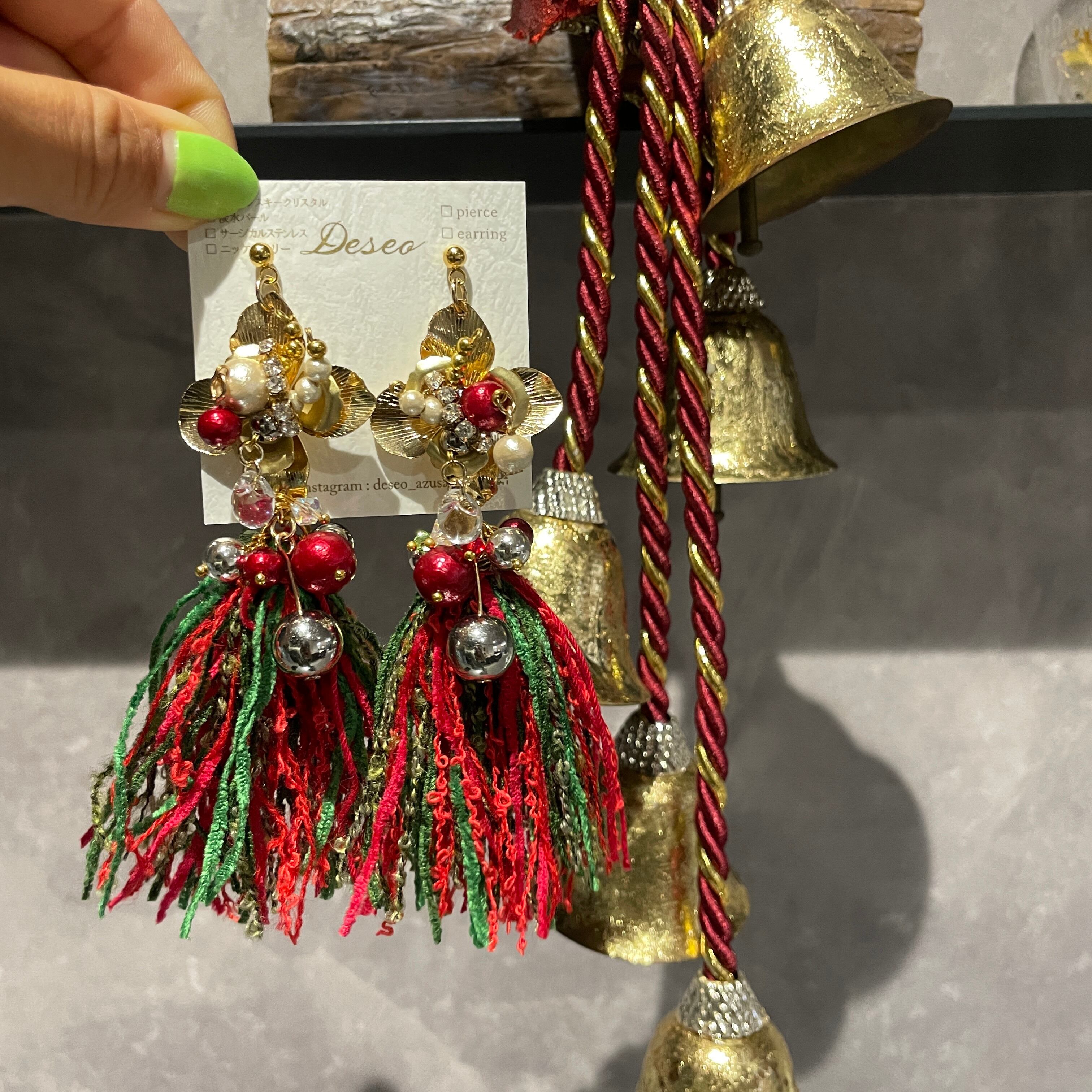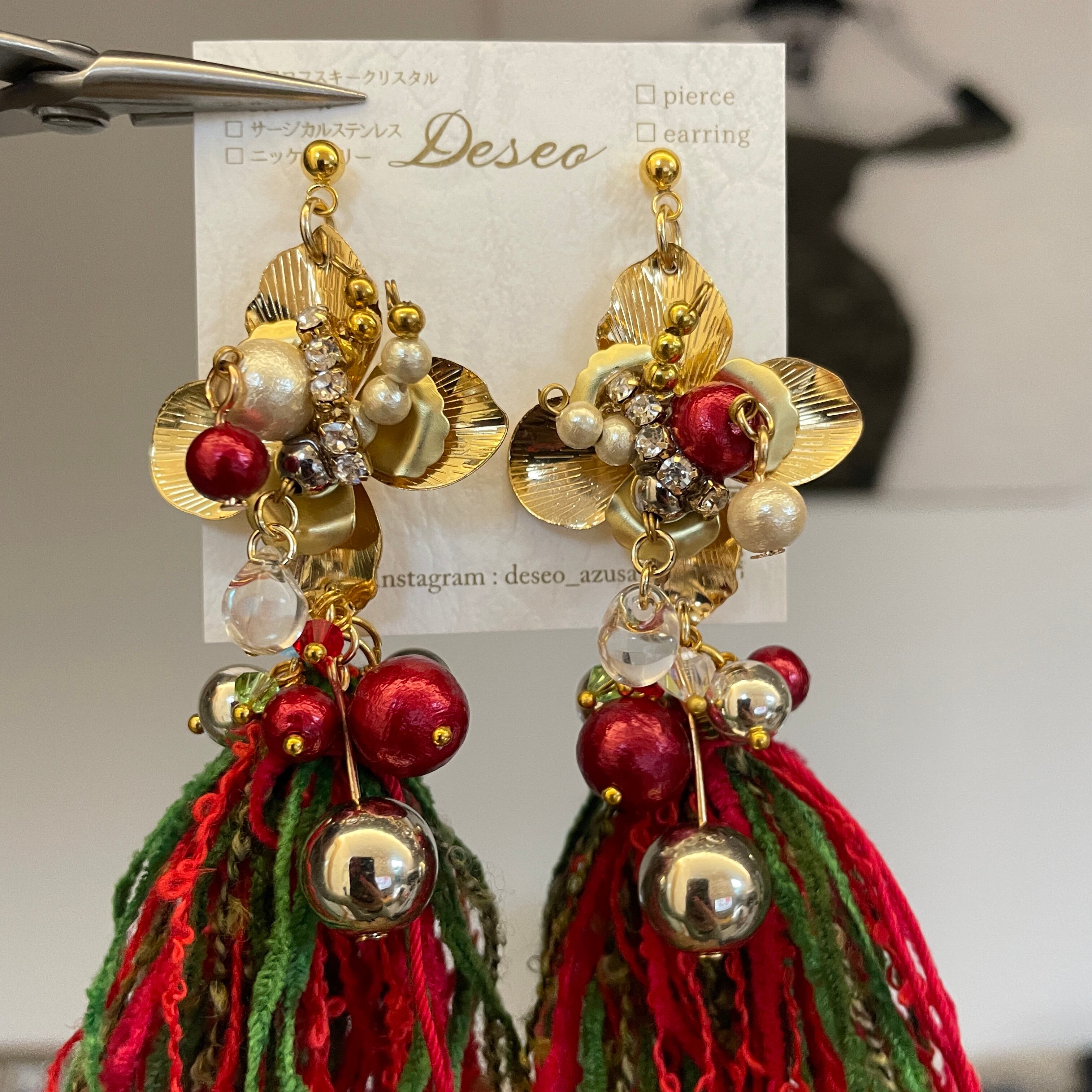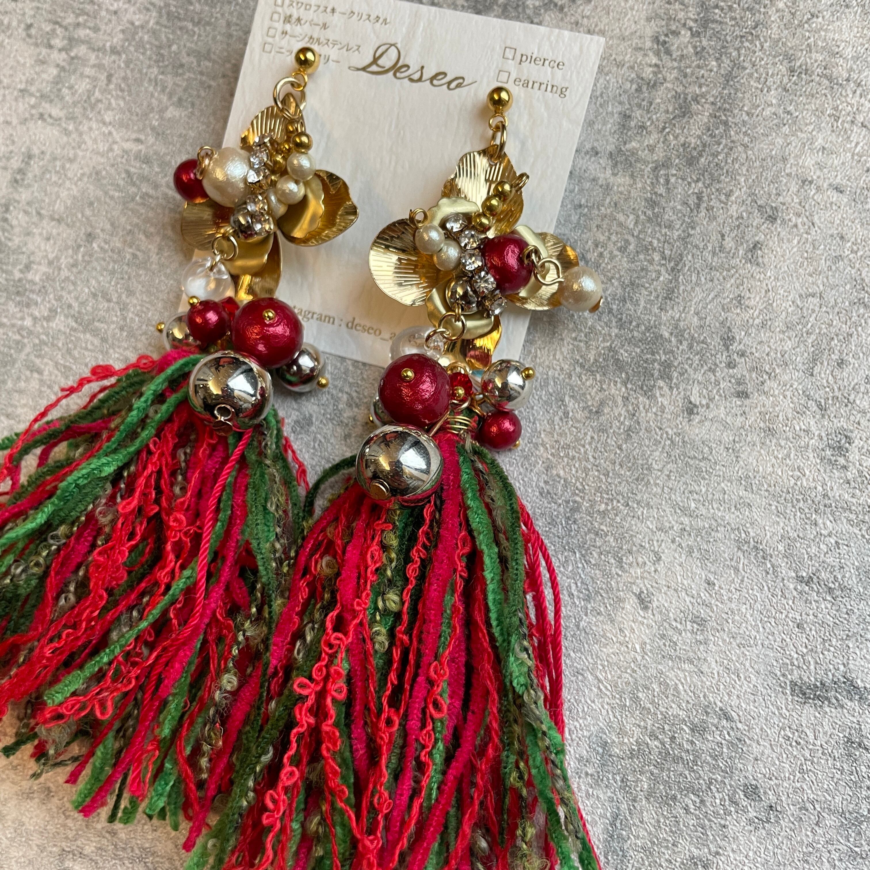 christmas tassel❤️タッセルピアス タッセルイヤリング★お花ピアス お花イヤリング★クリスマスアクセサリー✨NO.440
