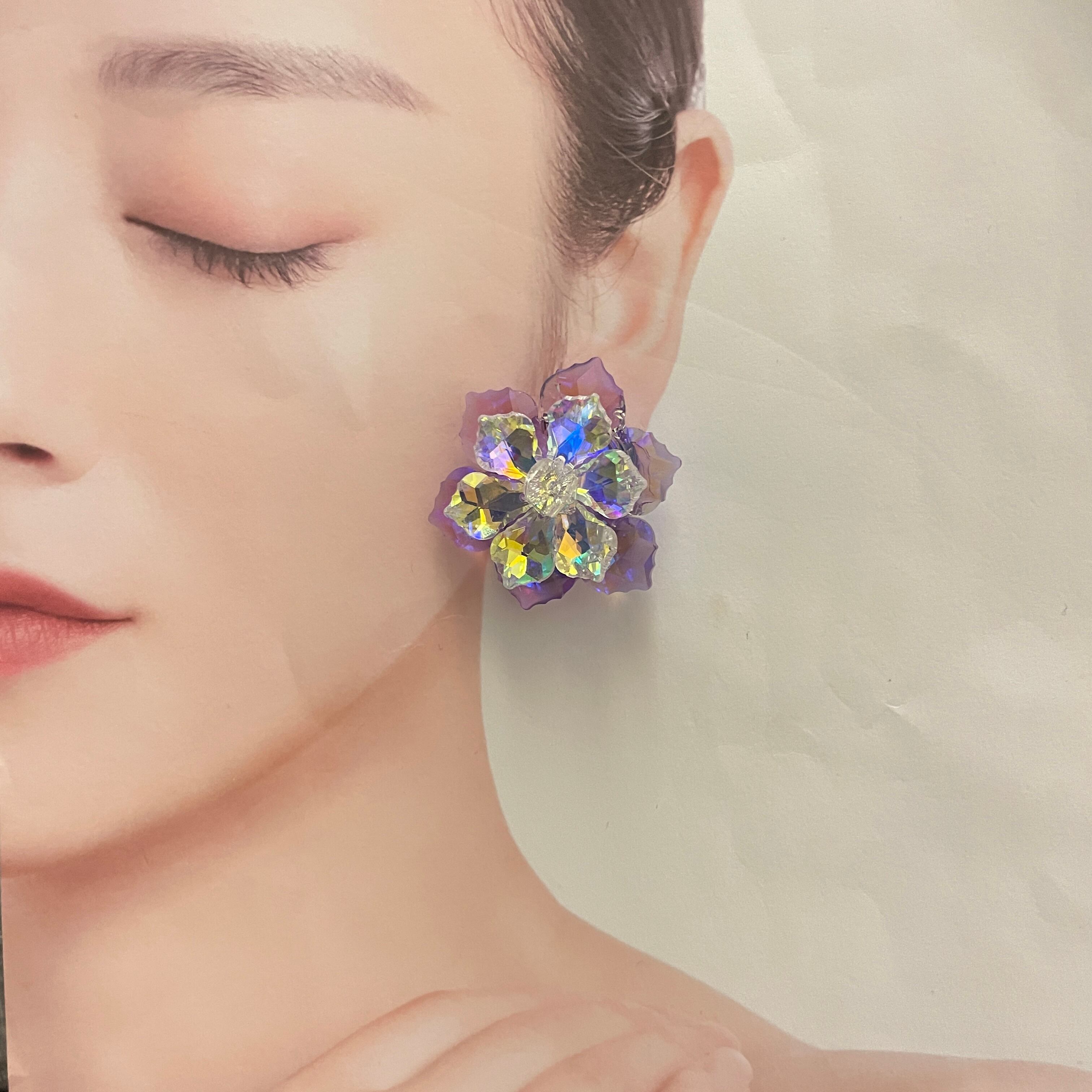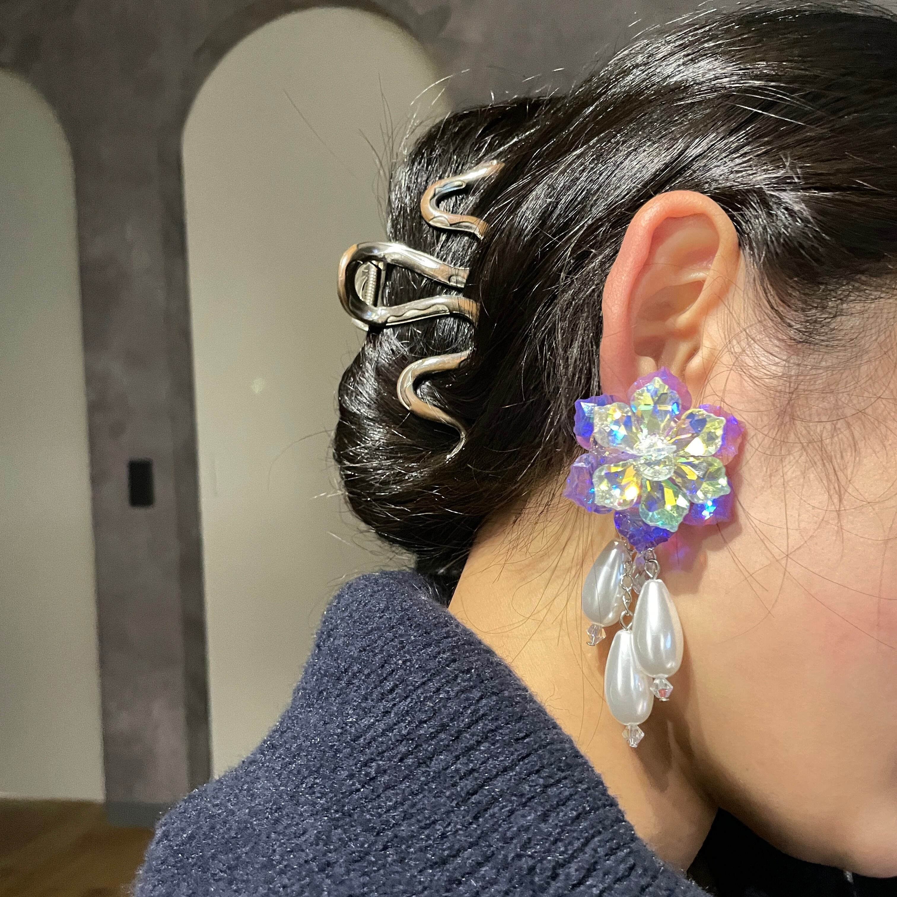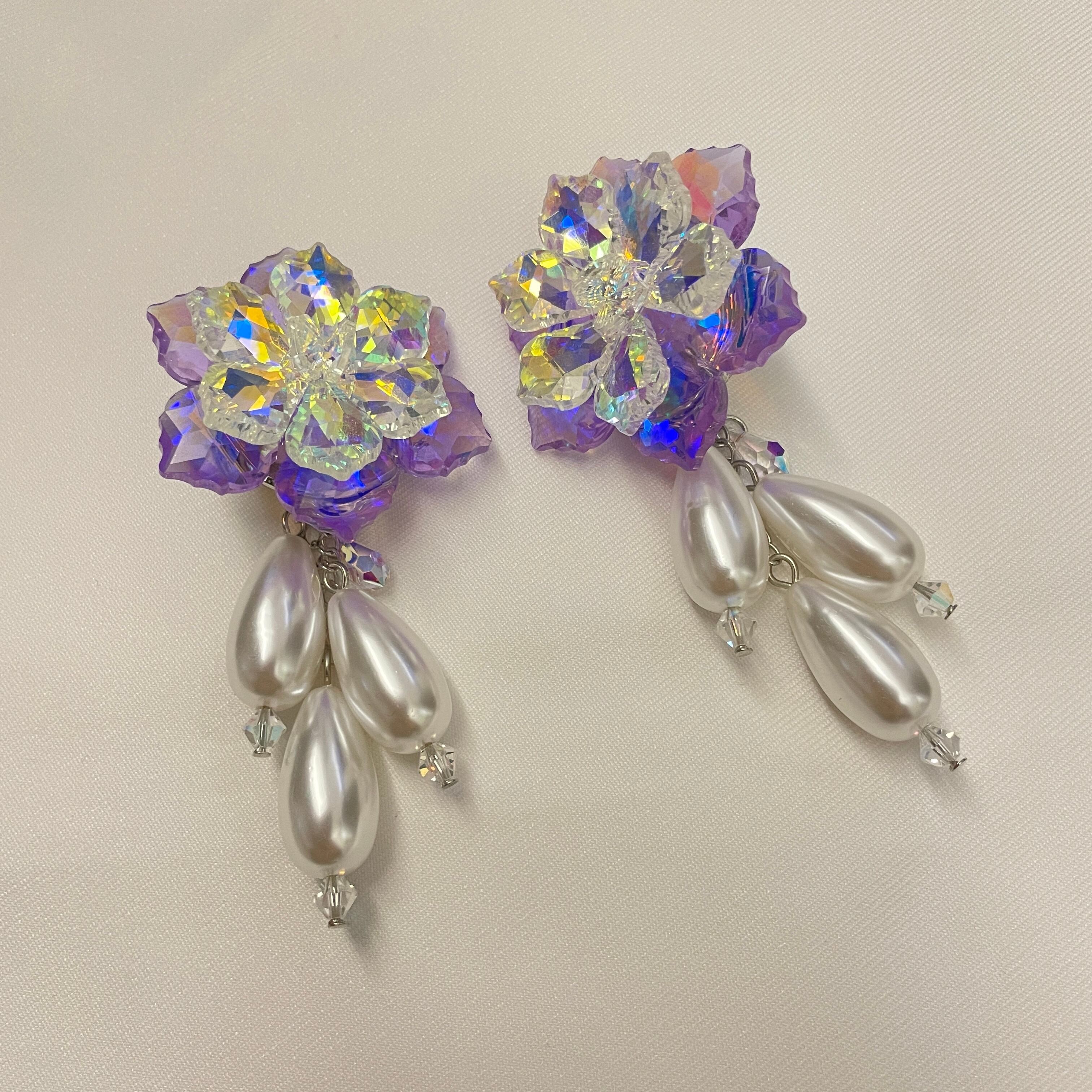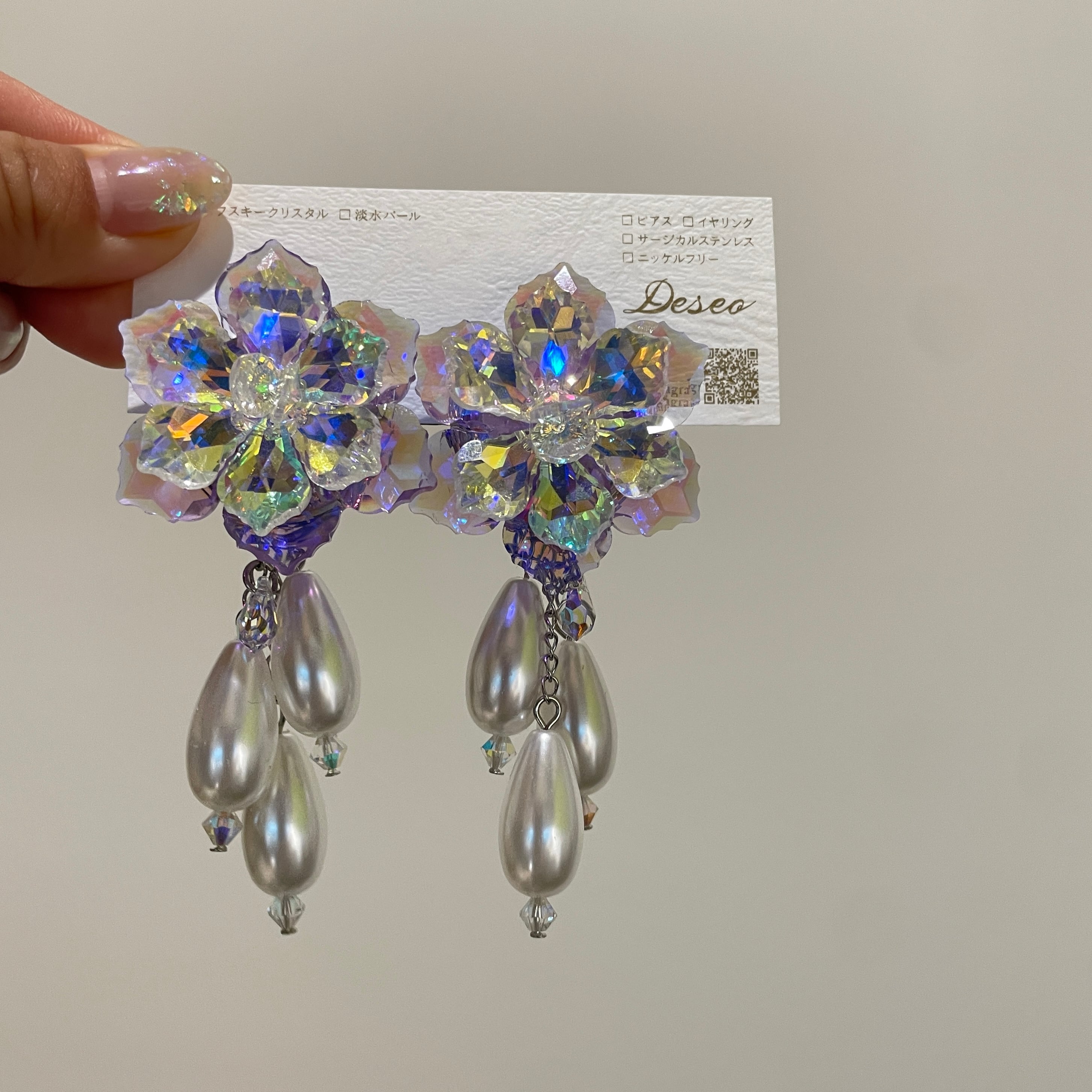 オーロラキラキラFlower❤️流れるパールお花イヤリング NO.464
