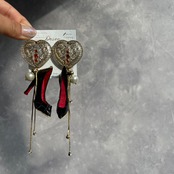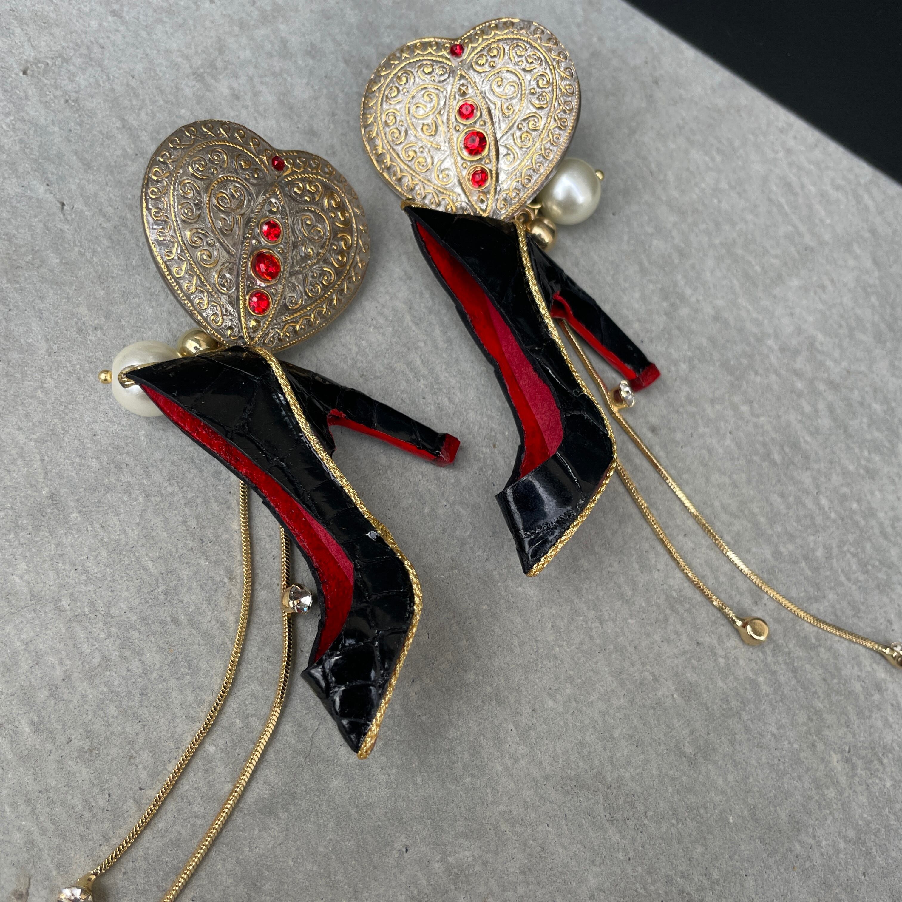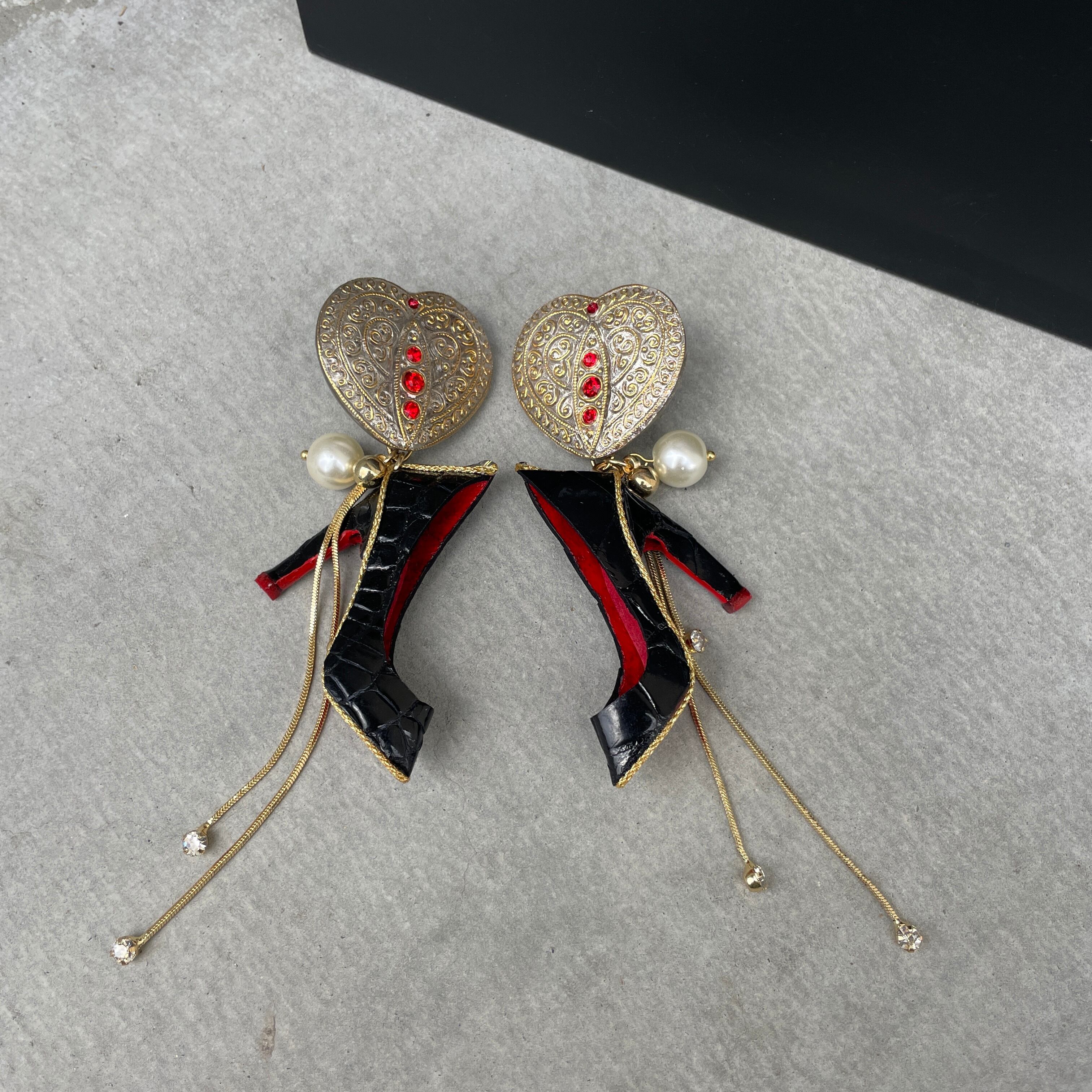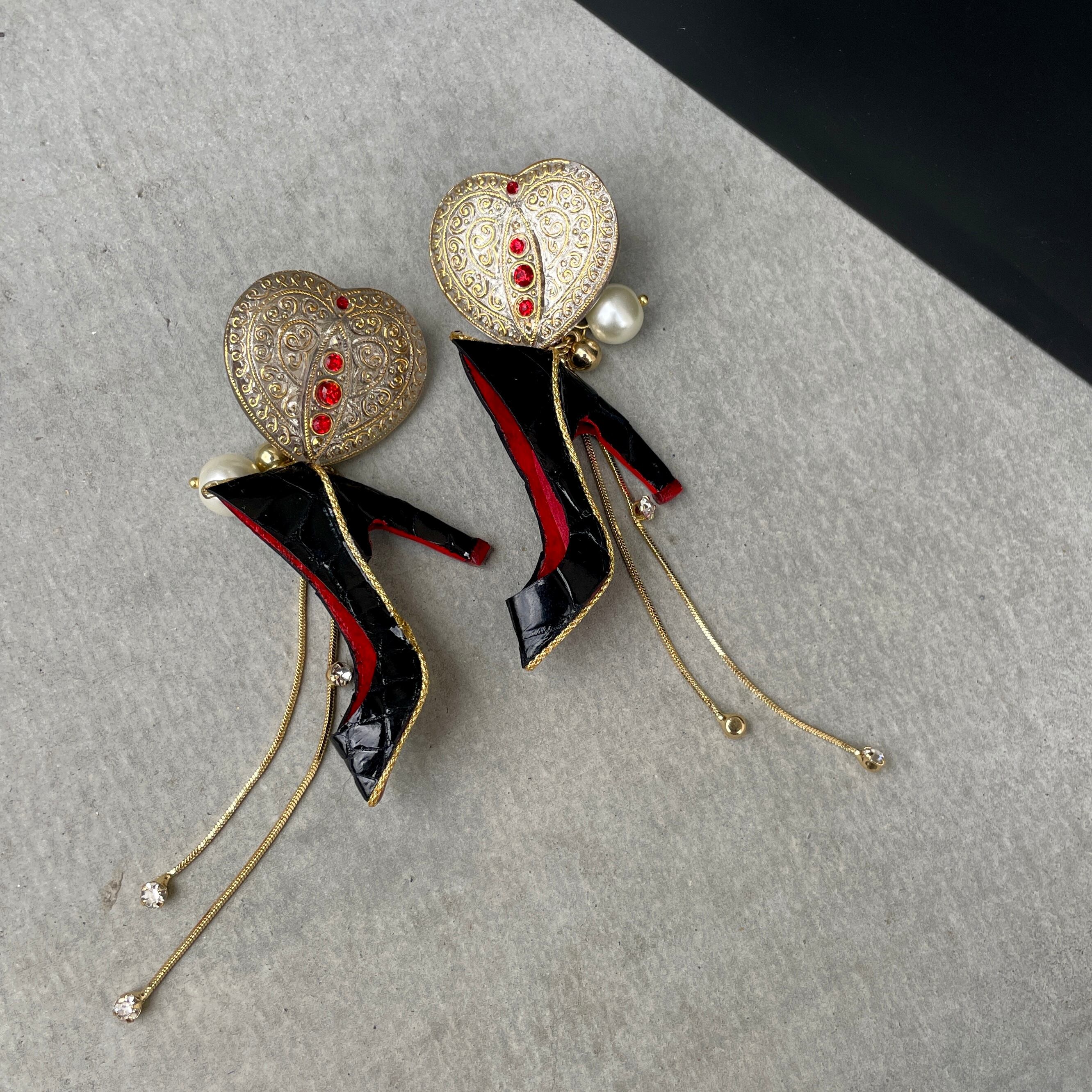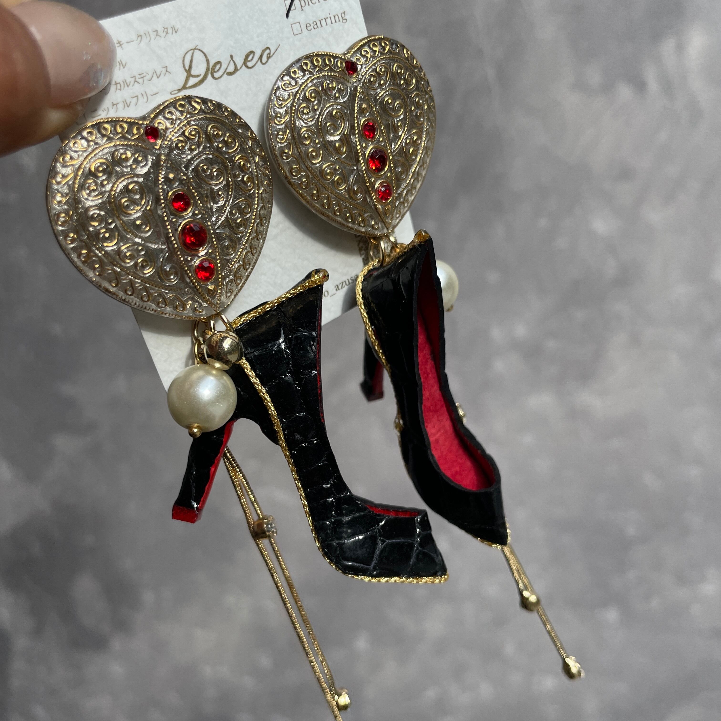 エナメルワニ革ハイヒール❤️希少チェコガラスボタン✨ハイヒールピアス ハイヒールイヤリング NO.467