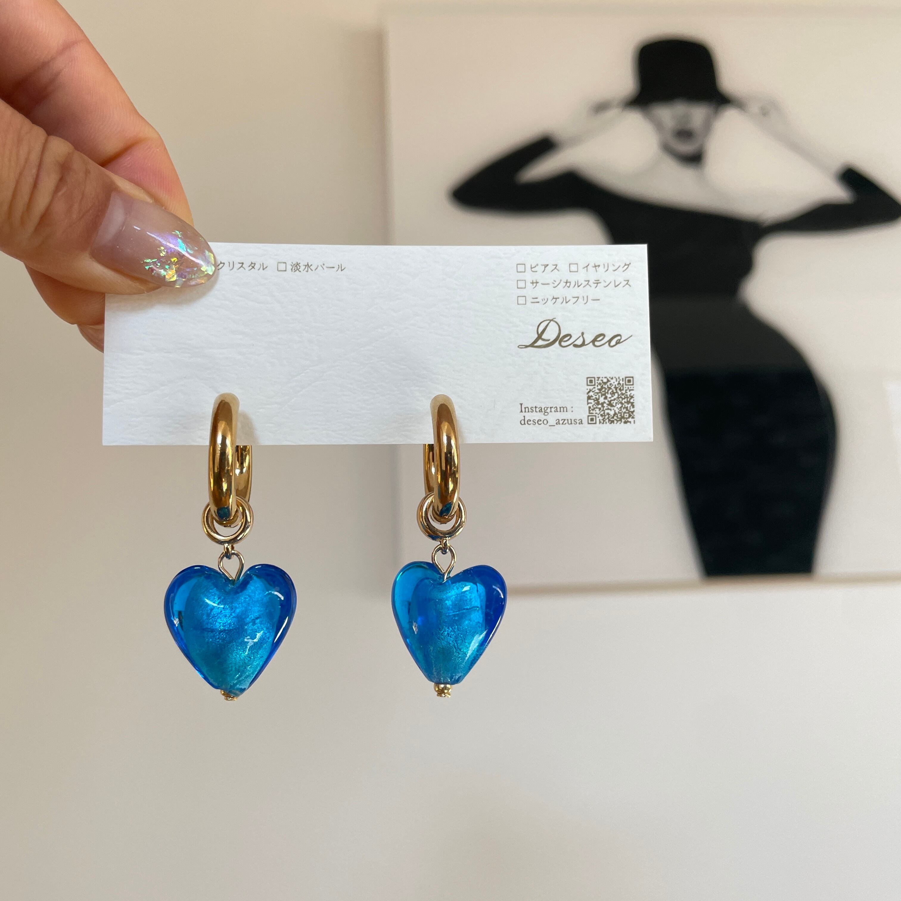 Blue Heart❤️ブルーハート★ハートピアス ハートイヤリング NO.480