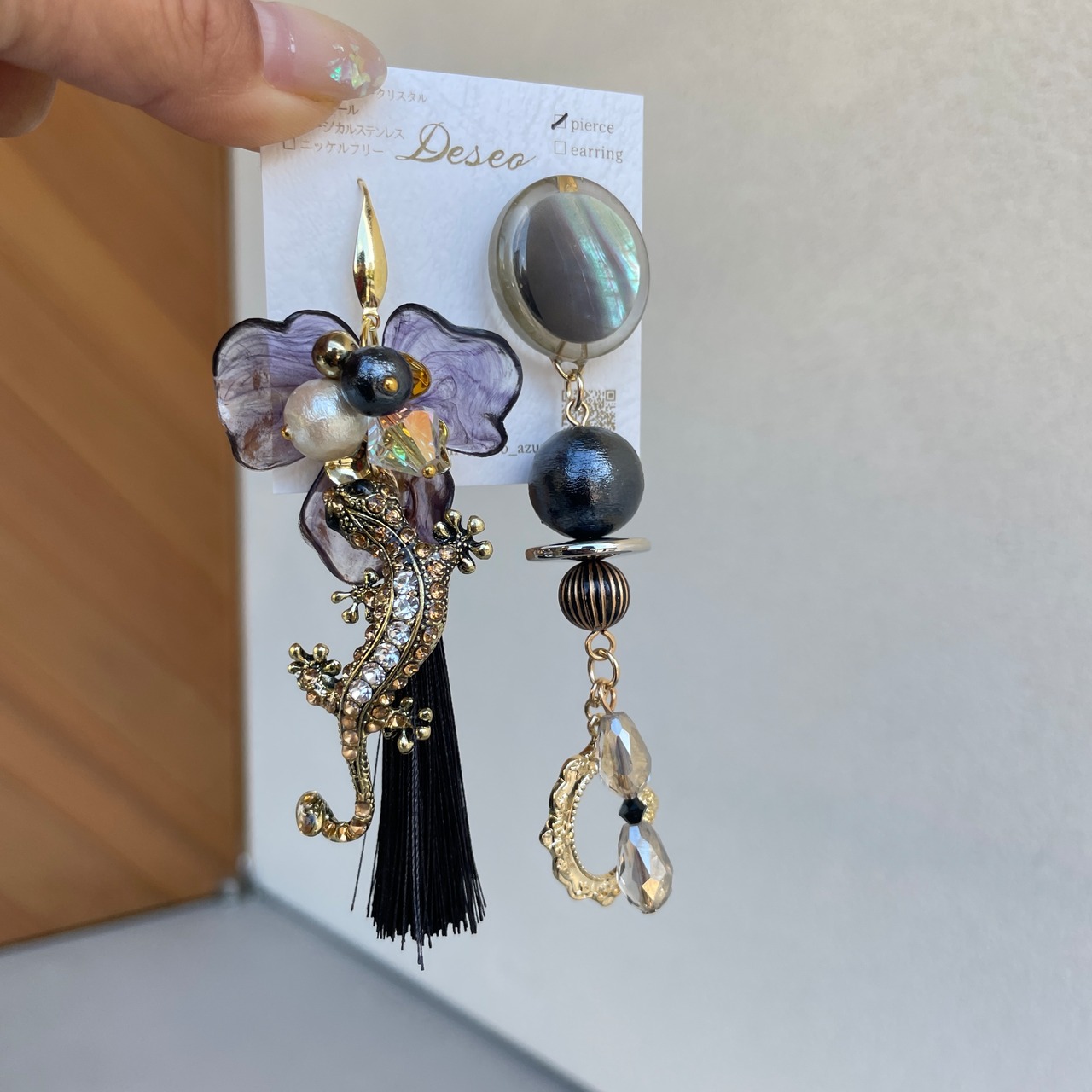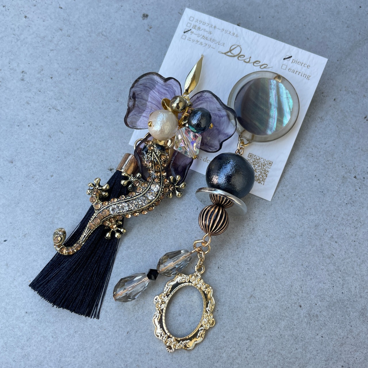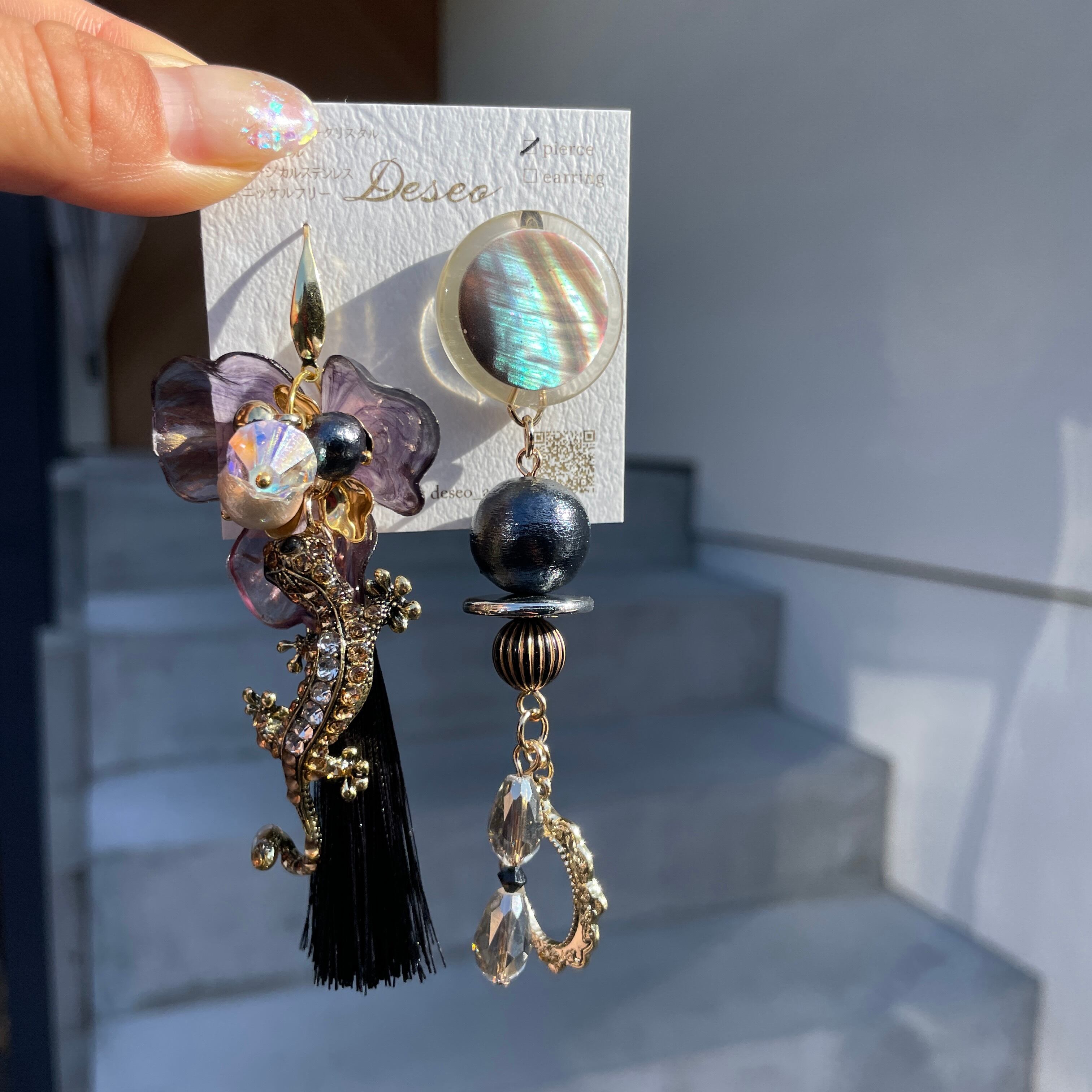Tokage Flower★トカゲピアス トカゲイヤリング✨アシメピアス アシメイヤリング NO.464