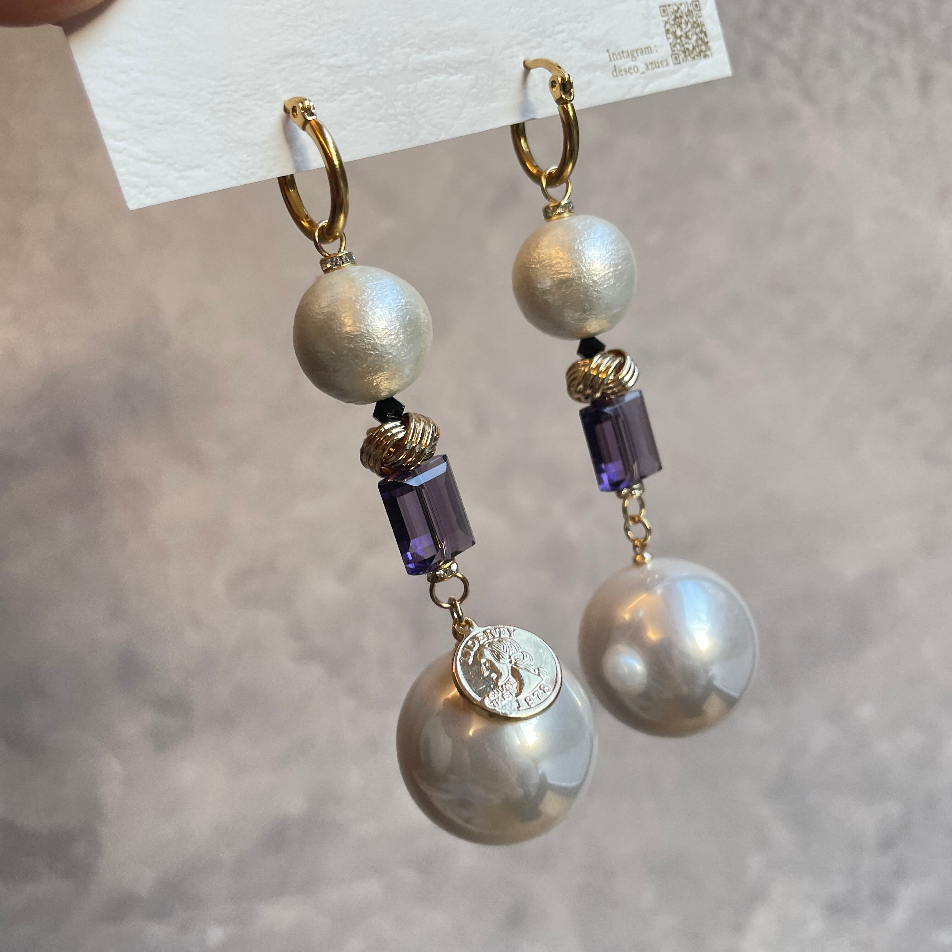 Pearl Pearl✨×パープル✨パールピアス パールイヤリング♡ NO.466