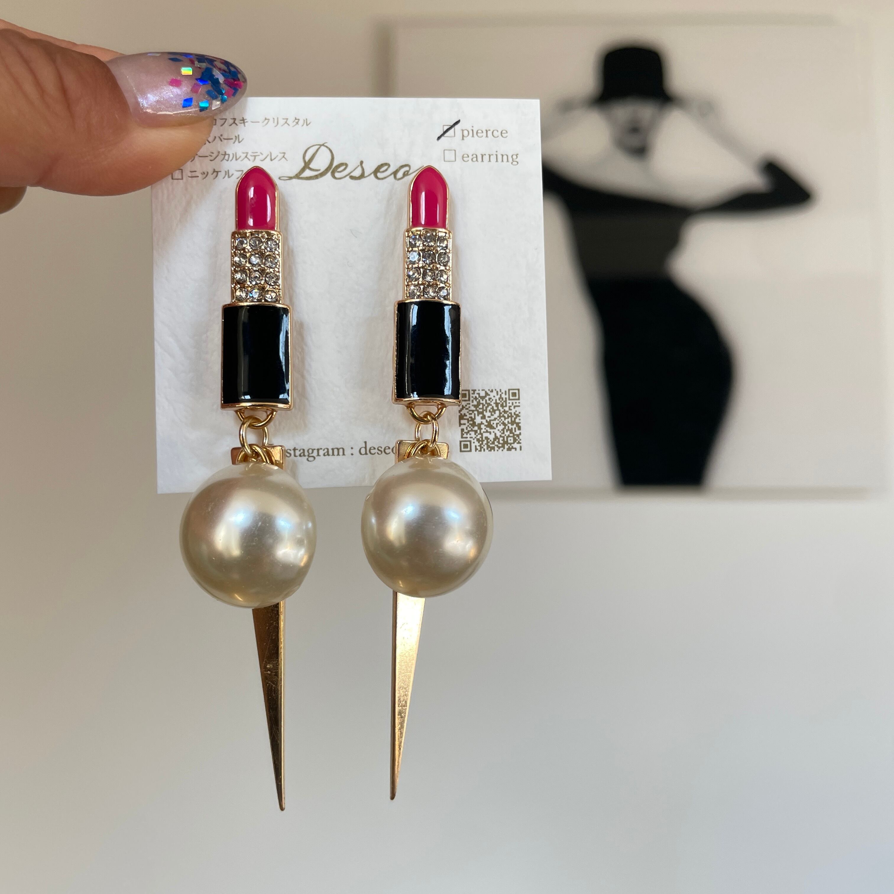 Pearl × Rouge❤️口紅ピアス 口紅イヤリング NO.499