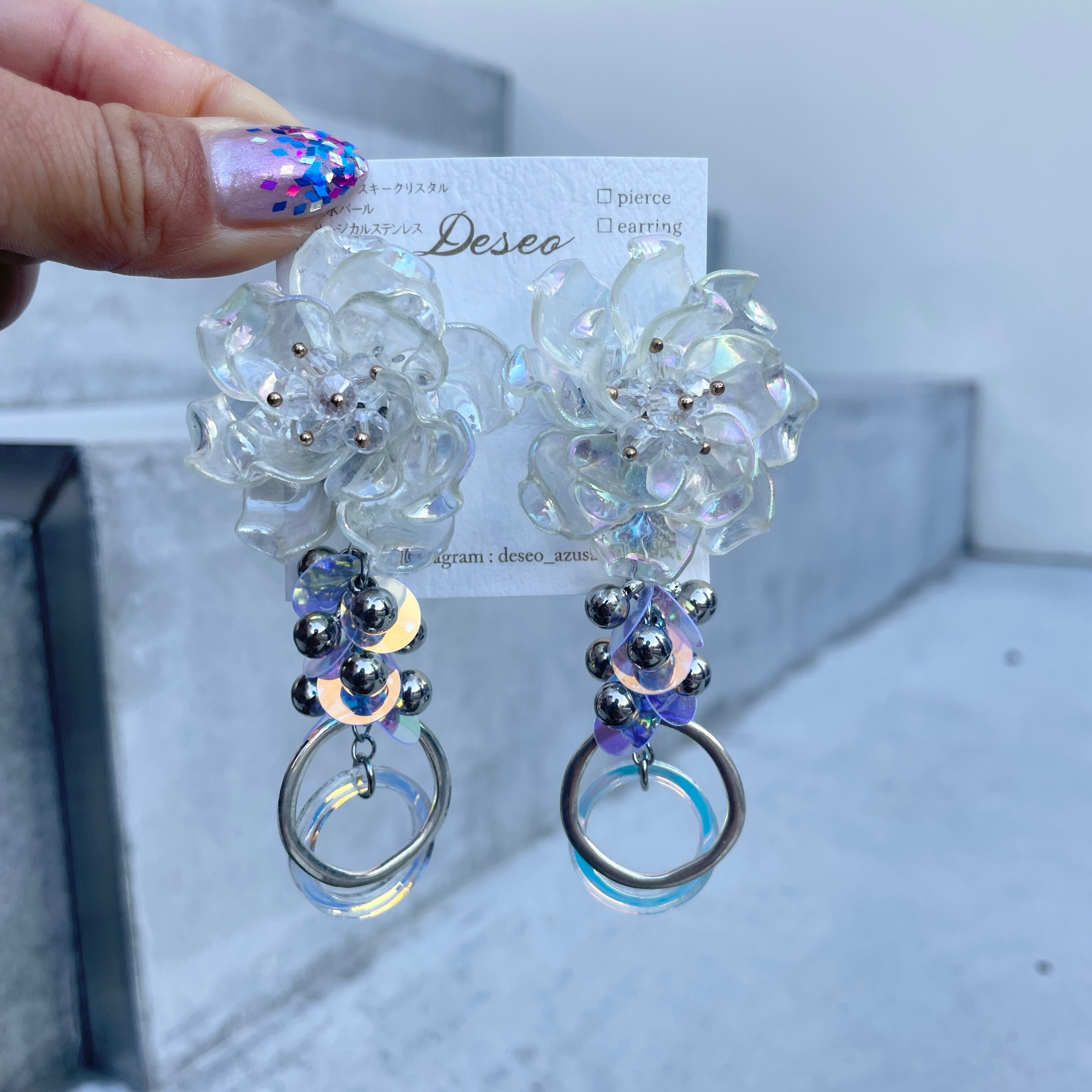 オーロラシャンデリア✨お花ピアス お花イヤリング NO.504