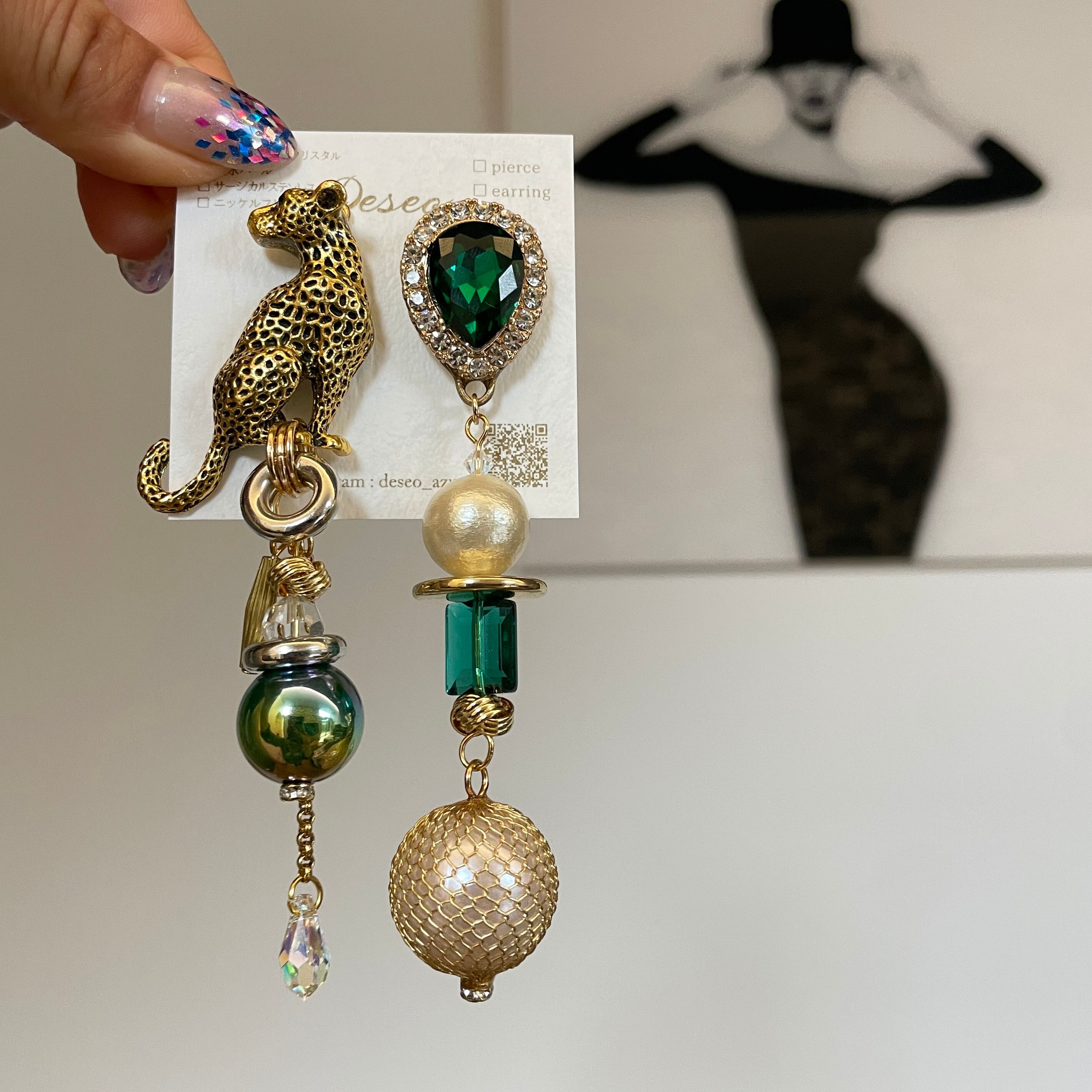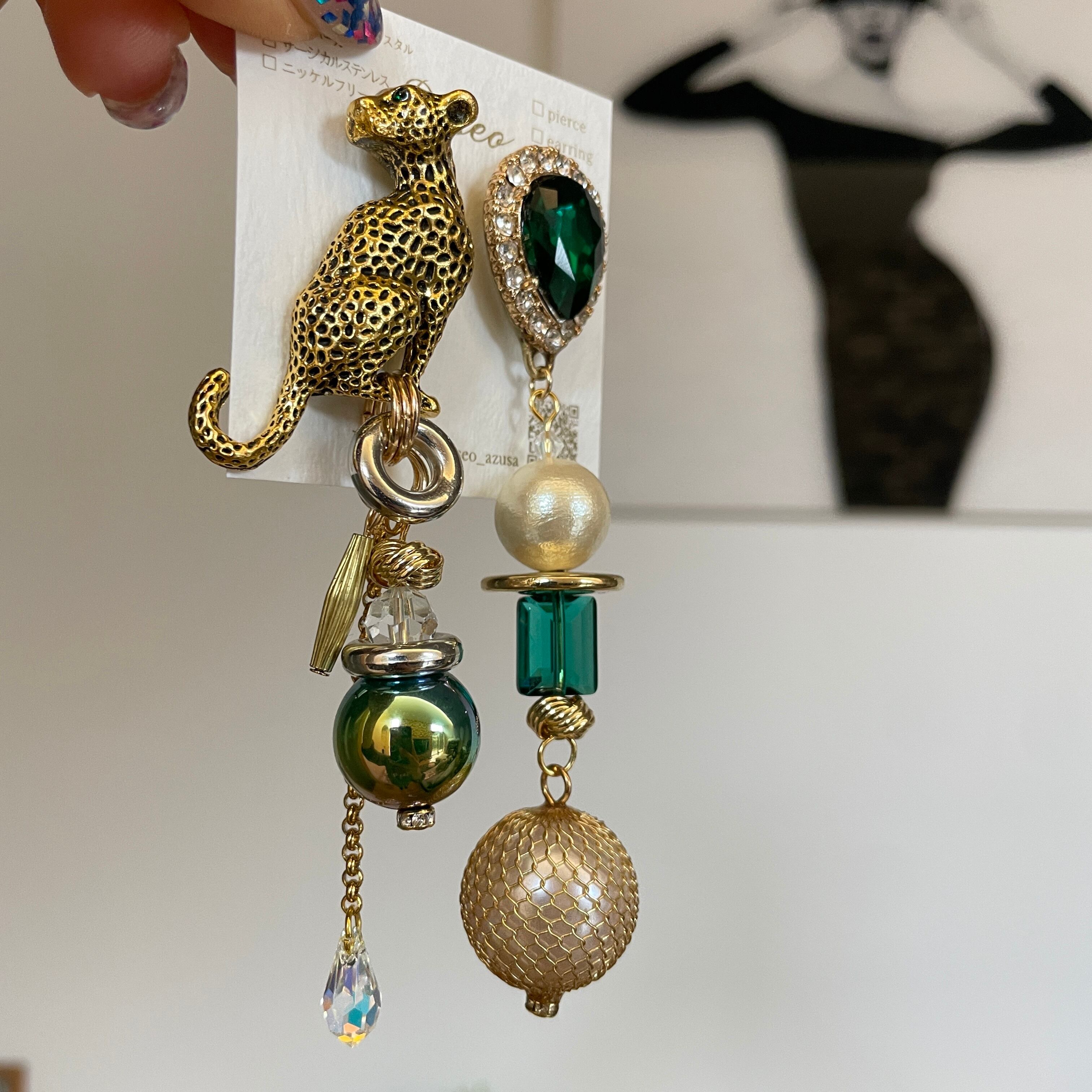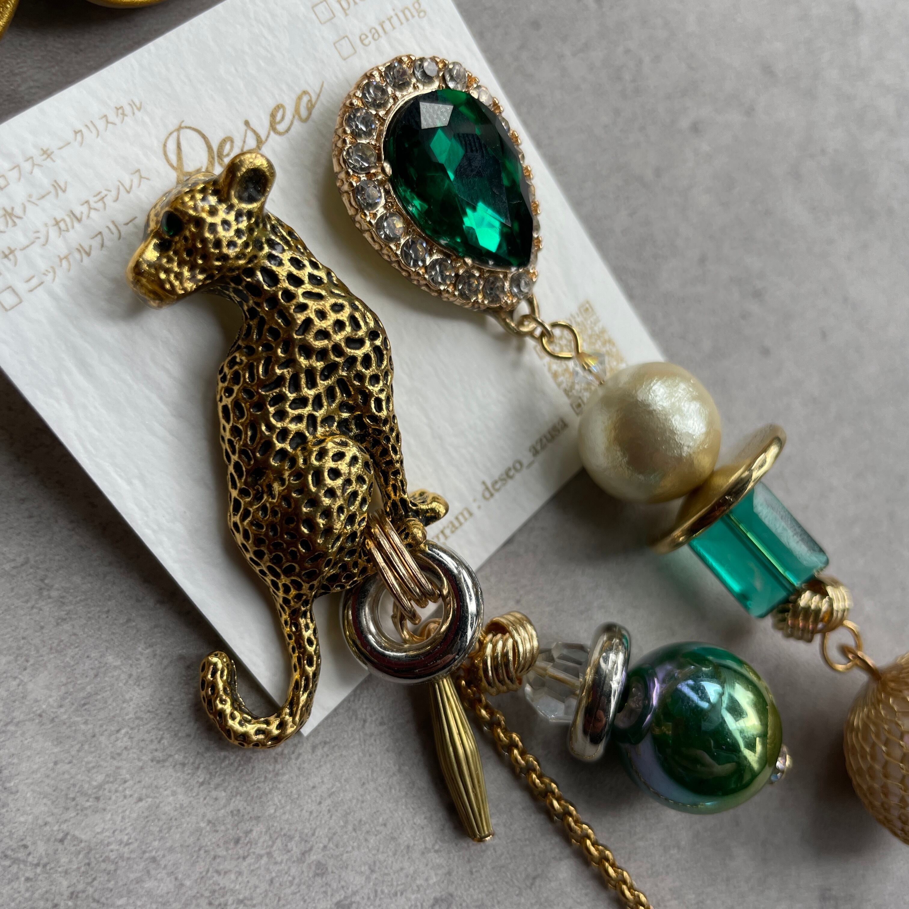 Leopard★Green レオパードピアス✨ヒョウ NO.507
