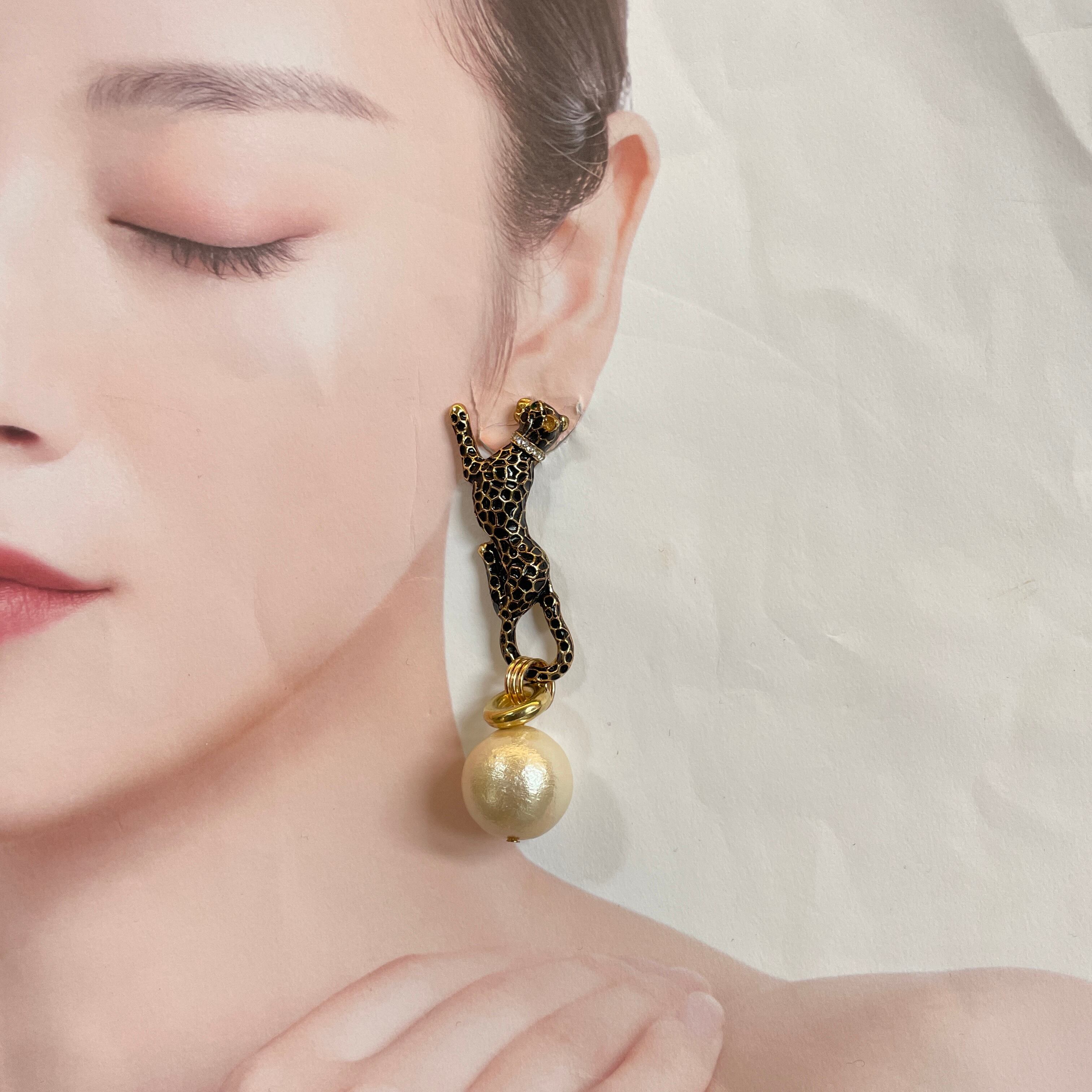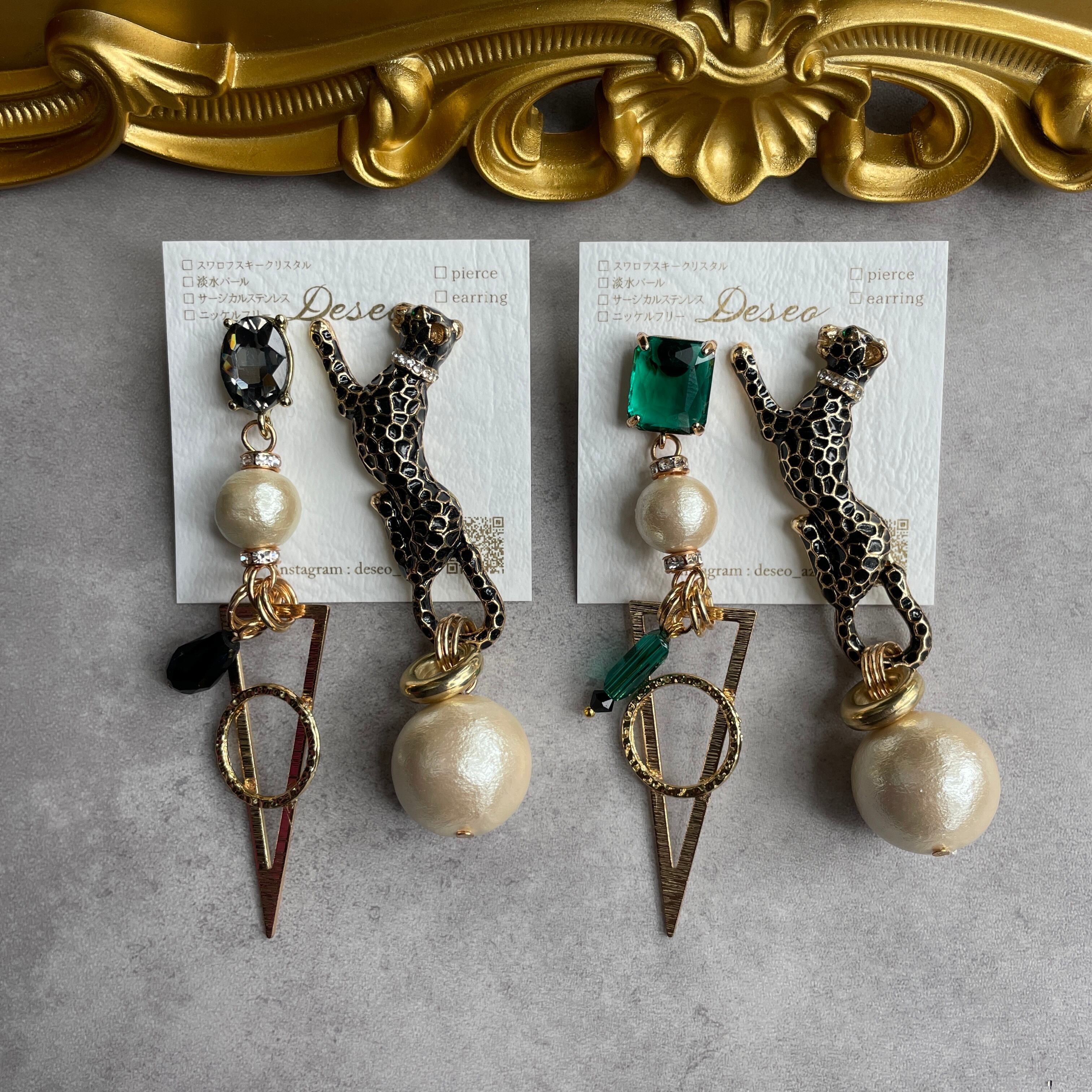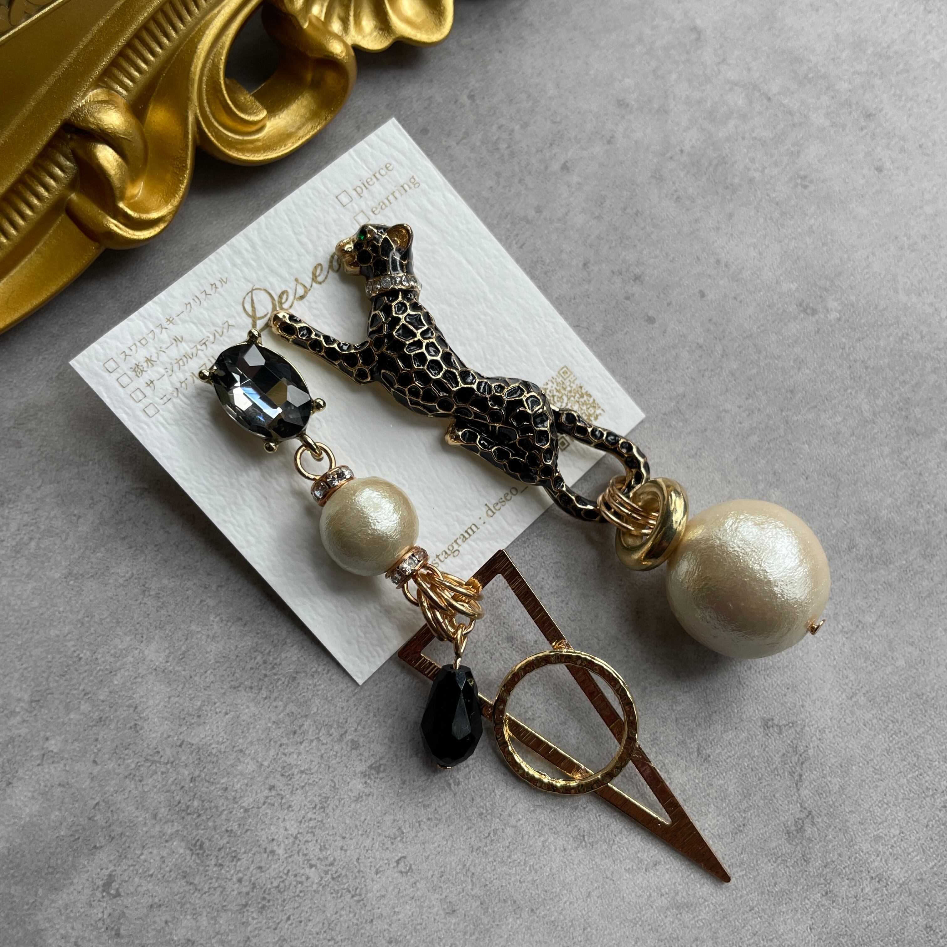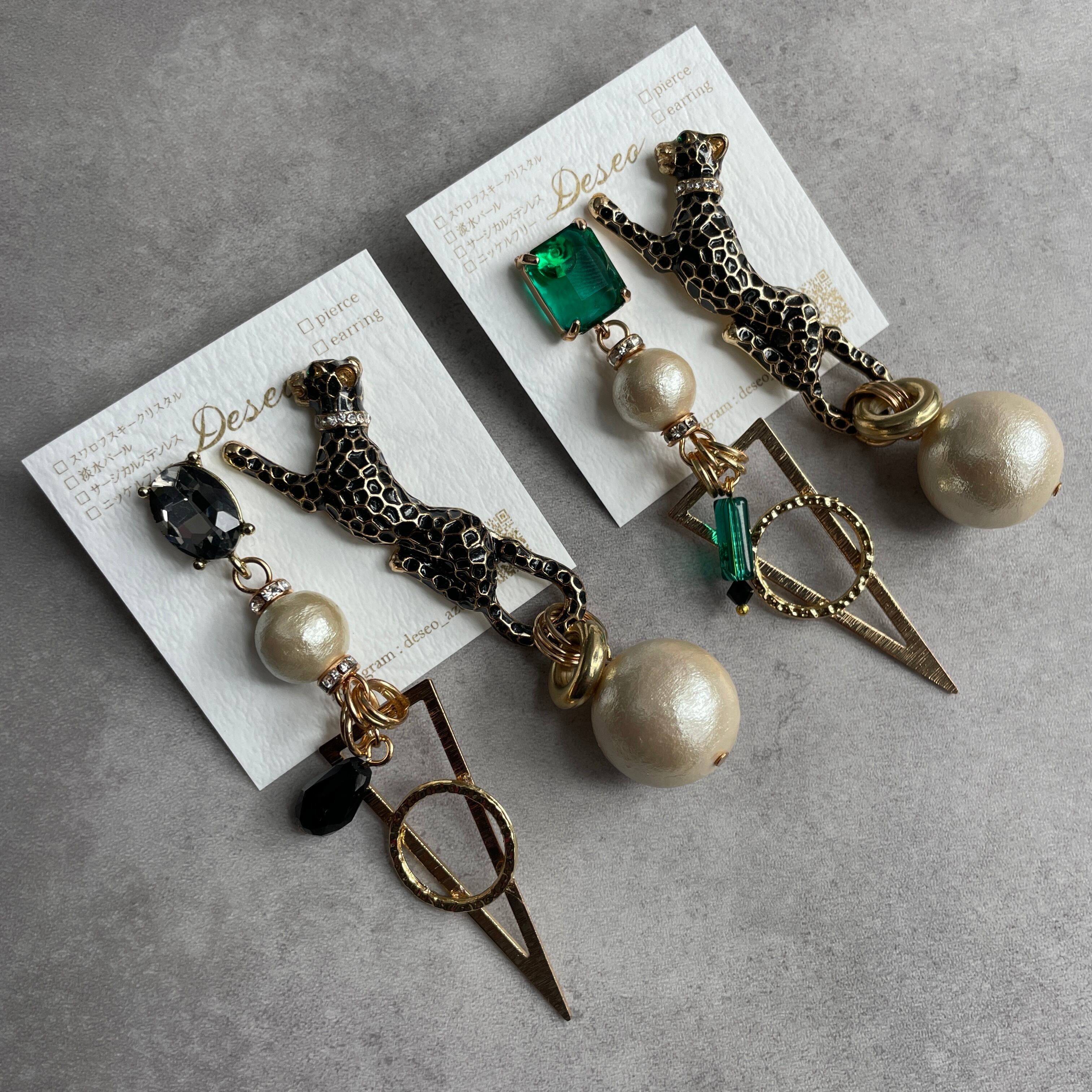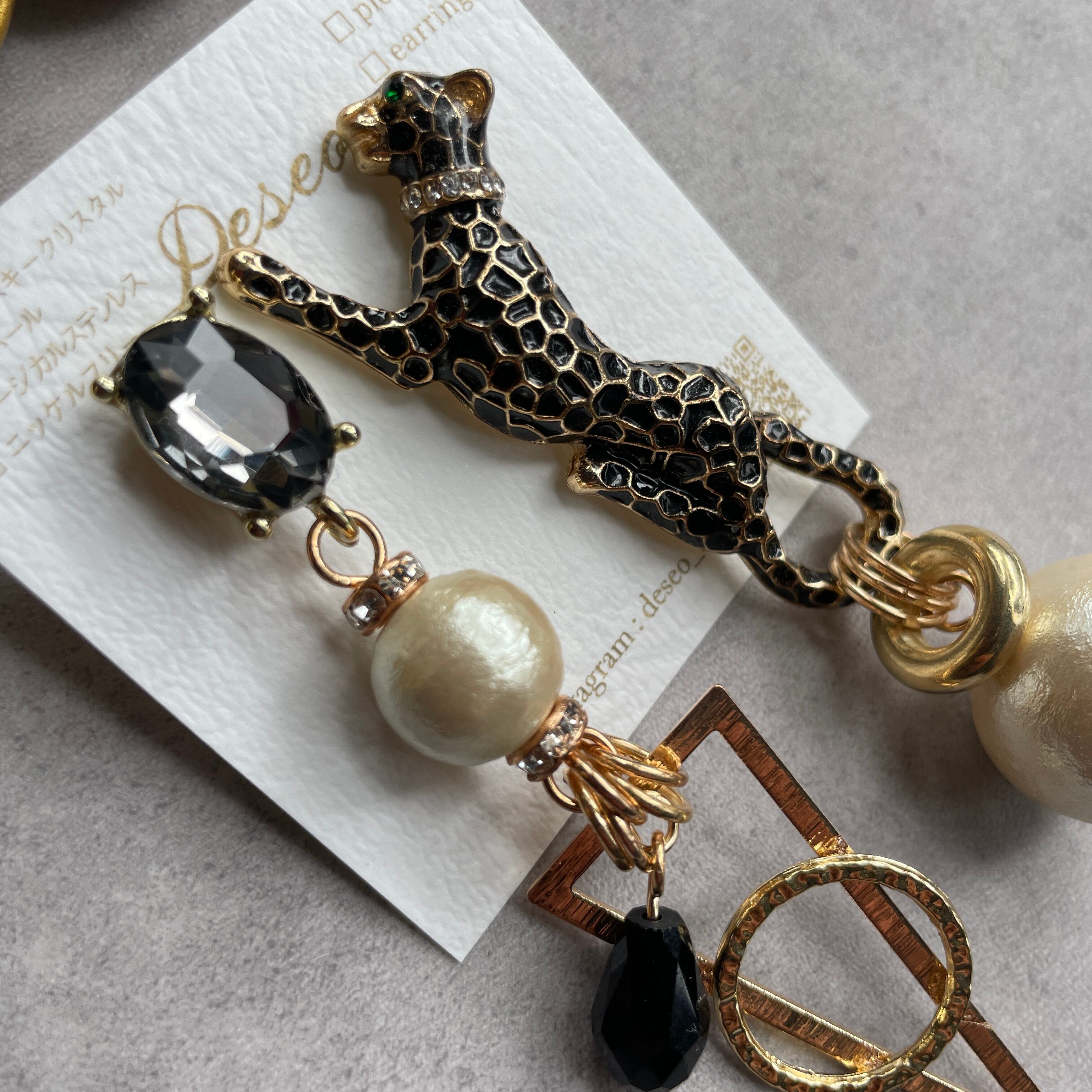もともとは小さめのブローチだったレオパードをピアスにしました