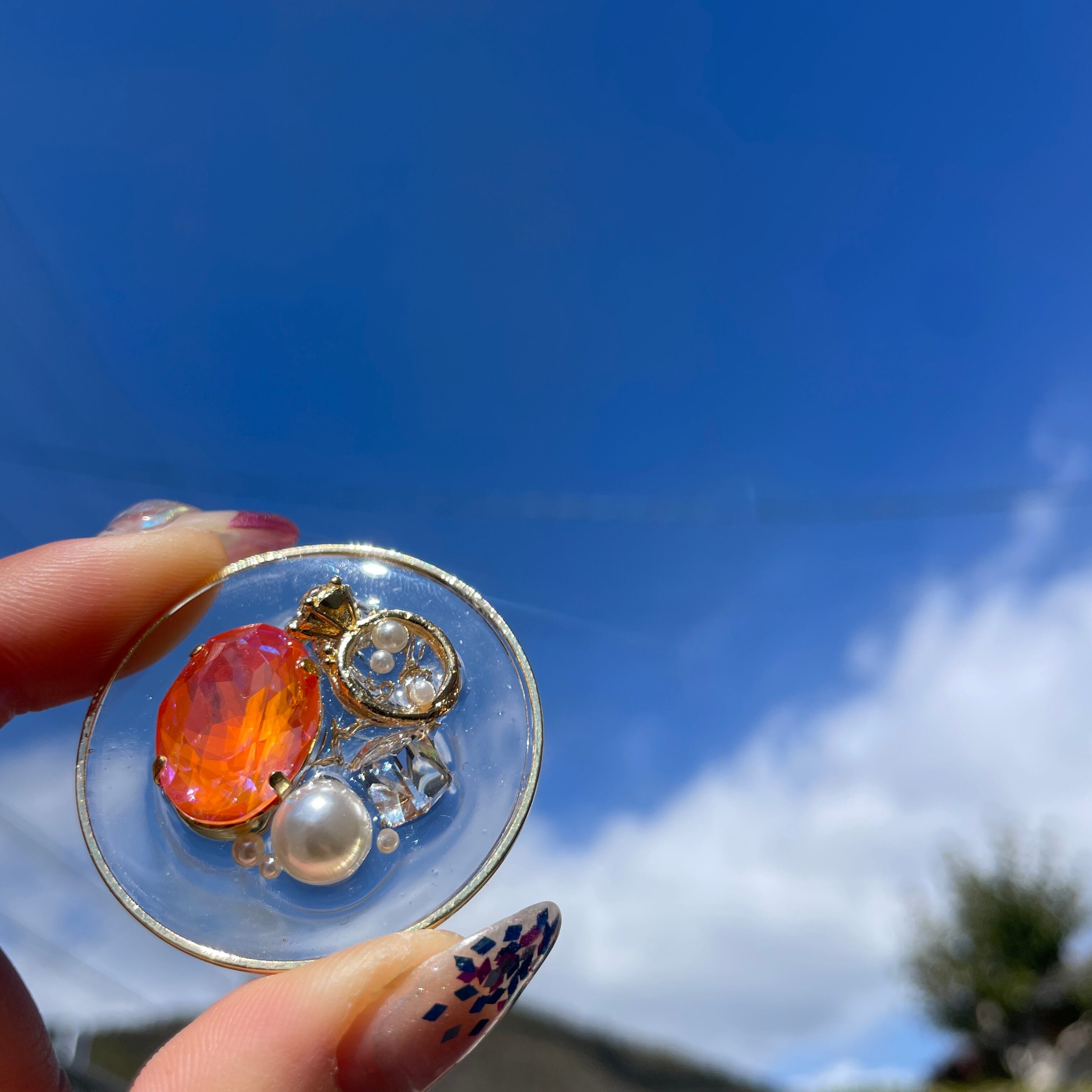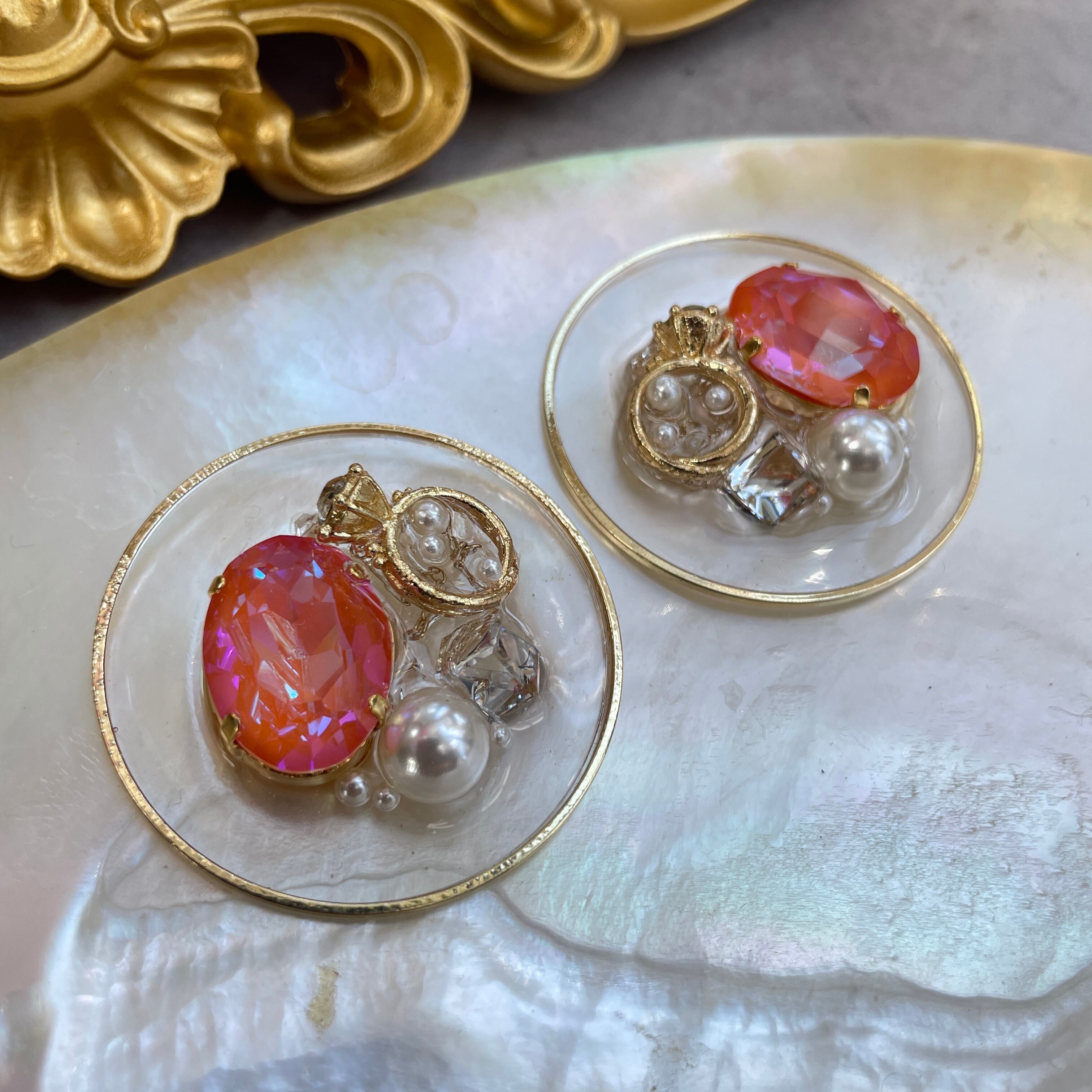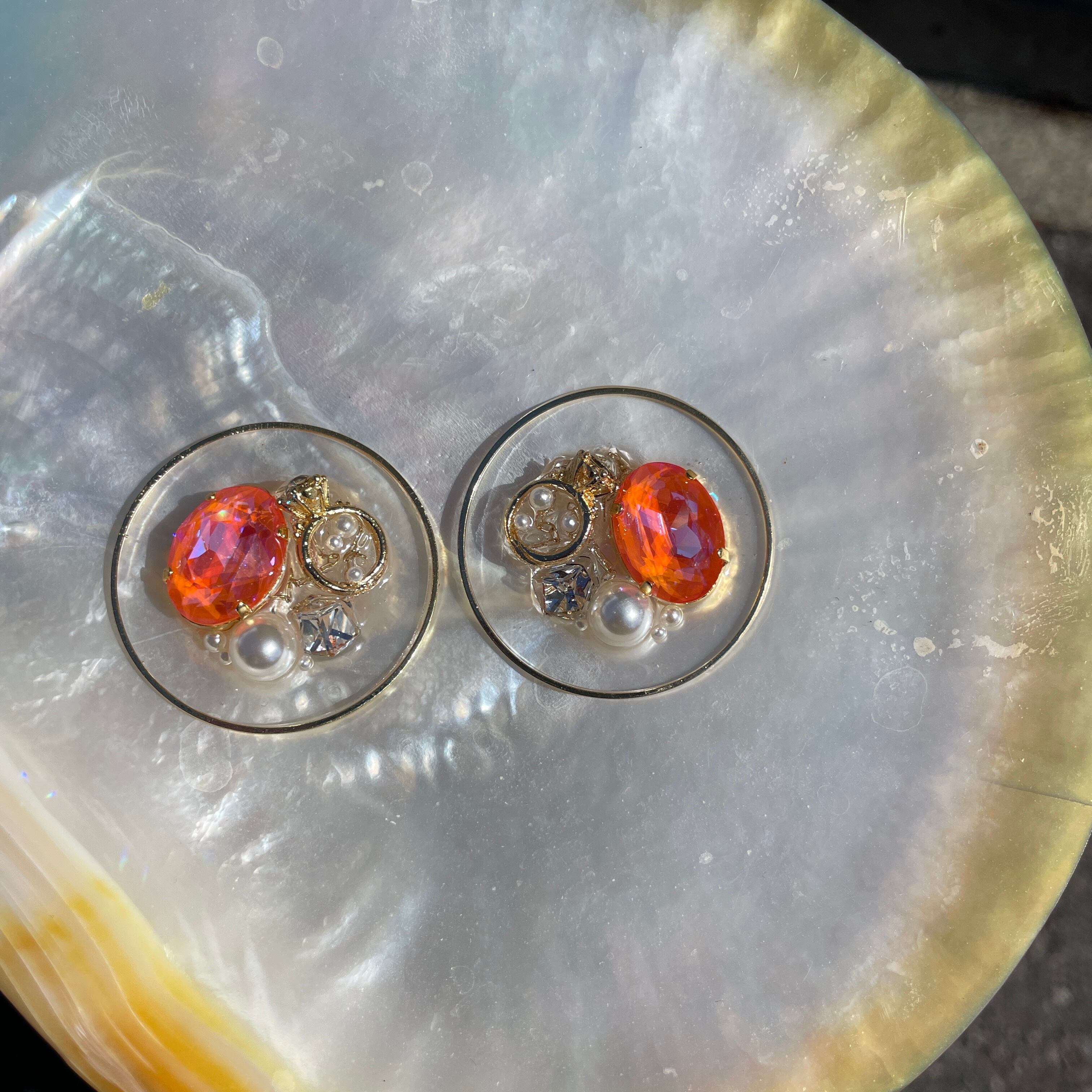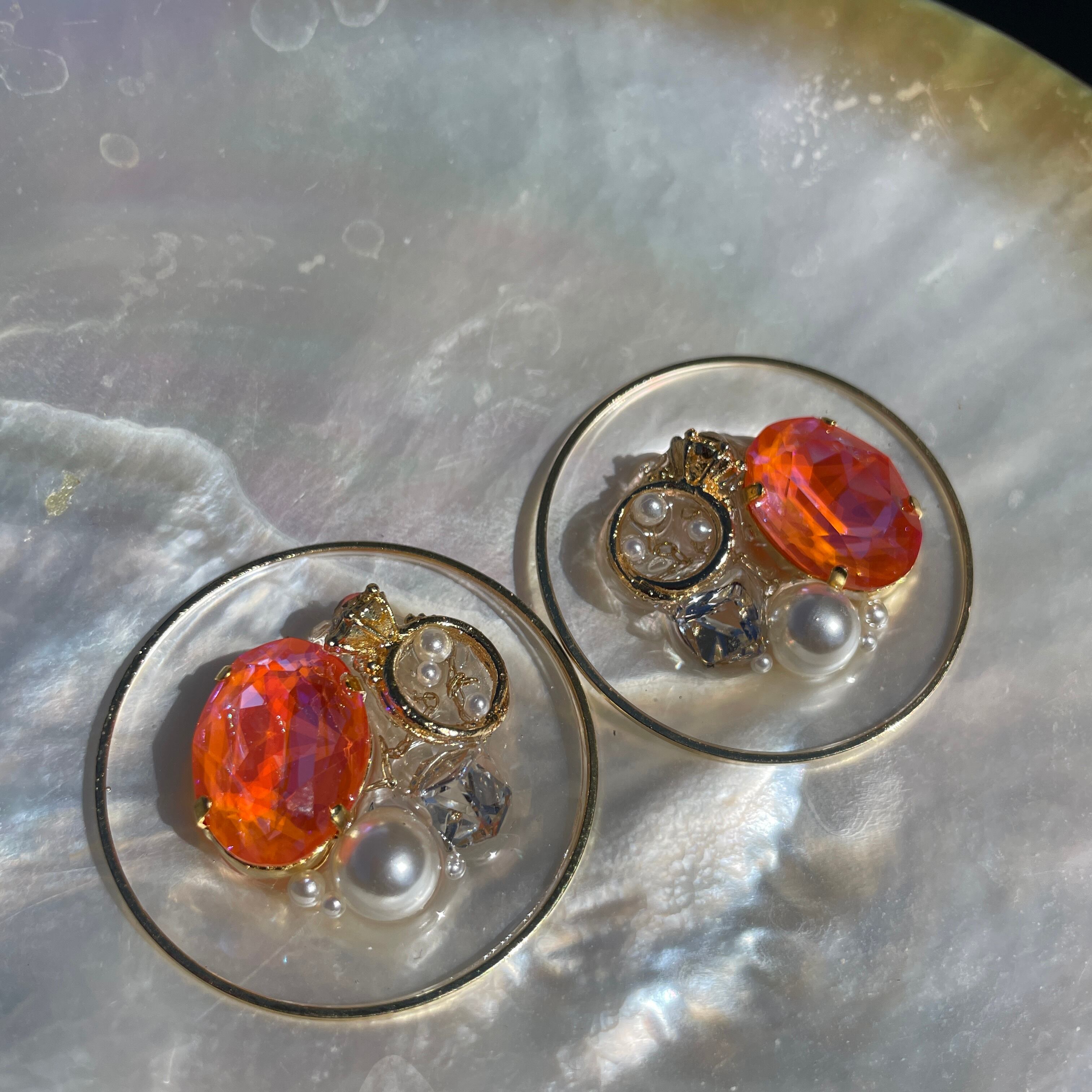 大粒スワロフスキー✨Orange✨BIGビジューピアス☆BIGビジューイヤリング NO.530