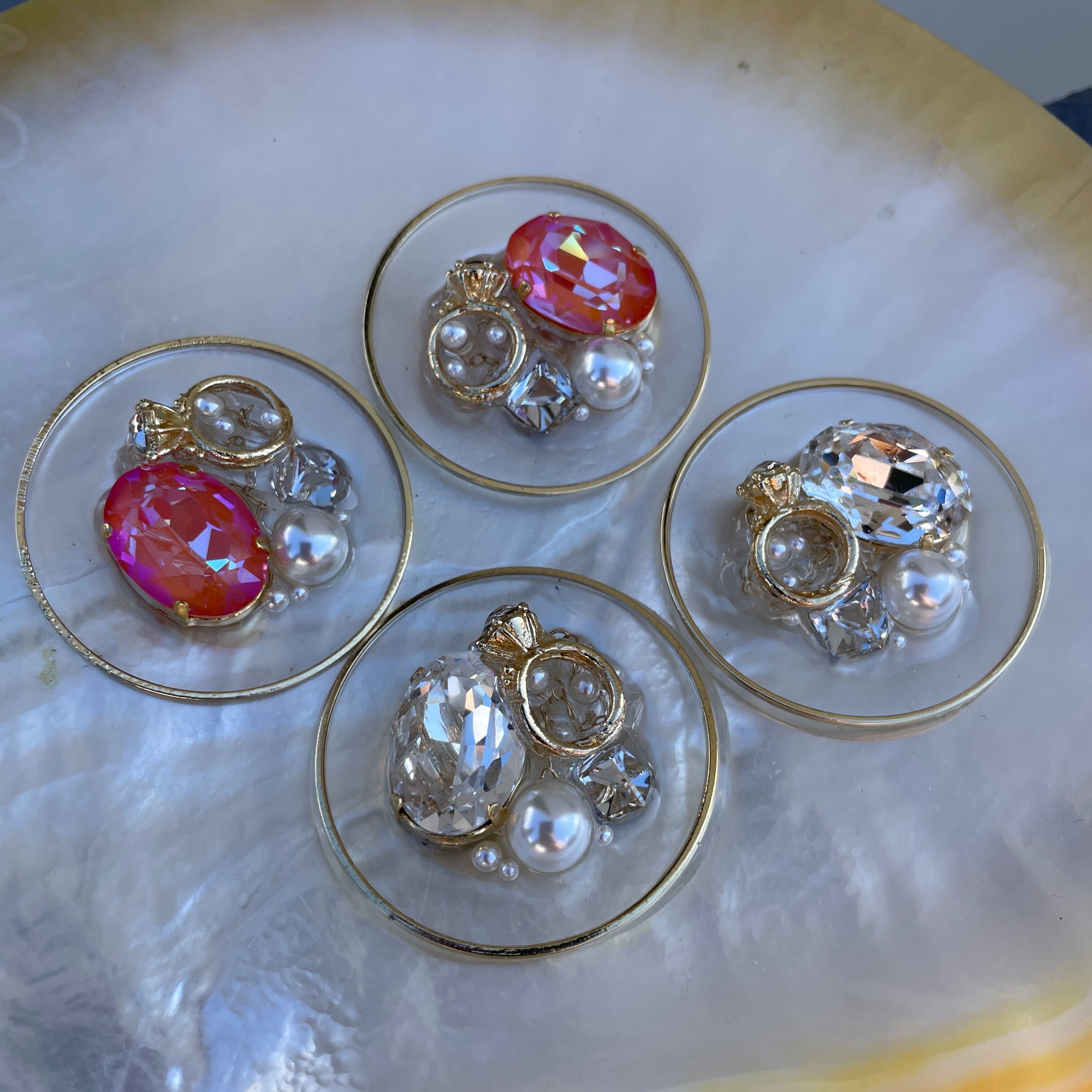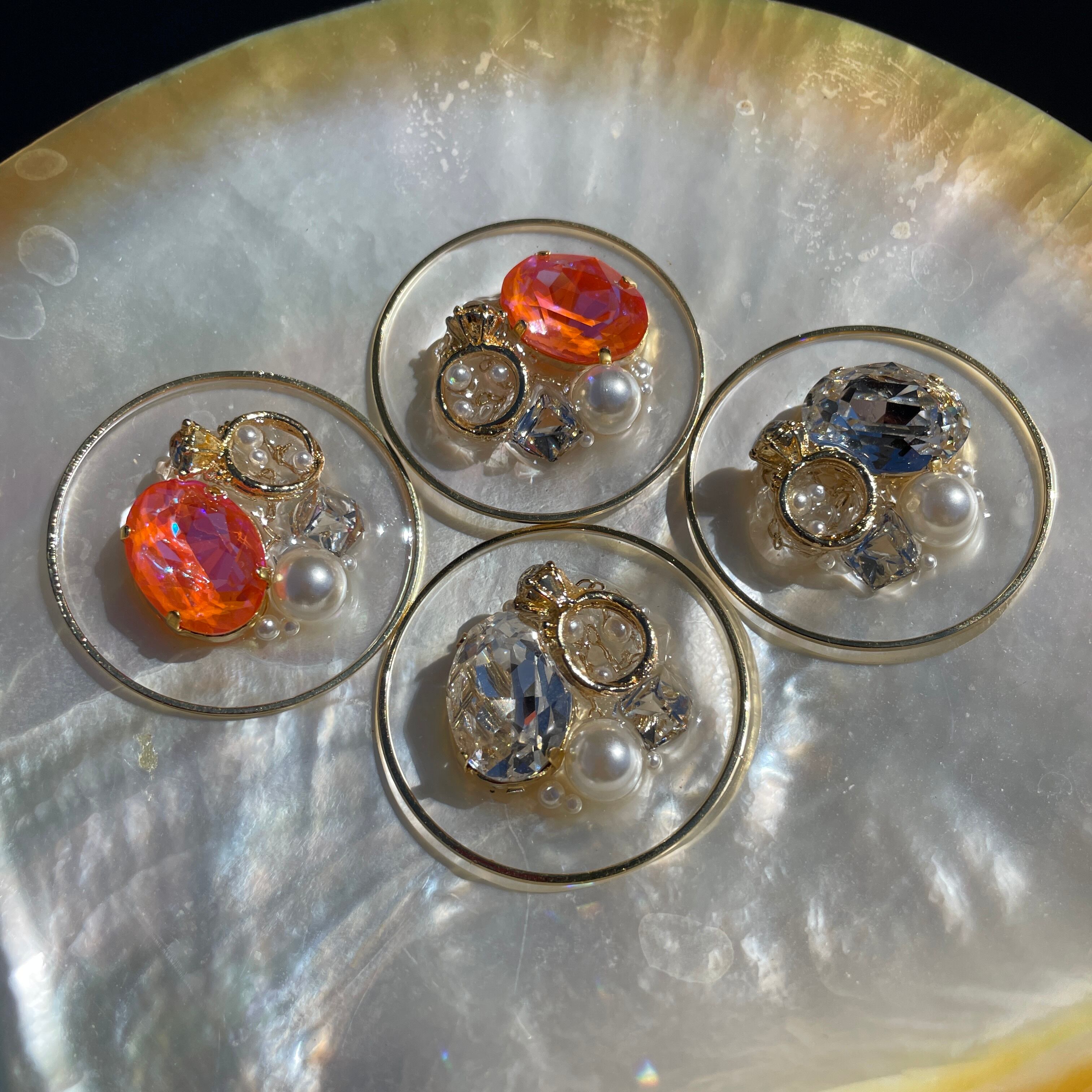 高価な大粒スワロフスキーとクリアキューブのスワロフスキーに指輪パーツなど可愛いをギュッと詰め込んだ大きめビジューの耳アクセサリー✨