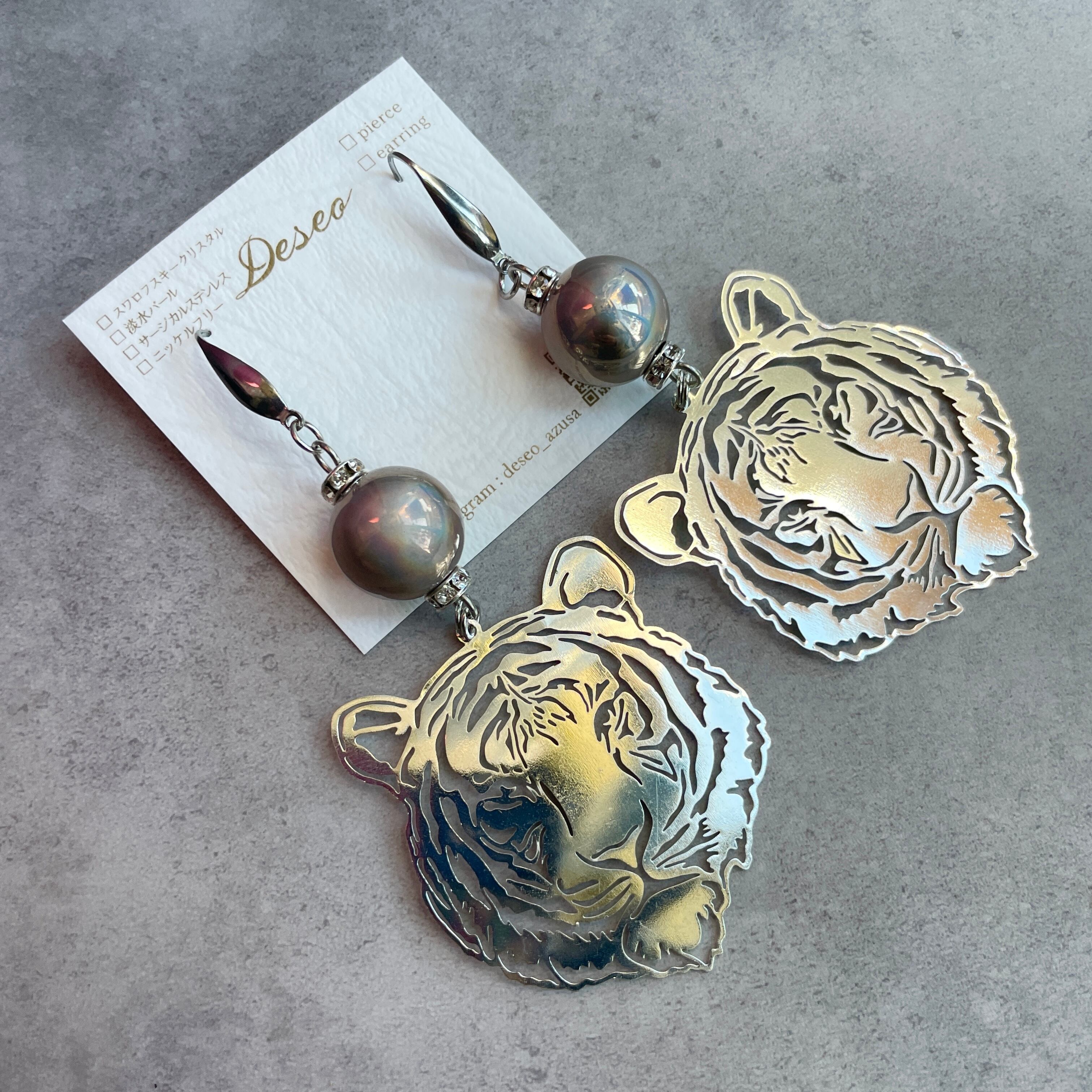 Tora★虎ピアス 虎イヤリング✨タイガーピアス タイガーイヤリング 軽量ピアス NO.533