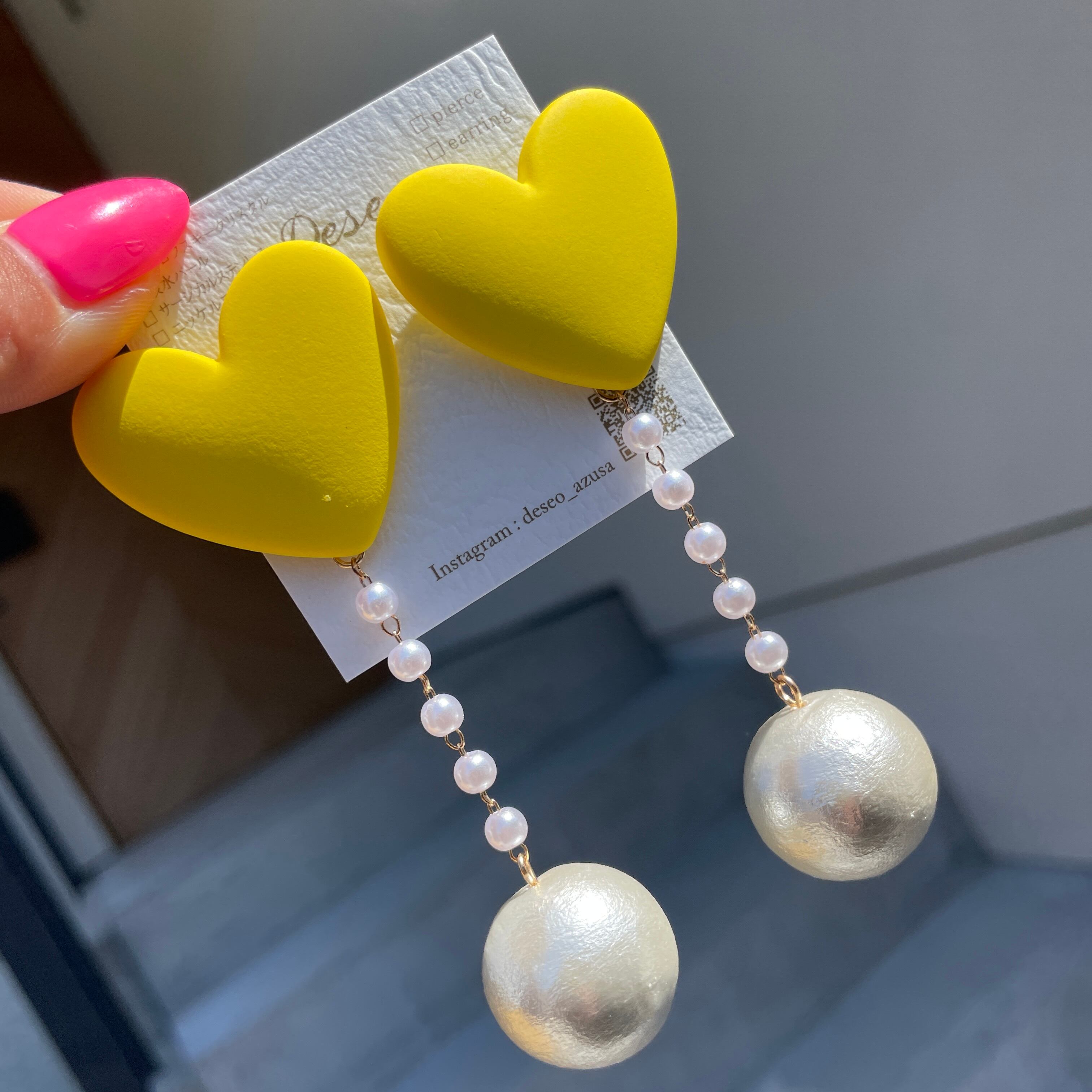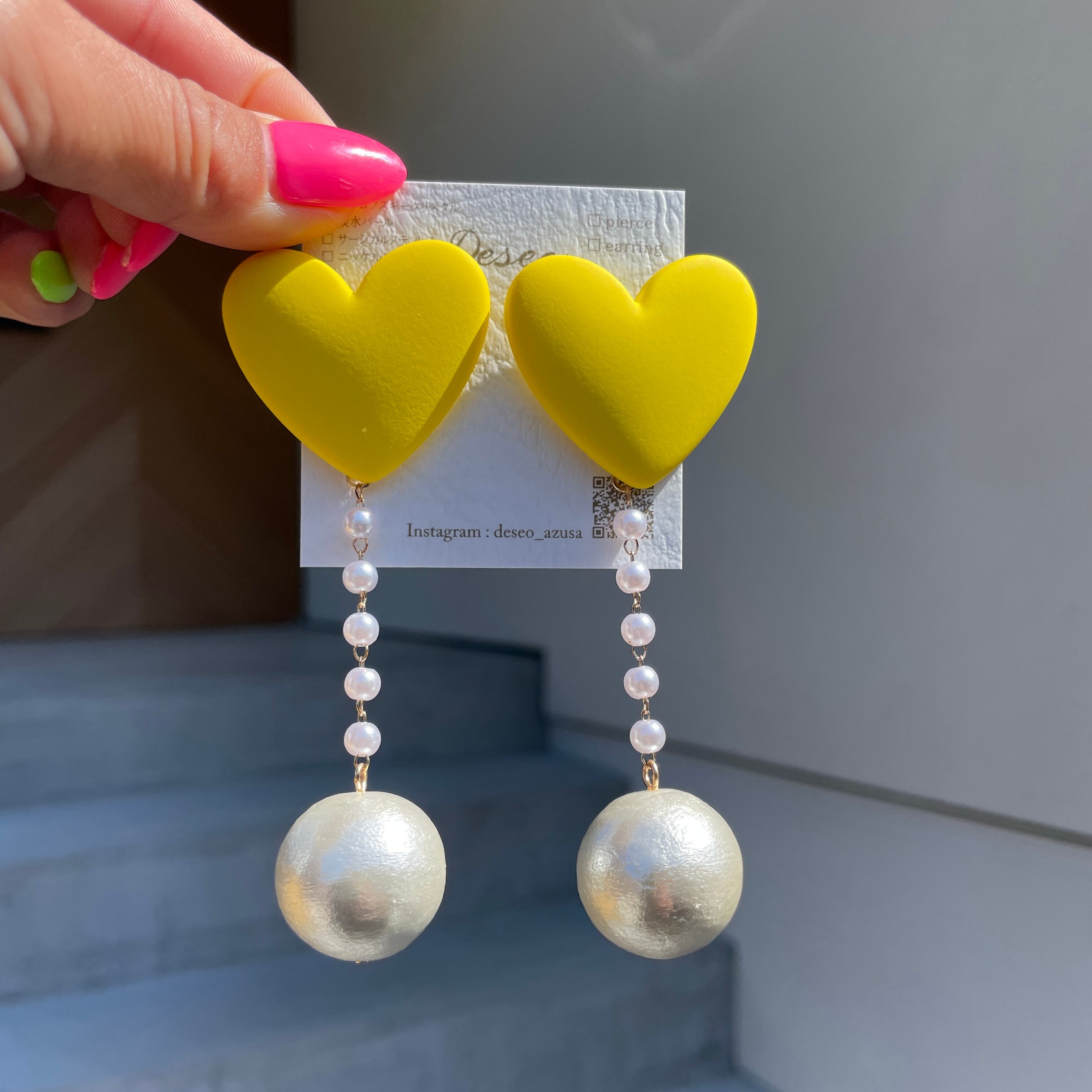 Yellow Heart❤️ハートピアス ハートイヤリング BIGハート NO.535