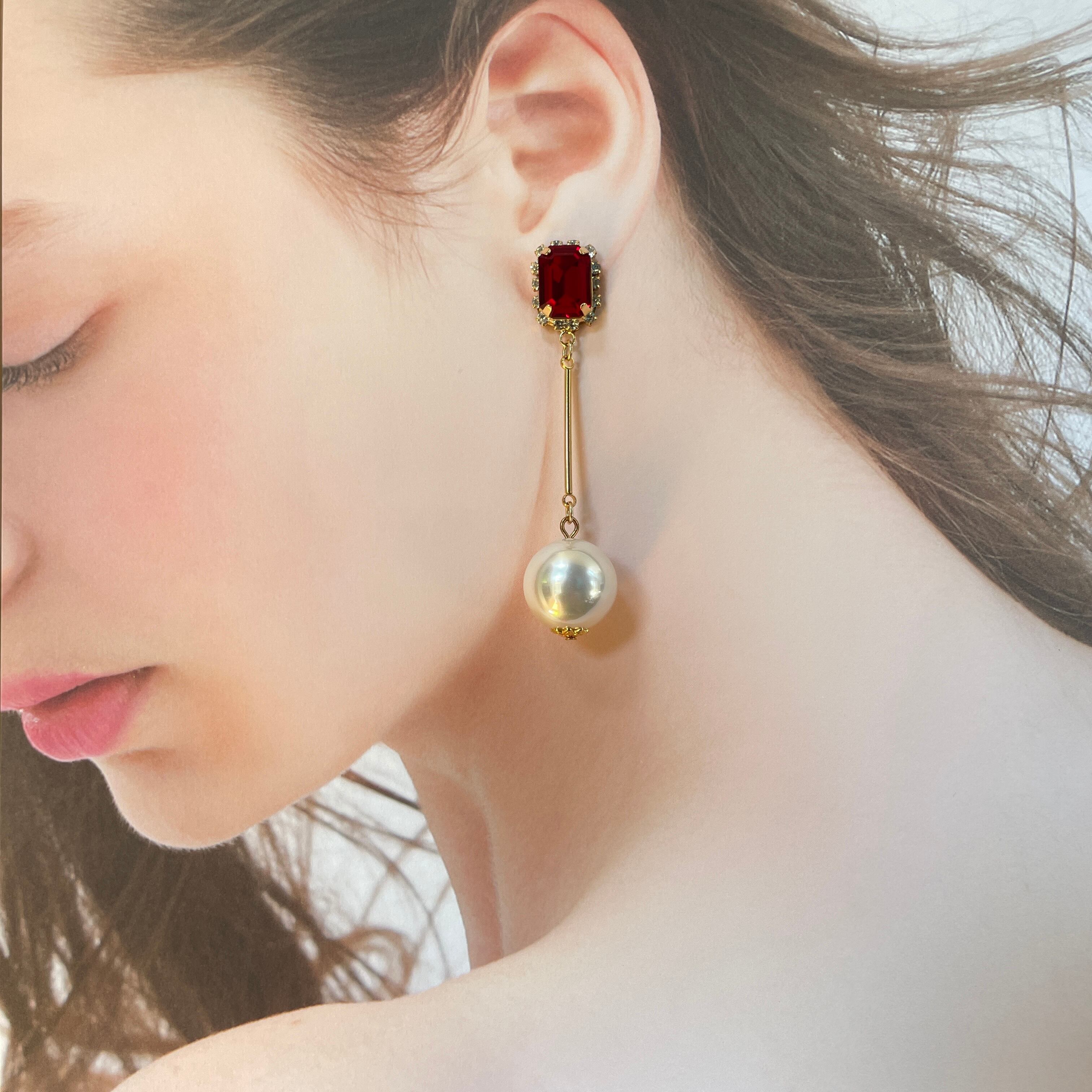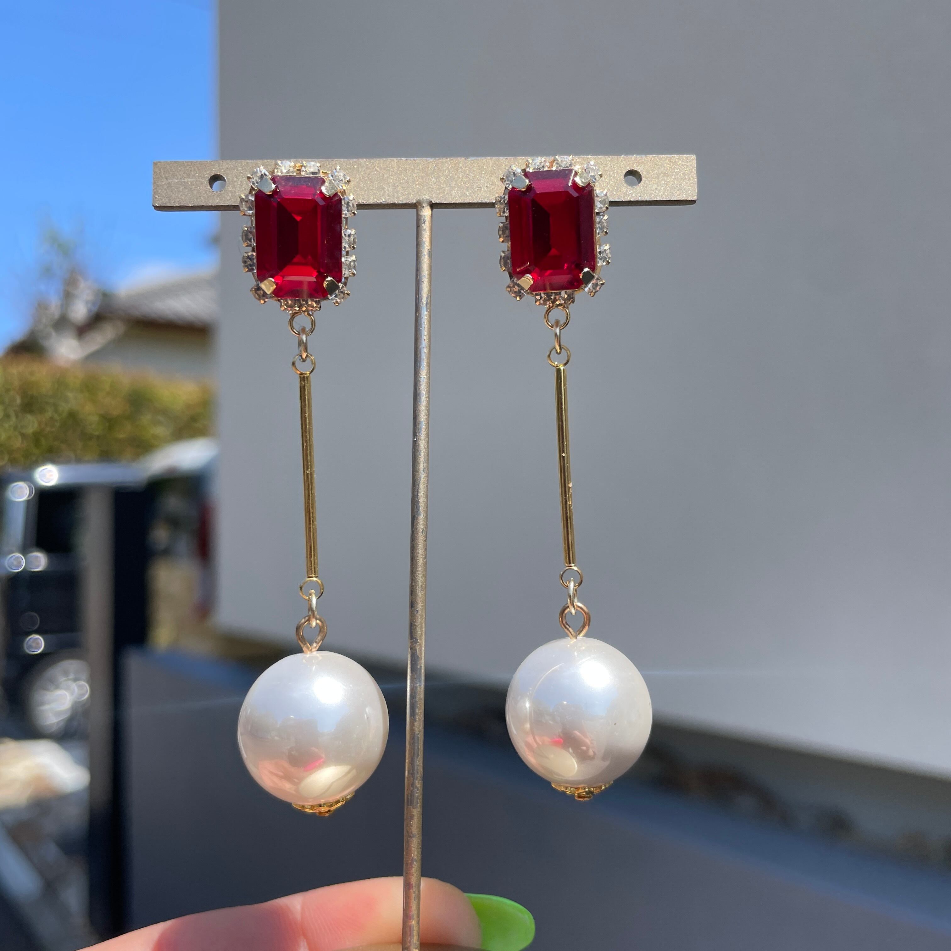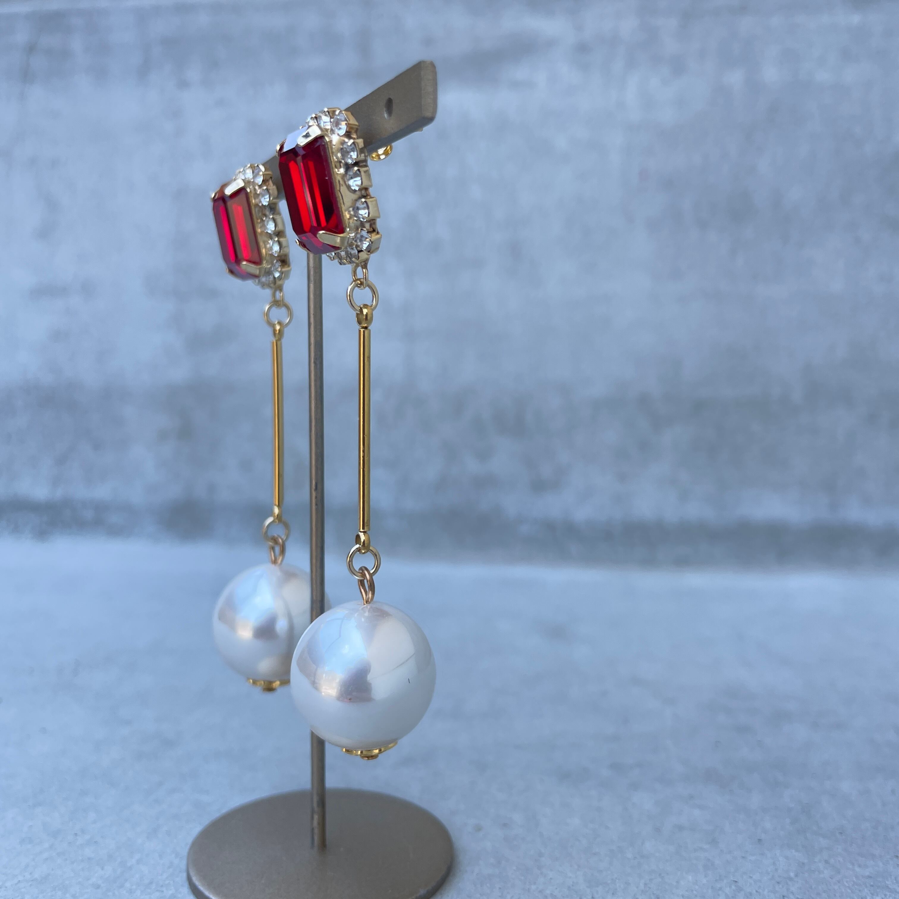 ボルドースワロフスキーピアス✨パールピアス スワロフスキーピアス NO.543