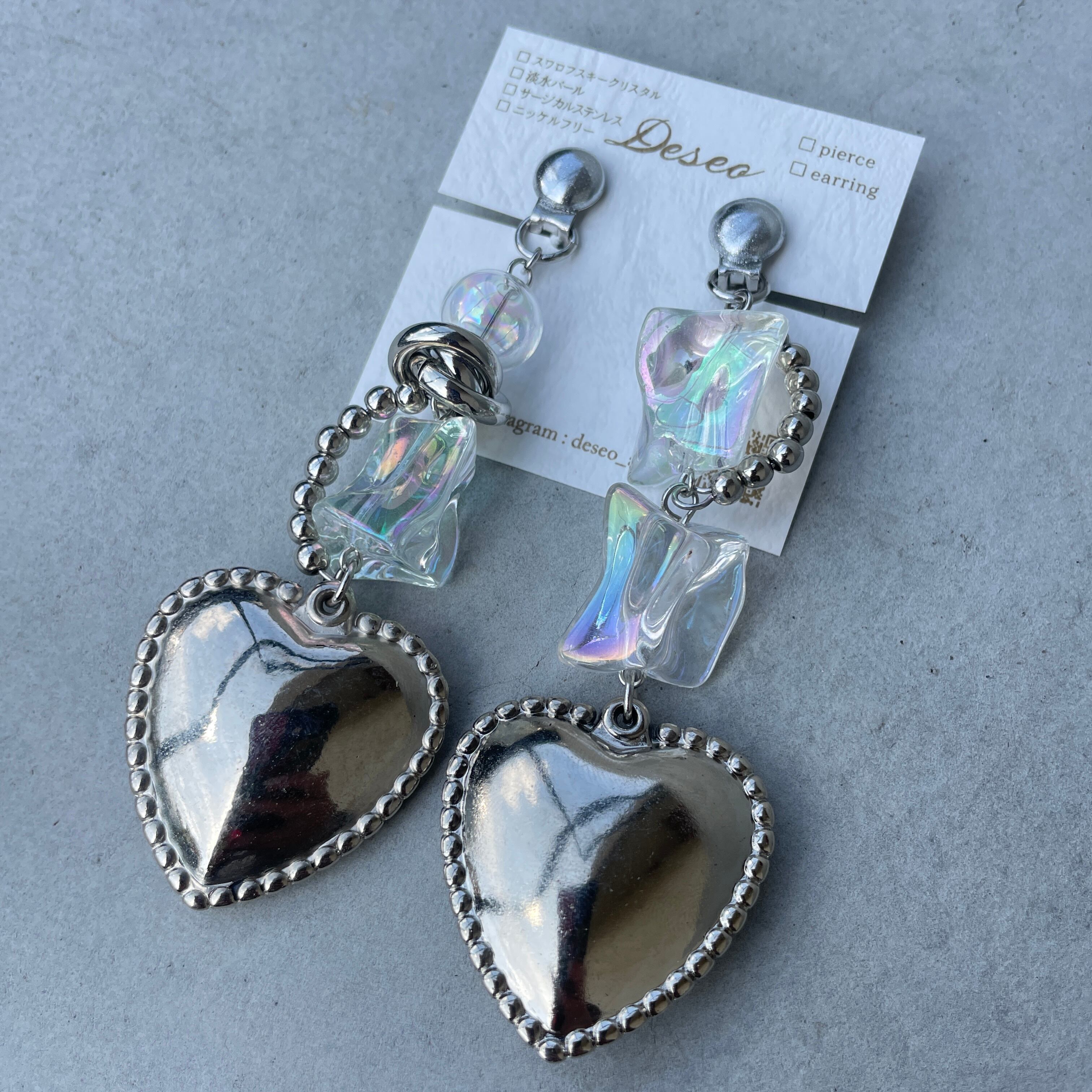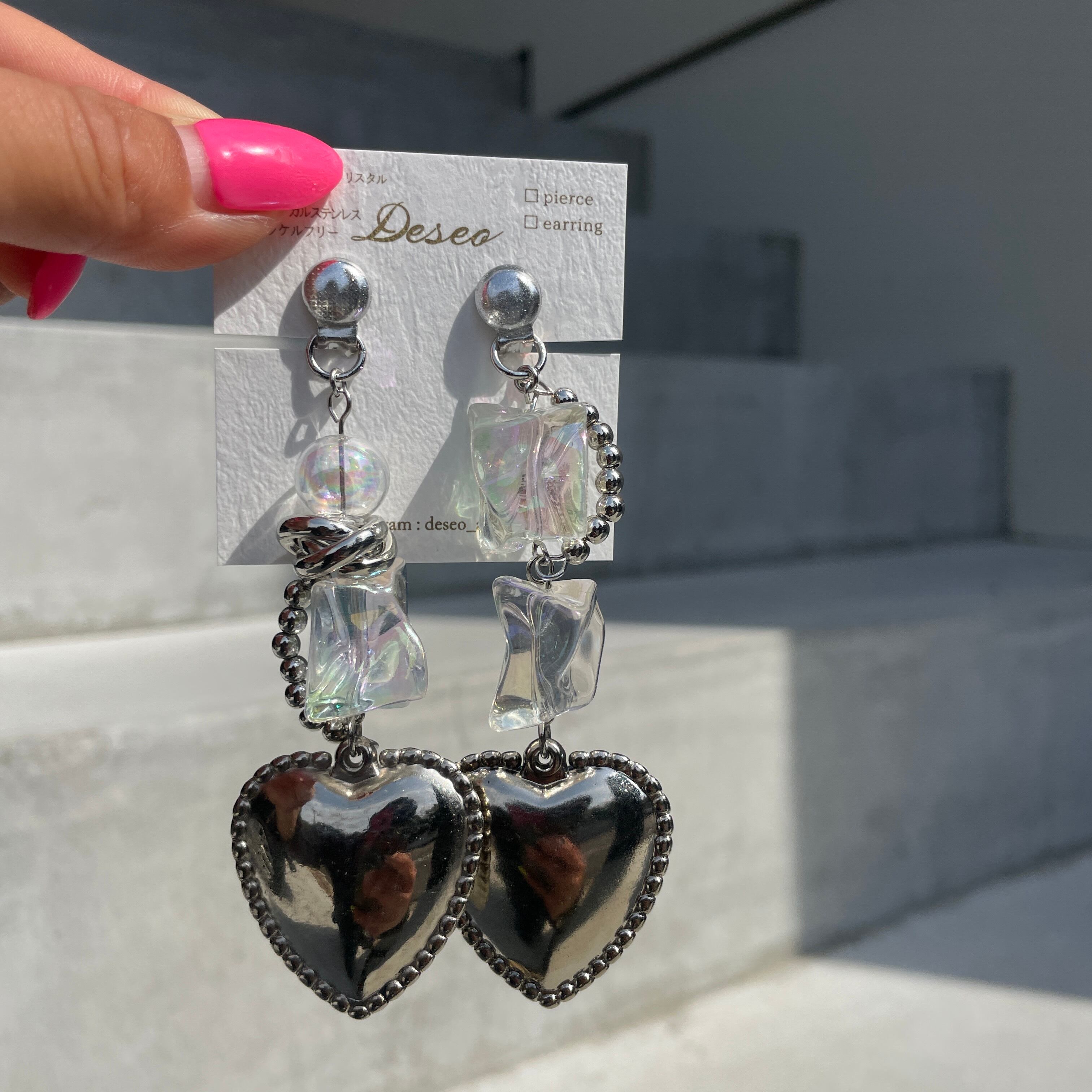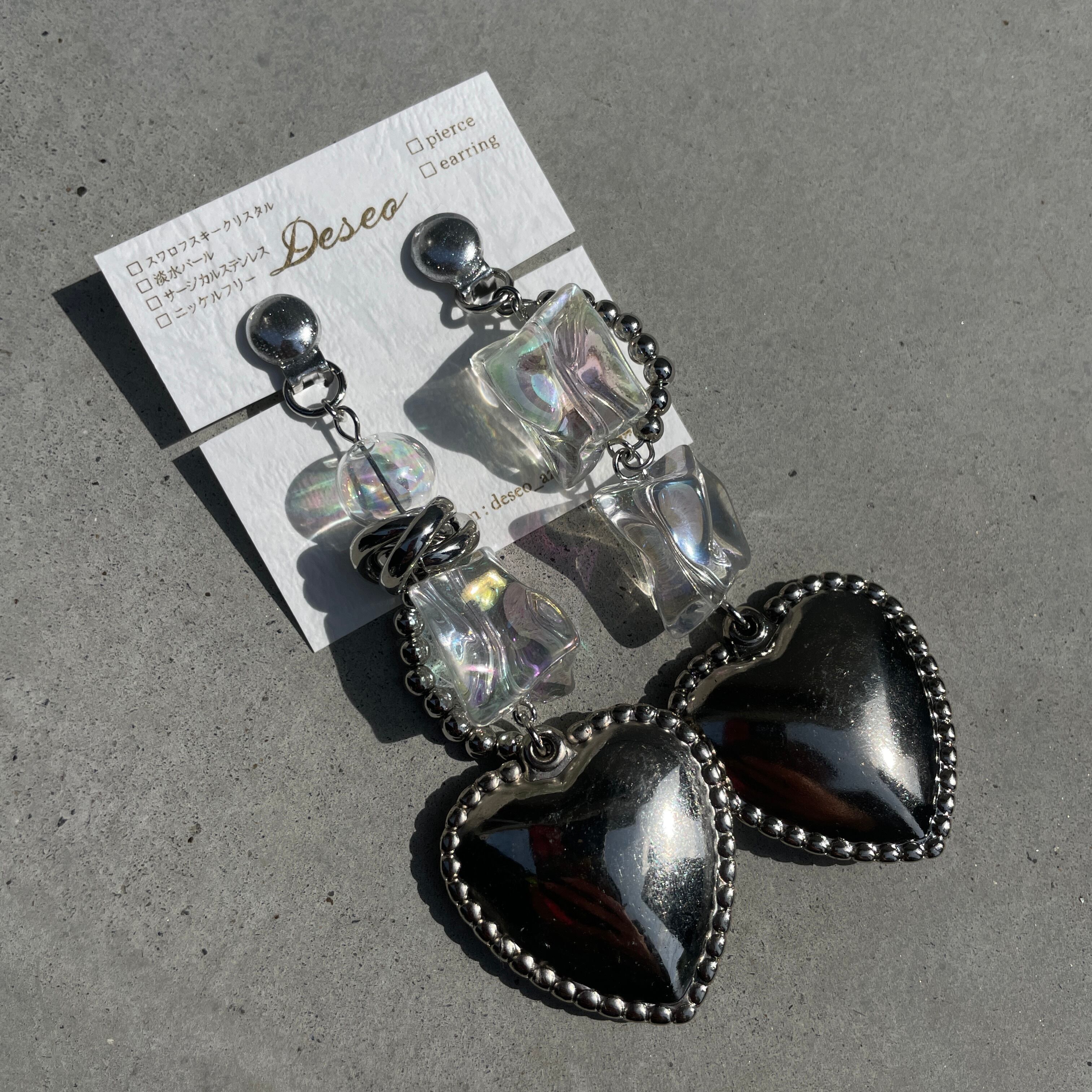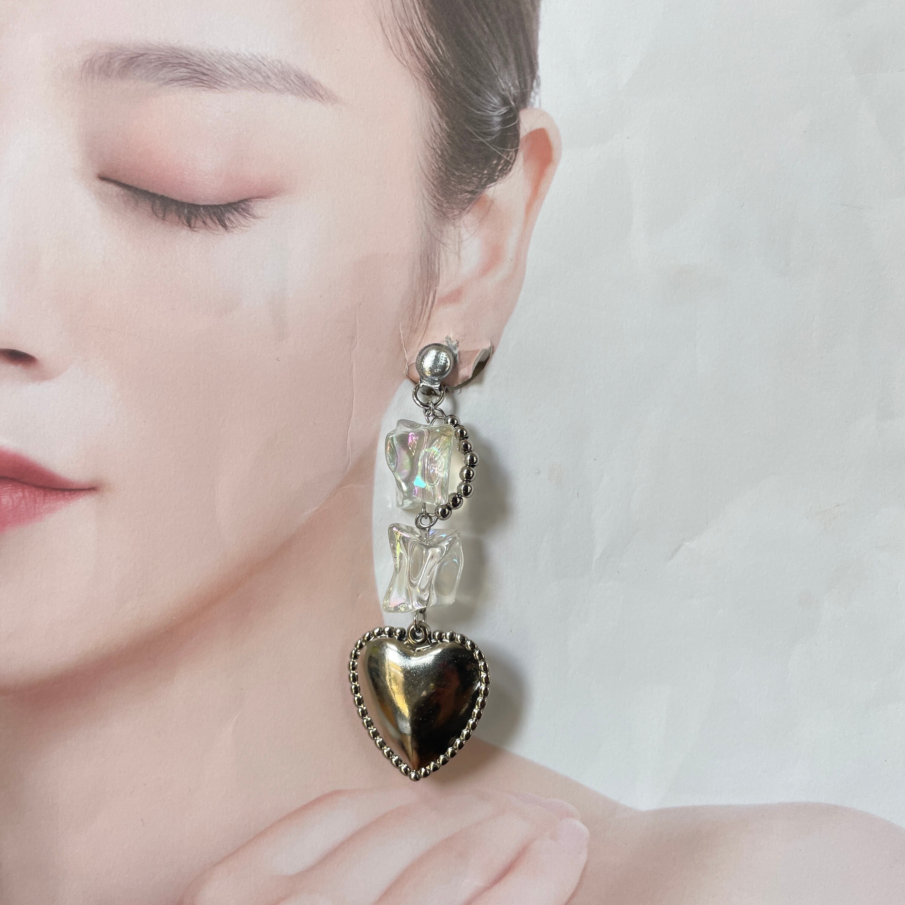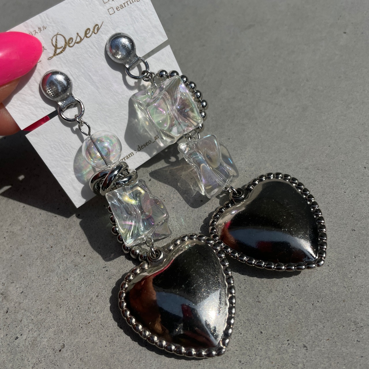 氷 × HEART❤️アシメ SILVER★ ハートピアス ハートイヤリング NO.550