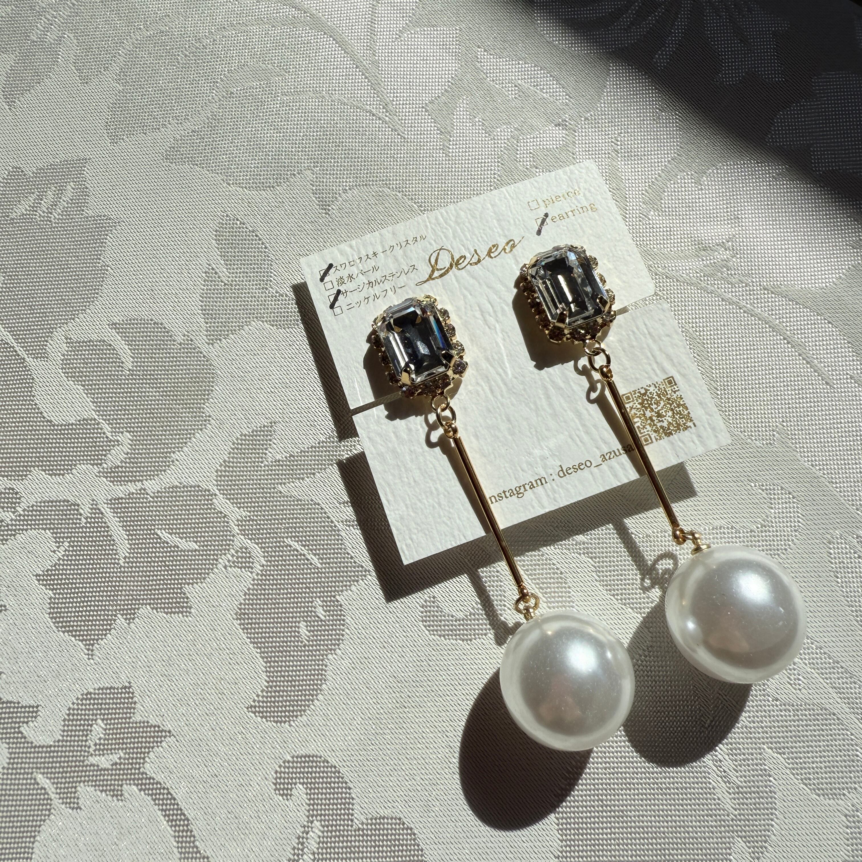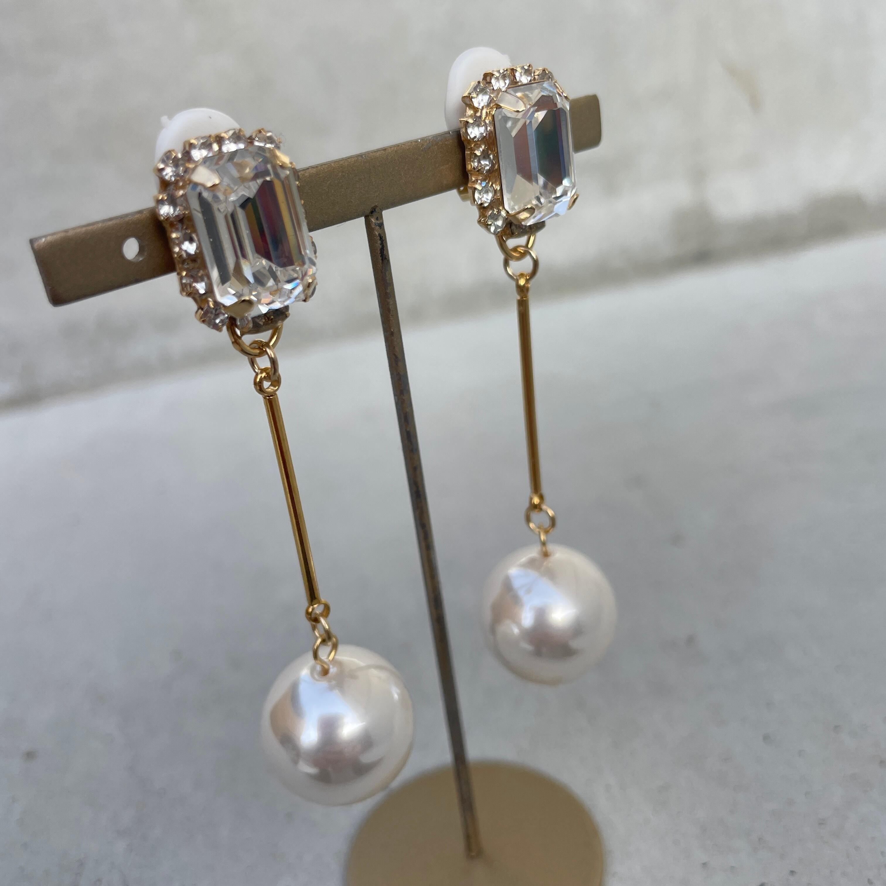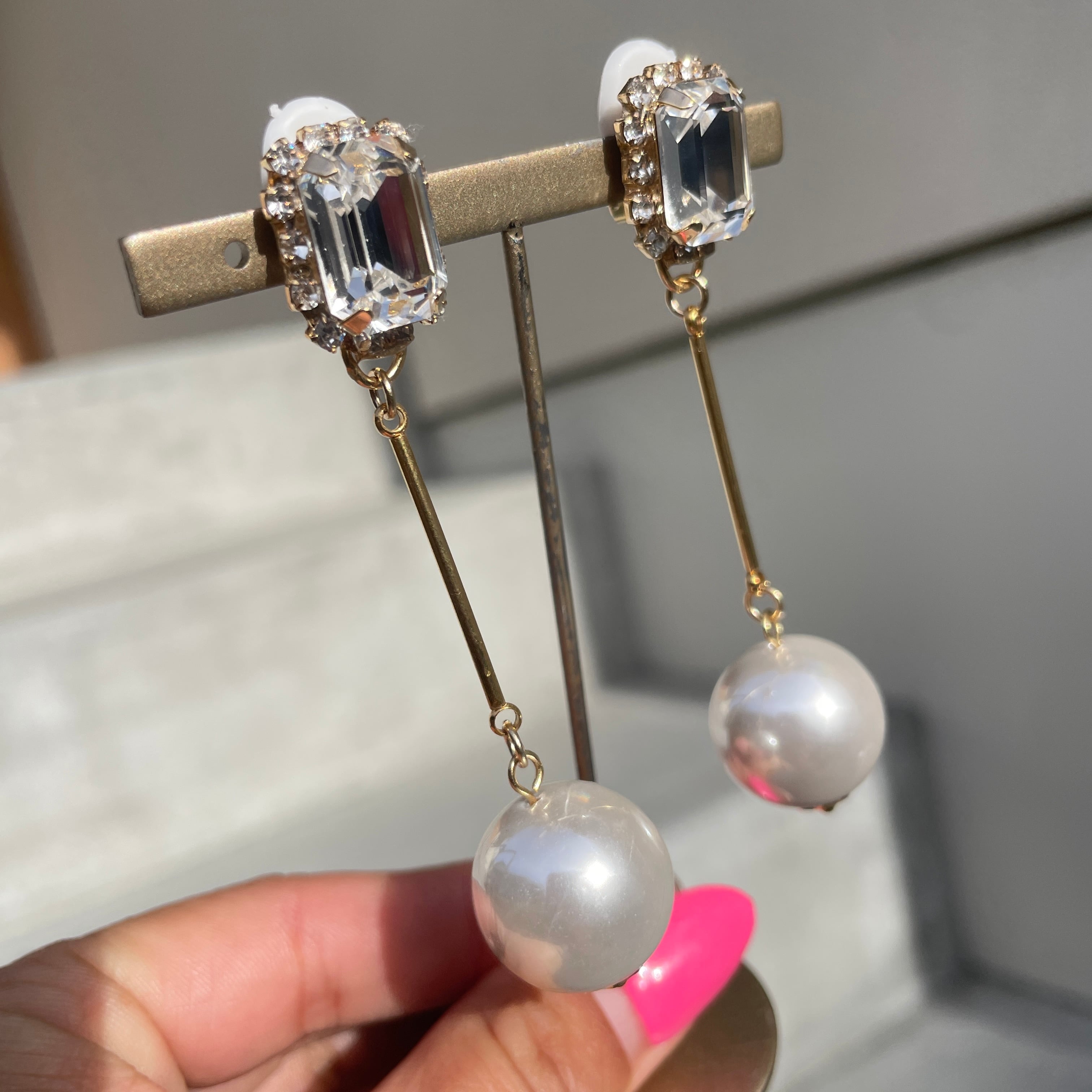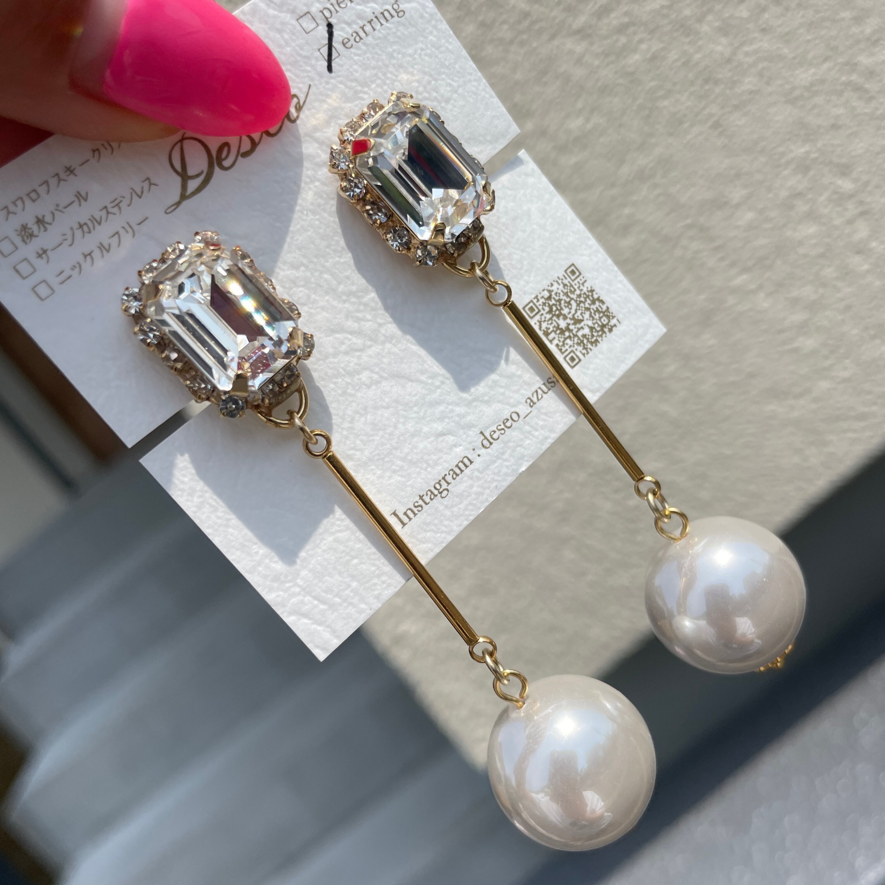 クリアスワロフスキー✨パールピアス パールイヤリング スワロフスキーピアス スワロフスキーイヤリング NO.559