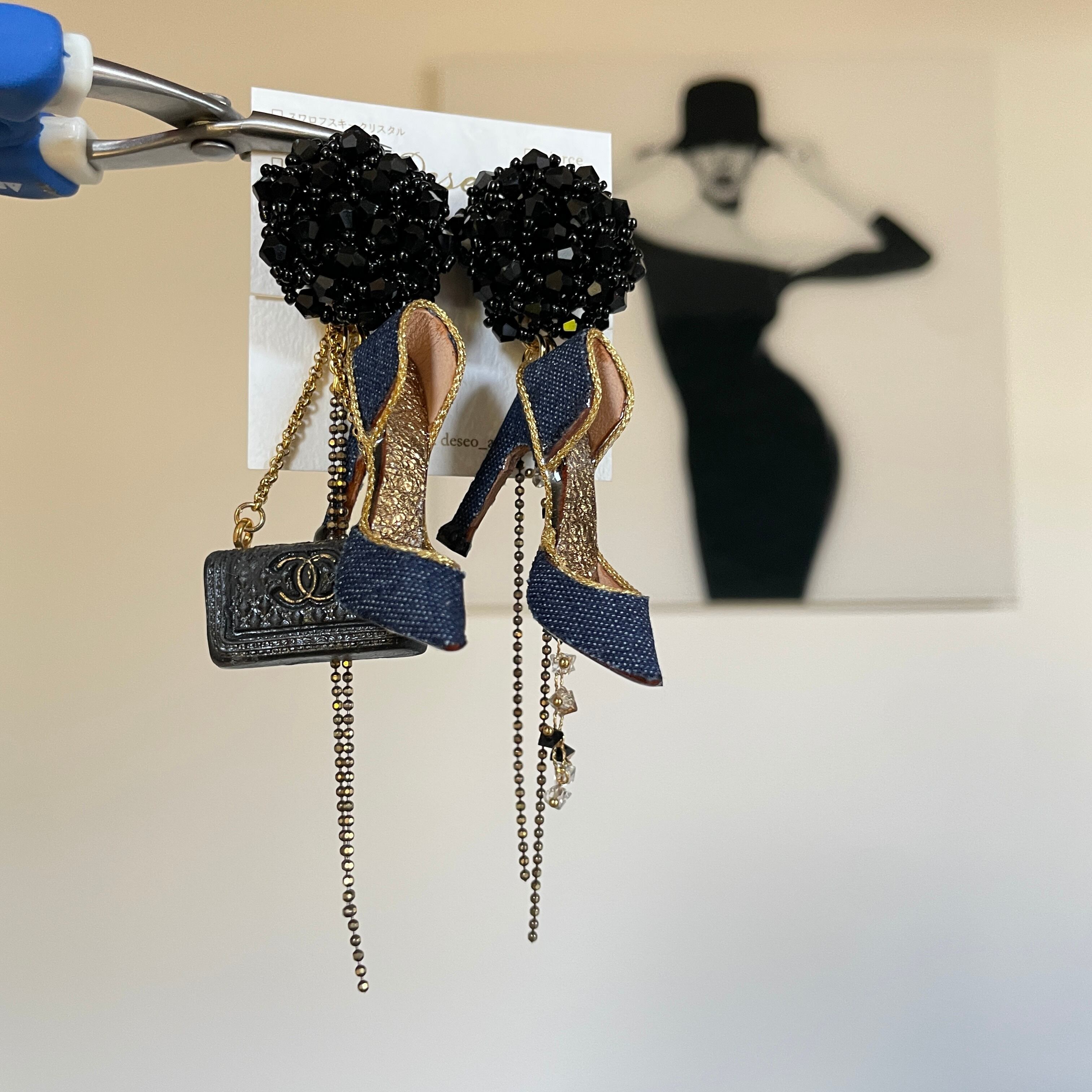 デニムハイヒールイヤリング❤️ハイブランドBAG★ハイヒールイヤリング NO.564