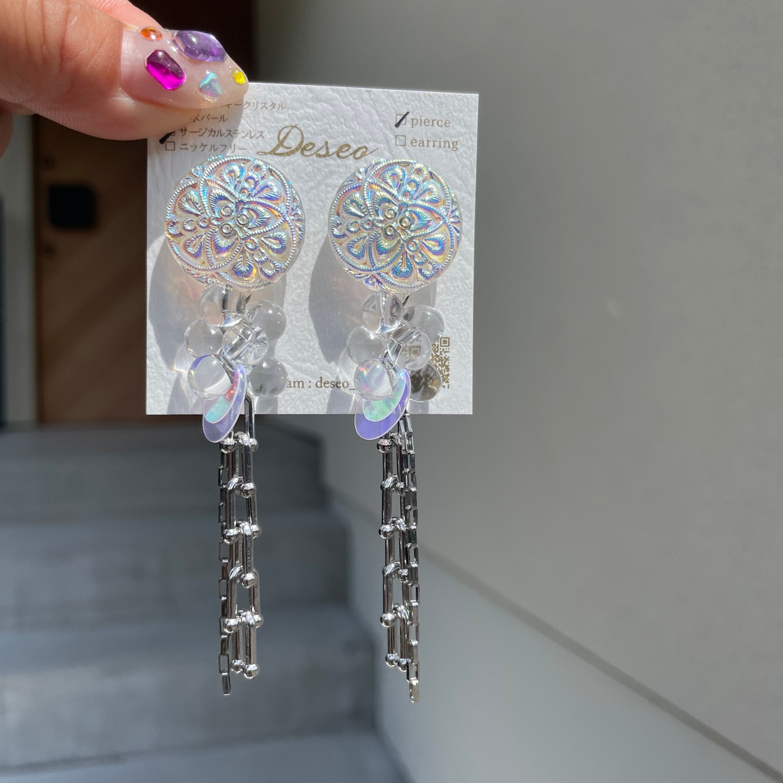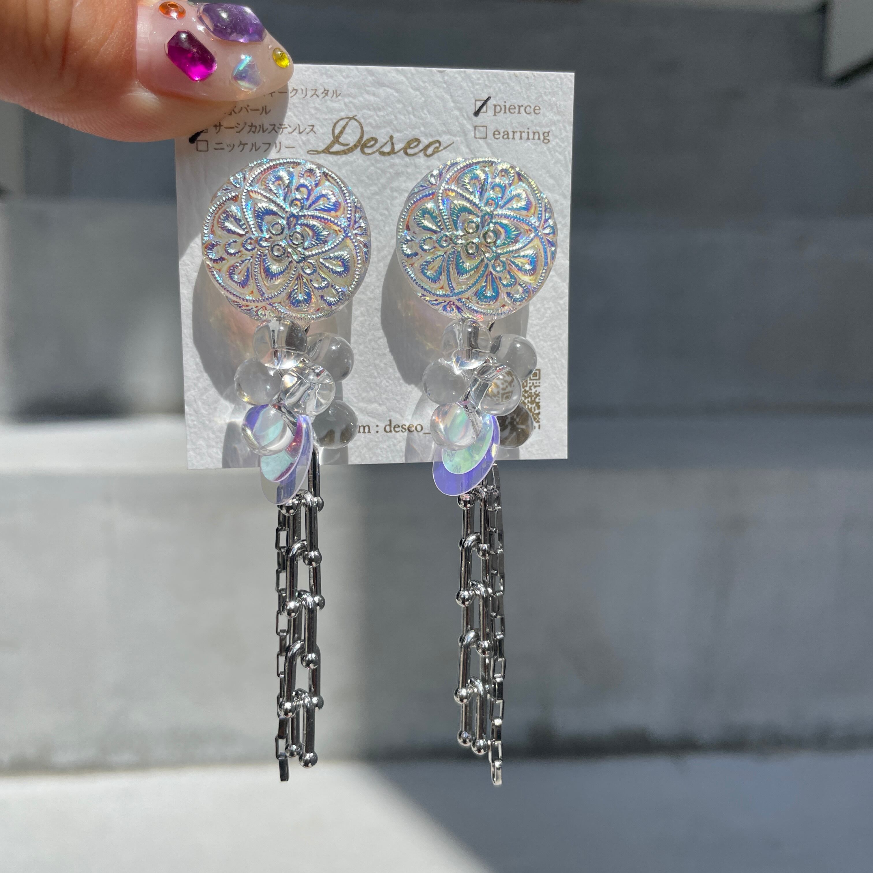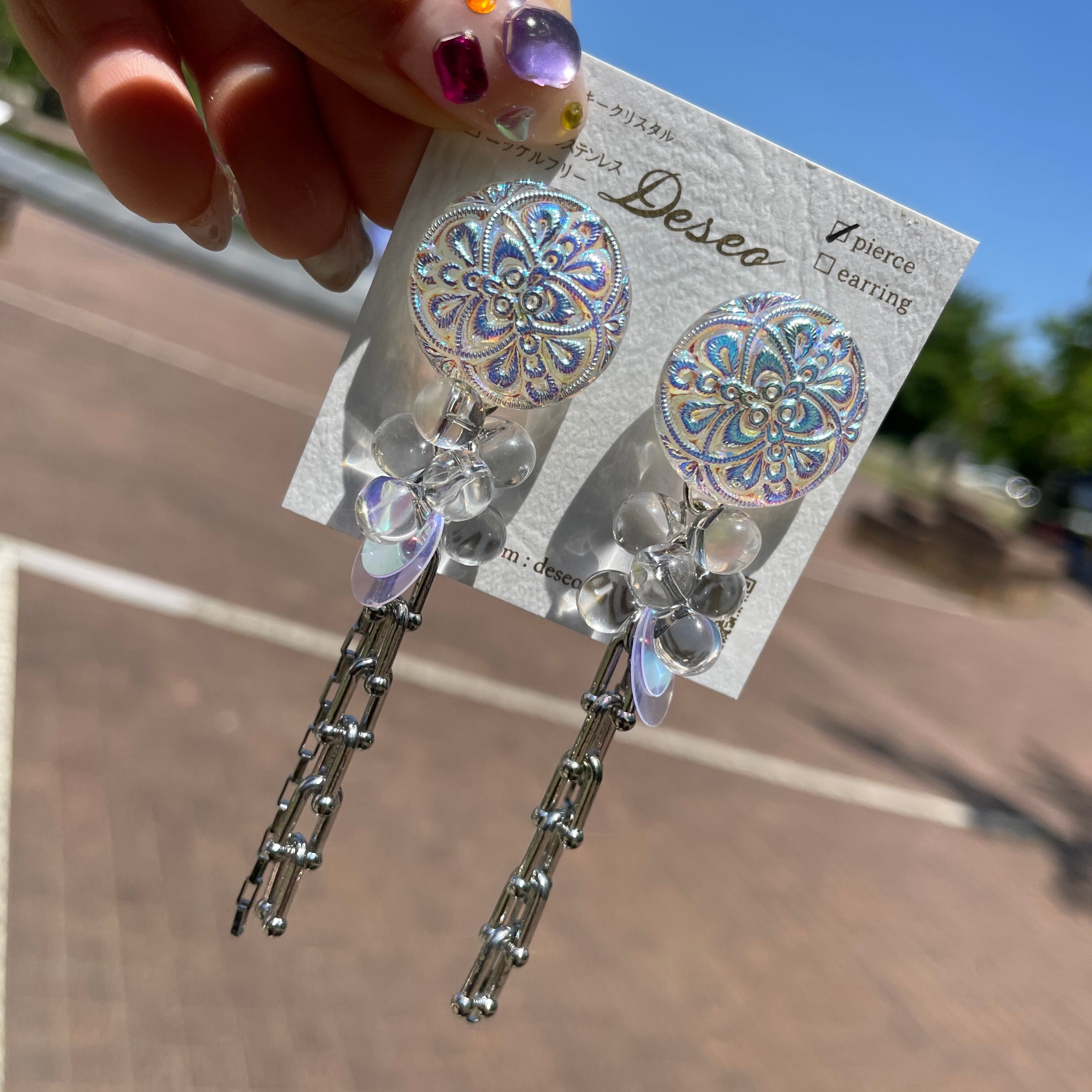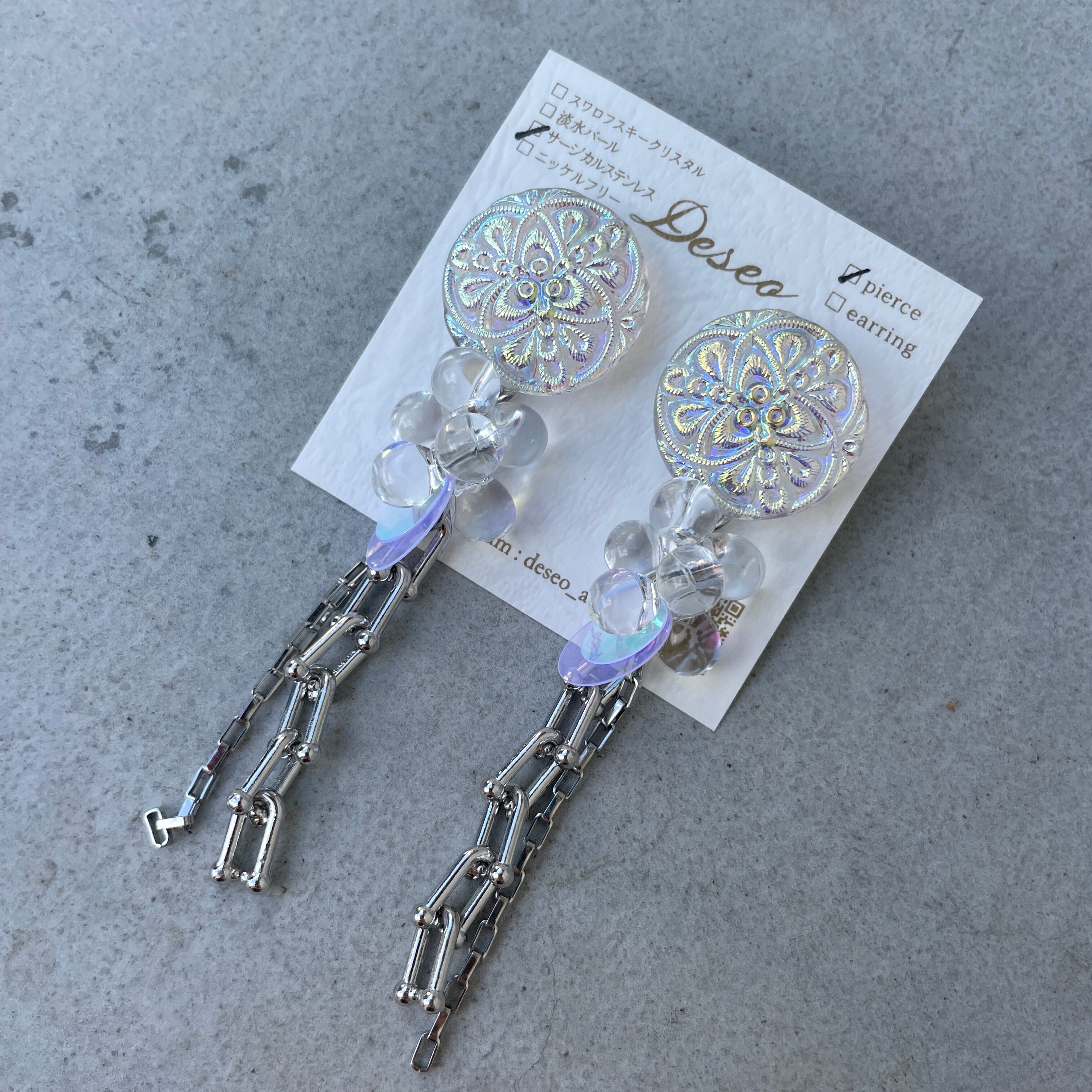 オーロラチェコガラスボタン✨ボタンピアス ボタンイヤリング NO.574