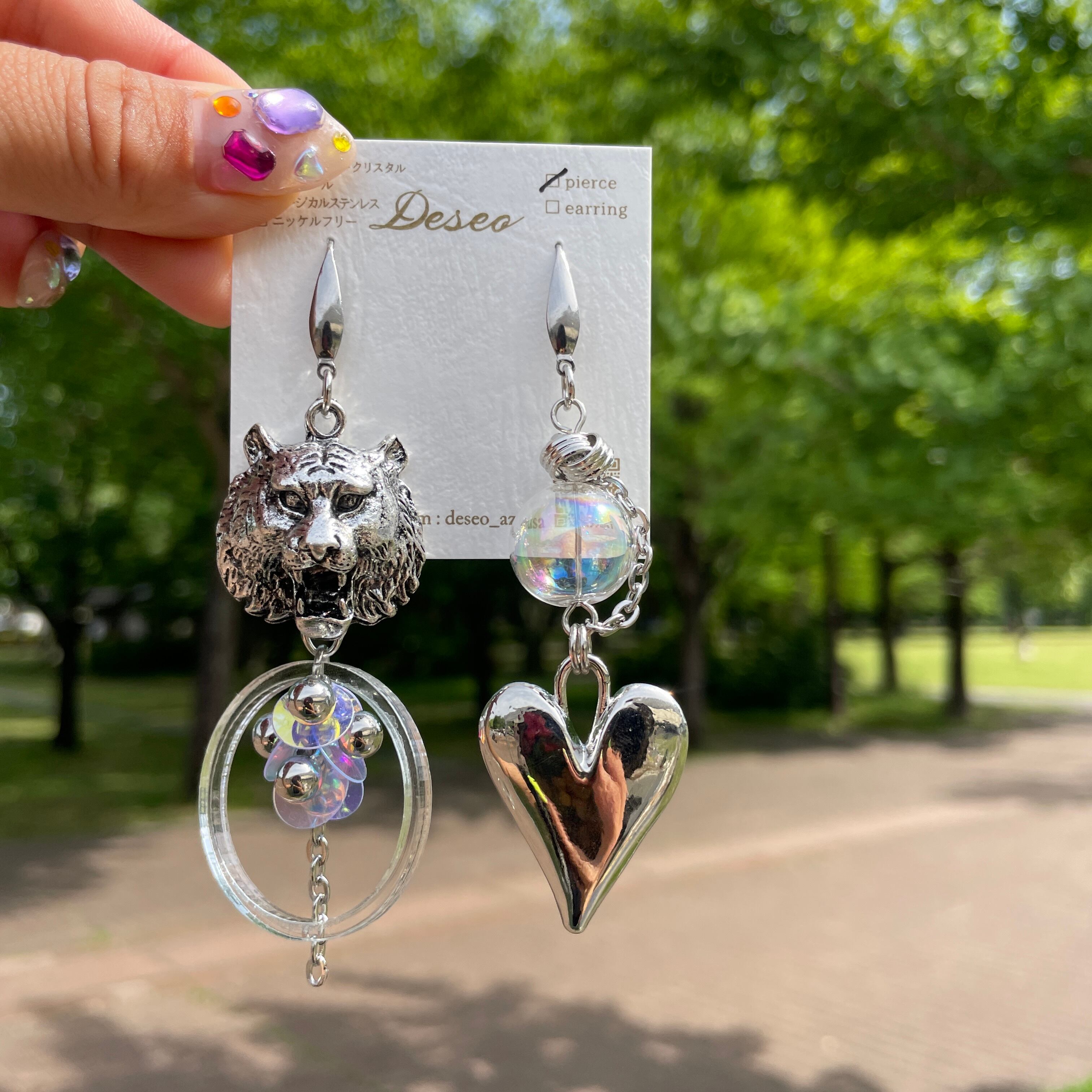 アシメ Tora × Heart❤️トラピアス トライヤリング 虎 タイガー NO.577
