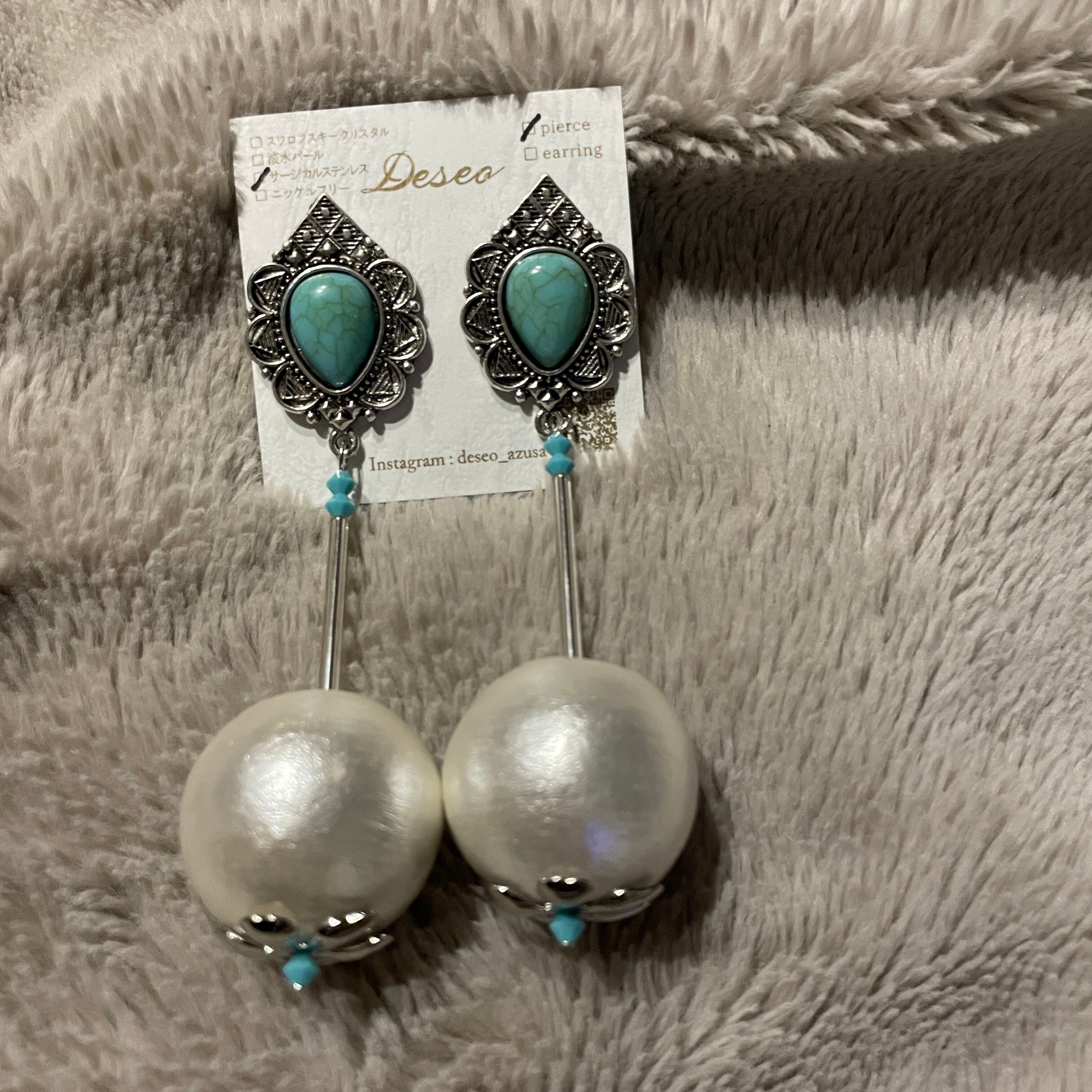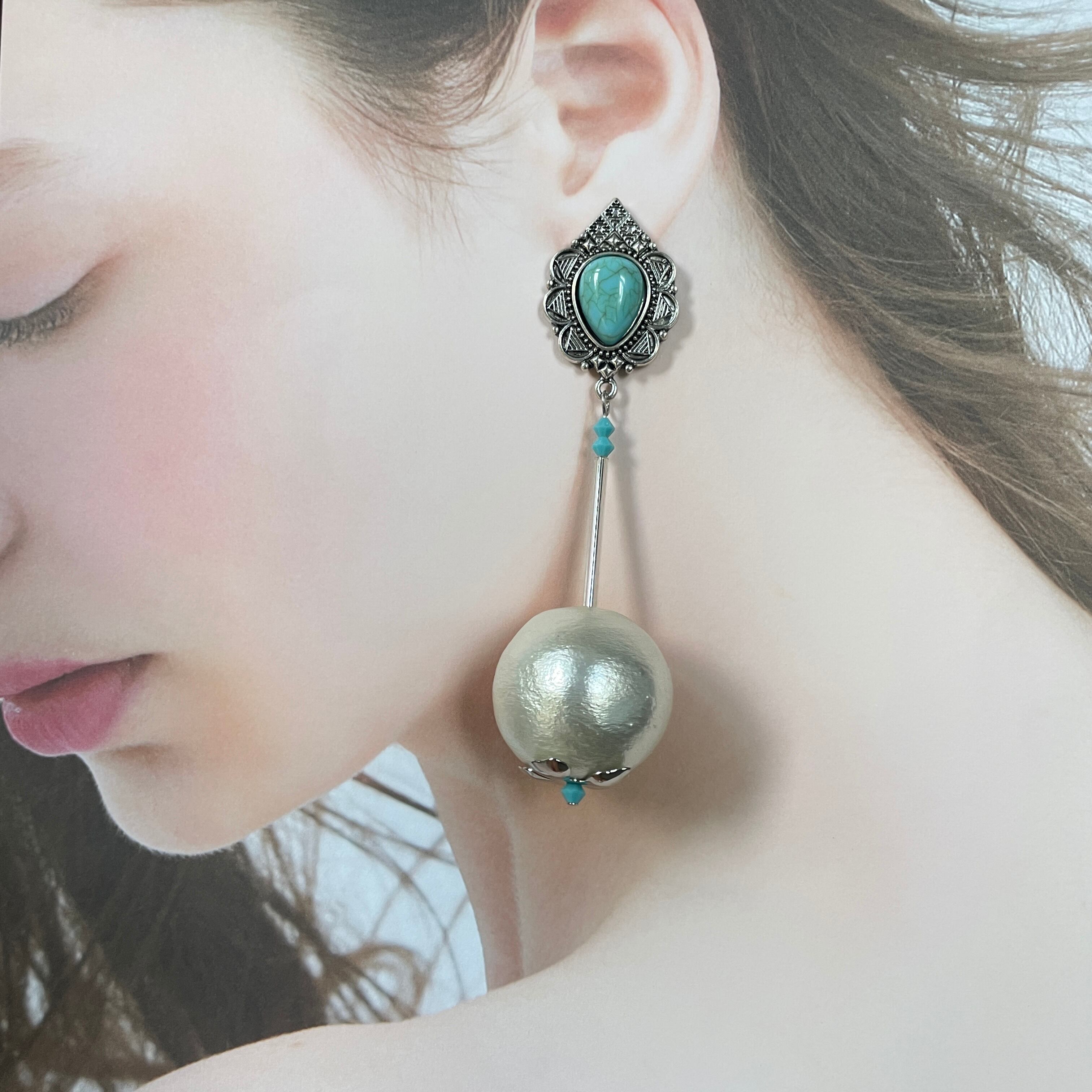 Silver × Turquoise★BIGコットンパール NO.579