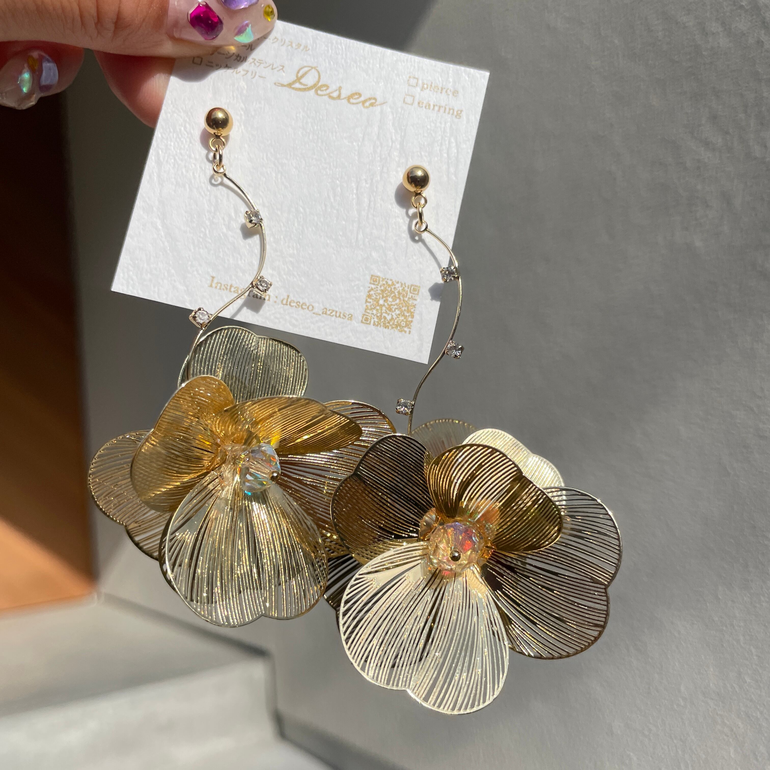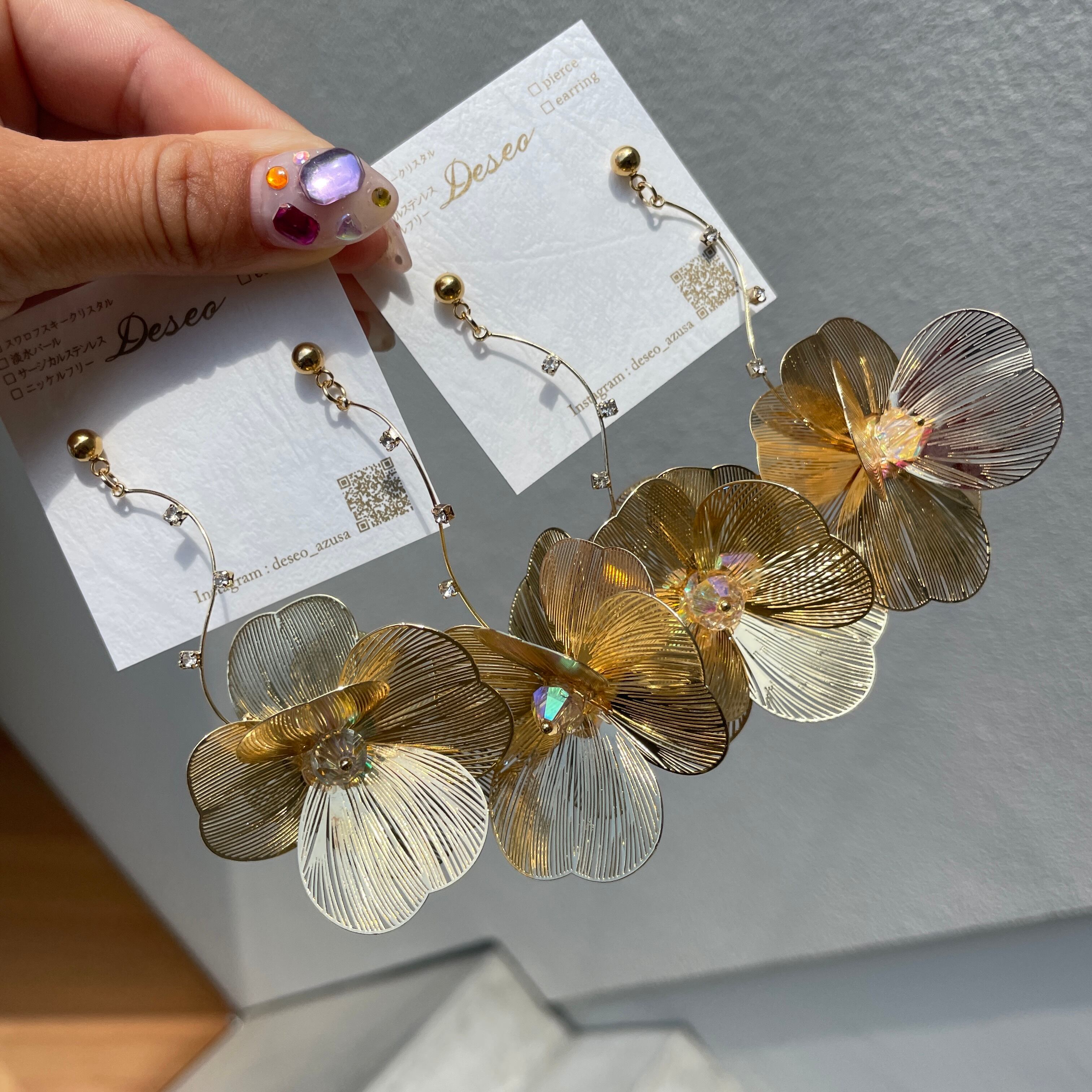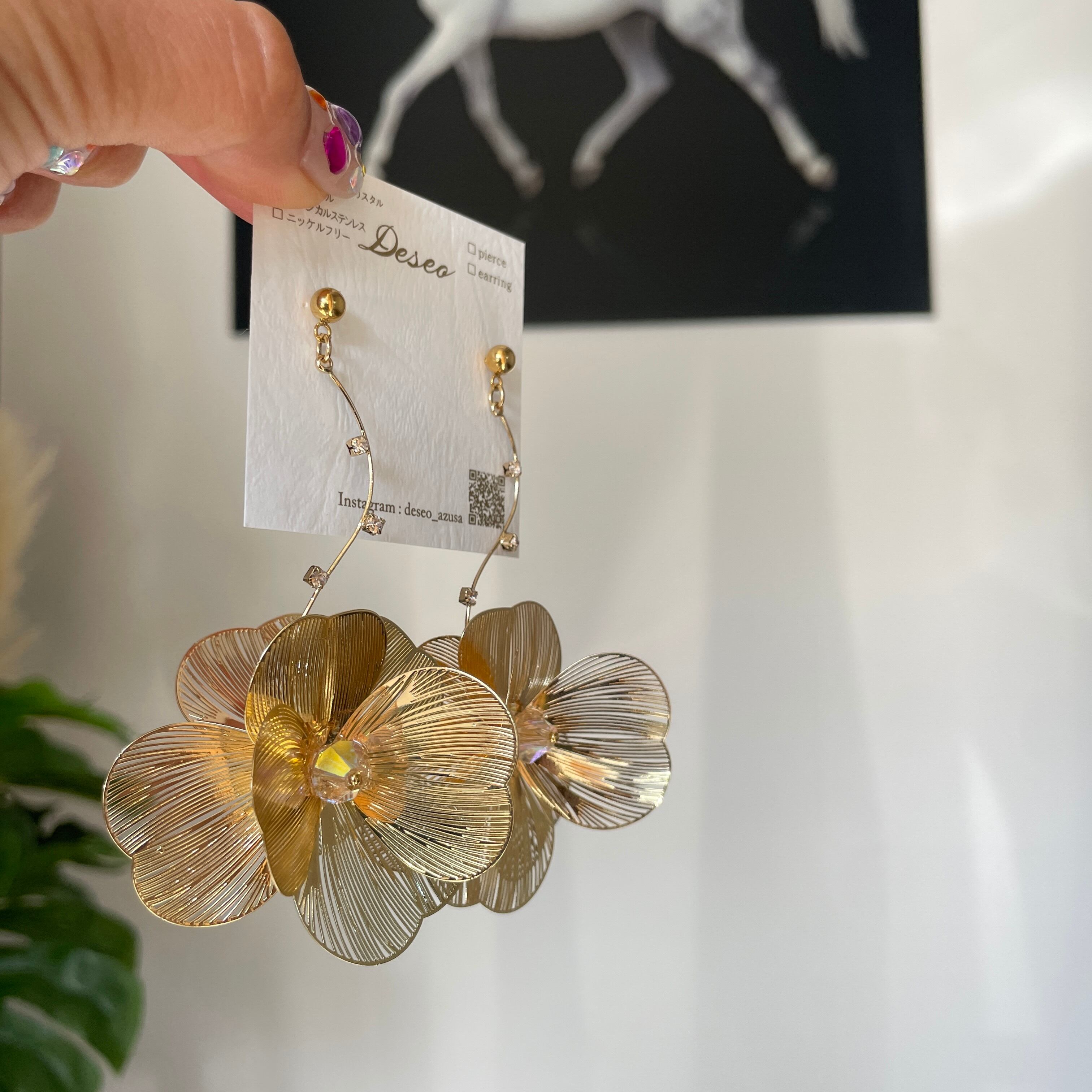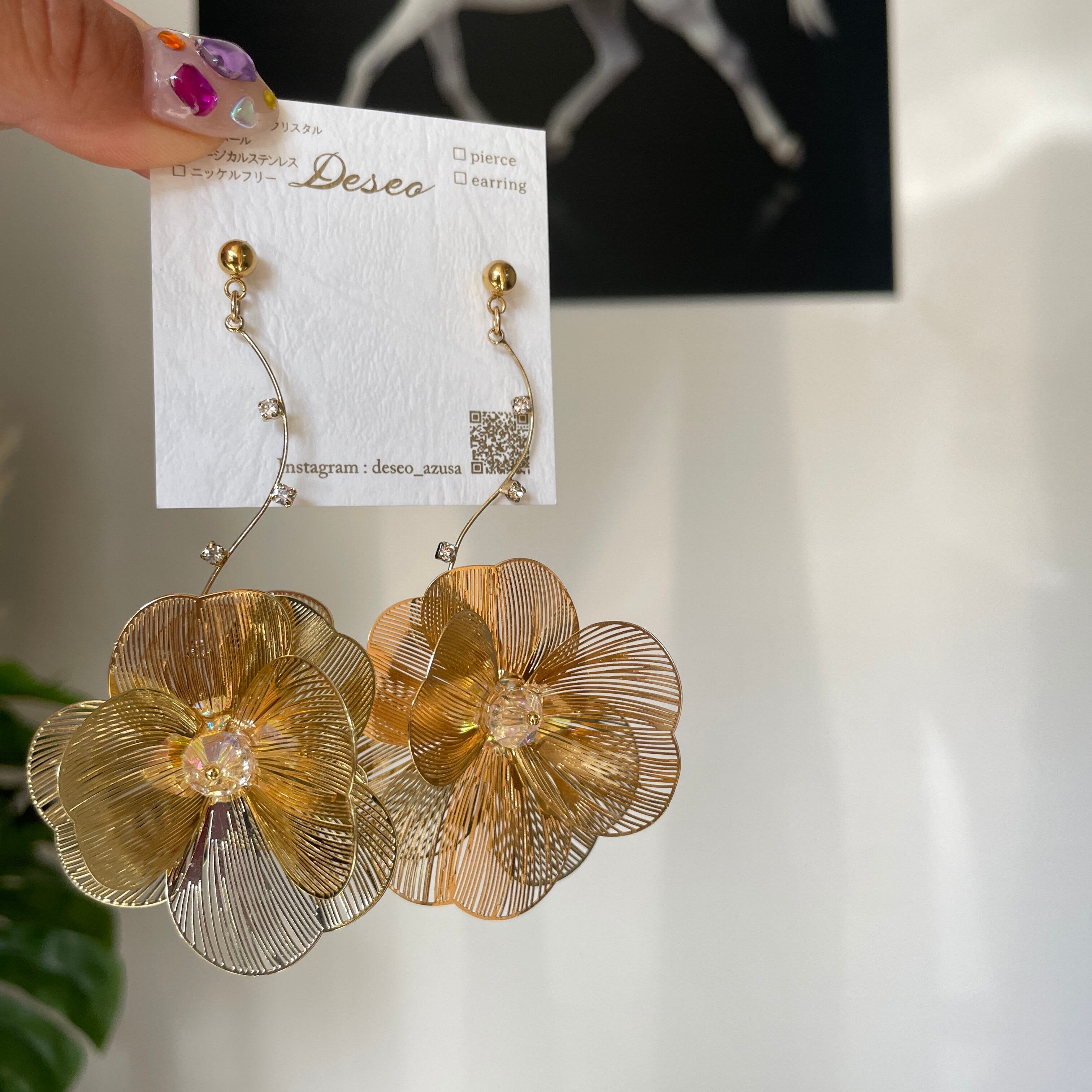 BIG BIG フラワー✨GOLD★お花ピアス お花イヤリング NO.586