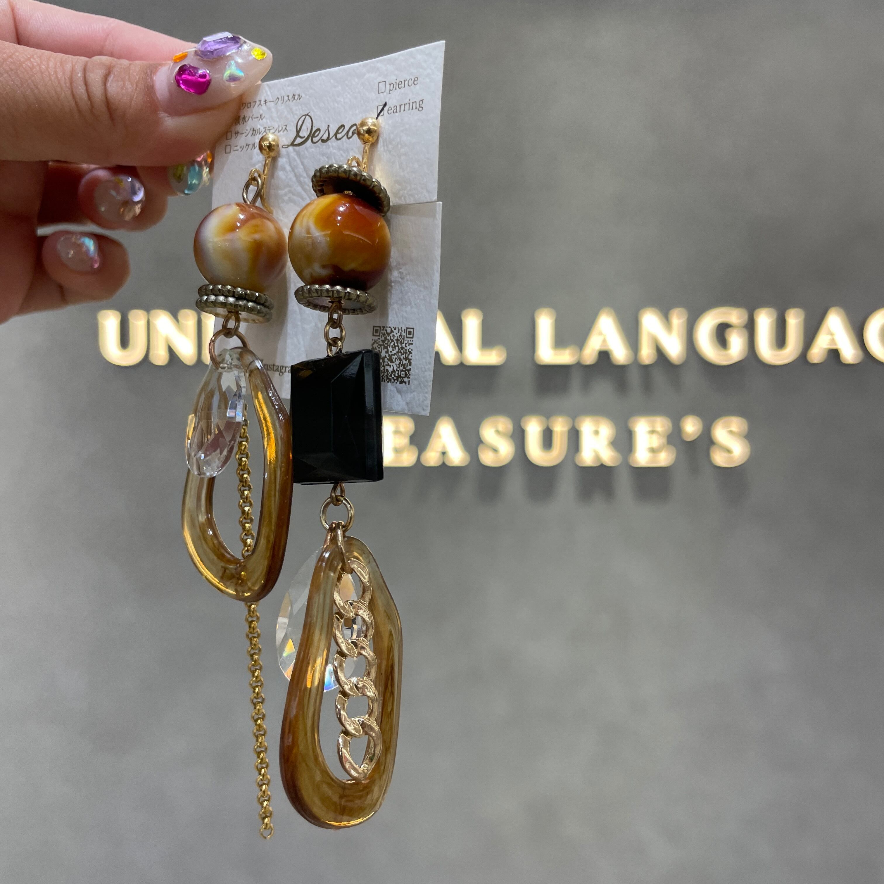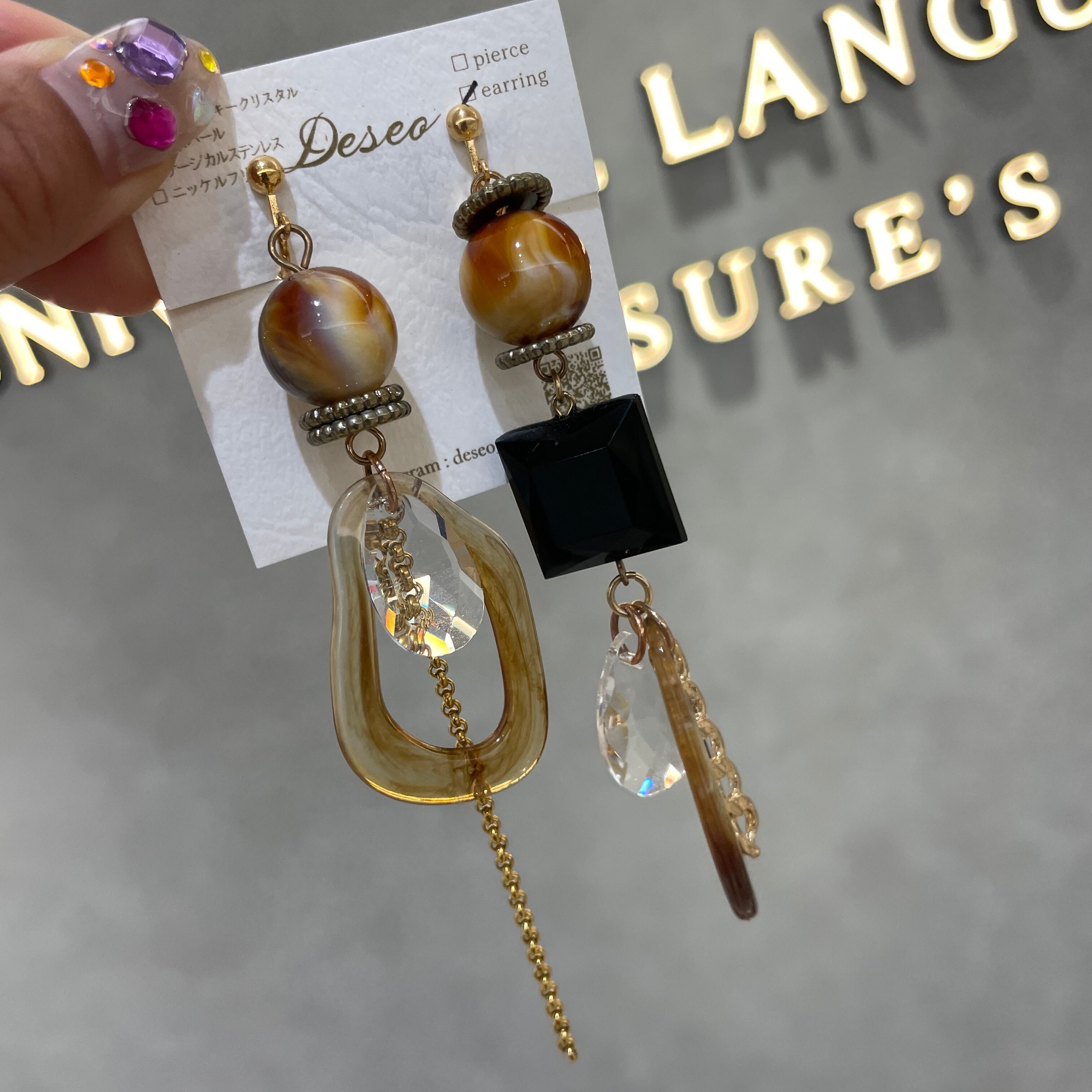 べっ甲color★アシメピアス アシメイヤリング✨ NO.596