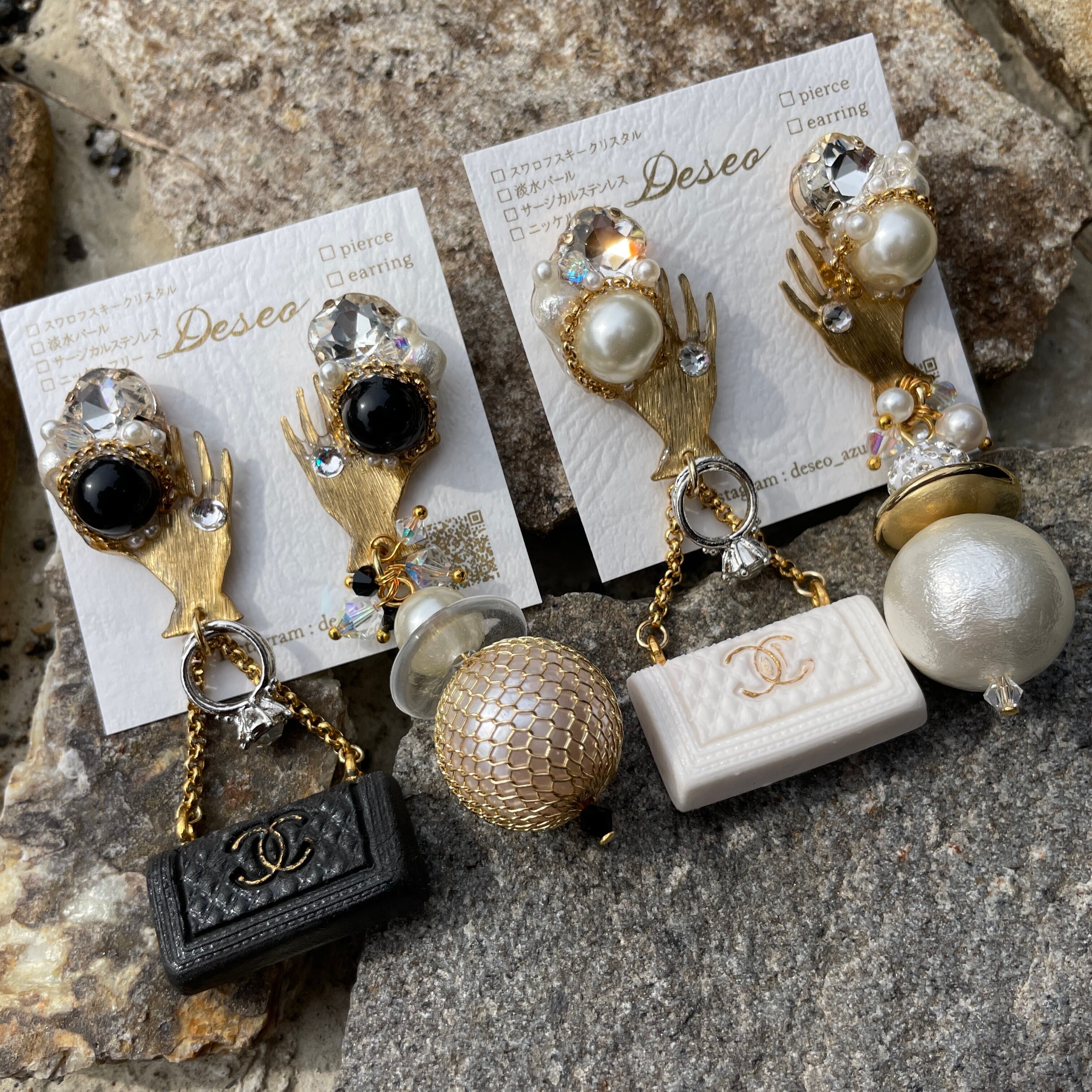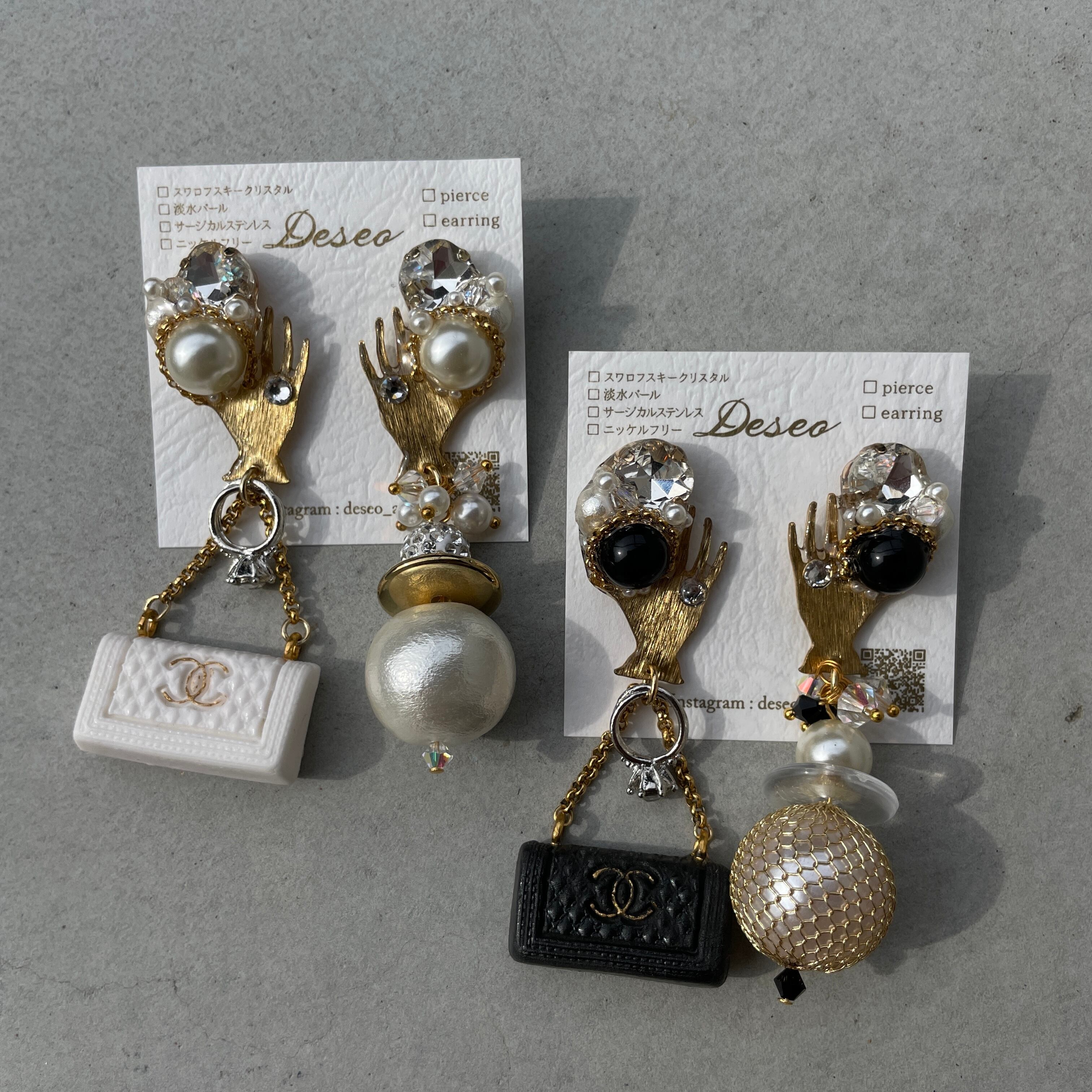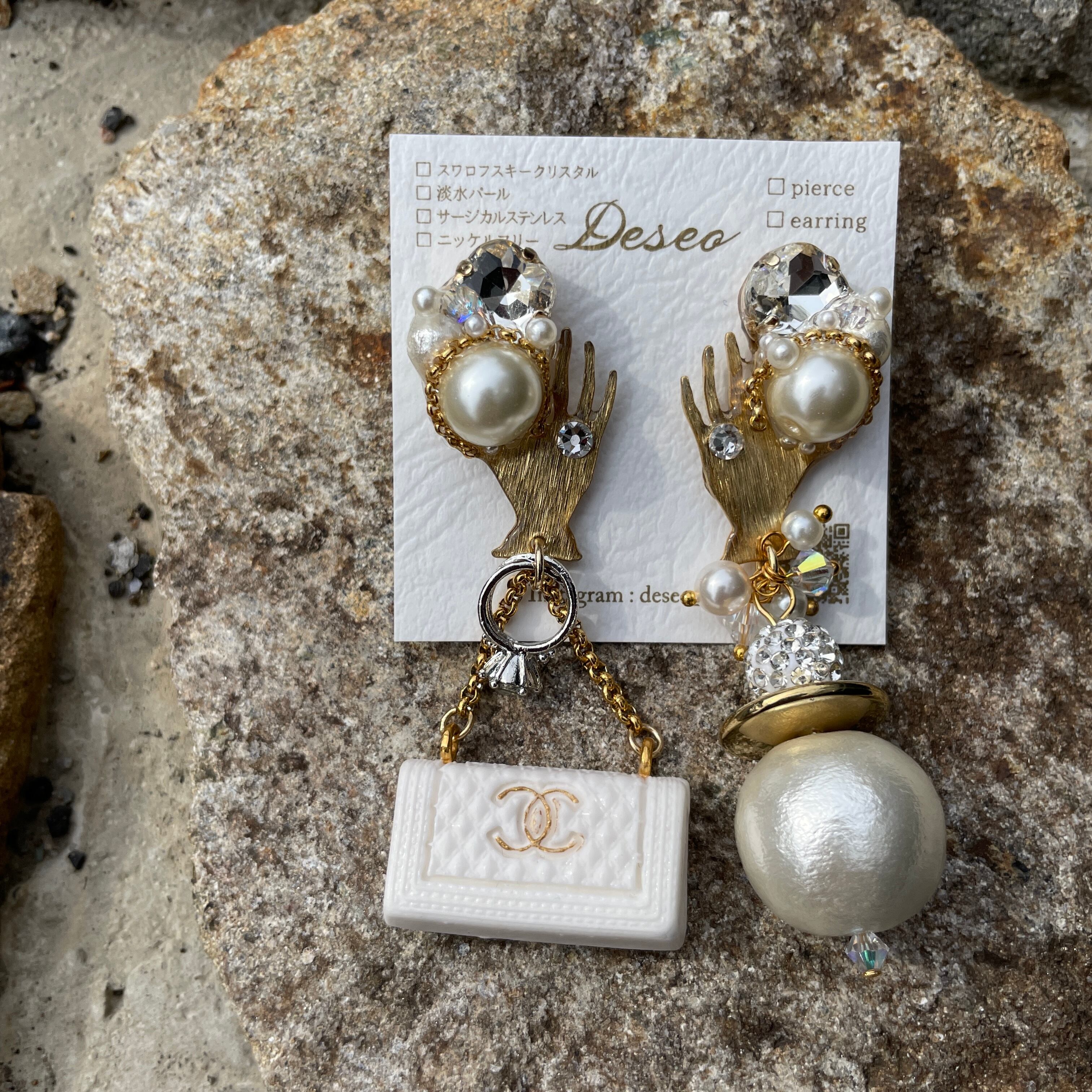 【 物欲 】WHITE バッグ アシメ★バッグピアス バッグイヤリング NO599