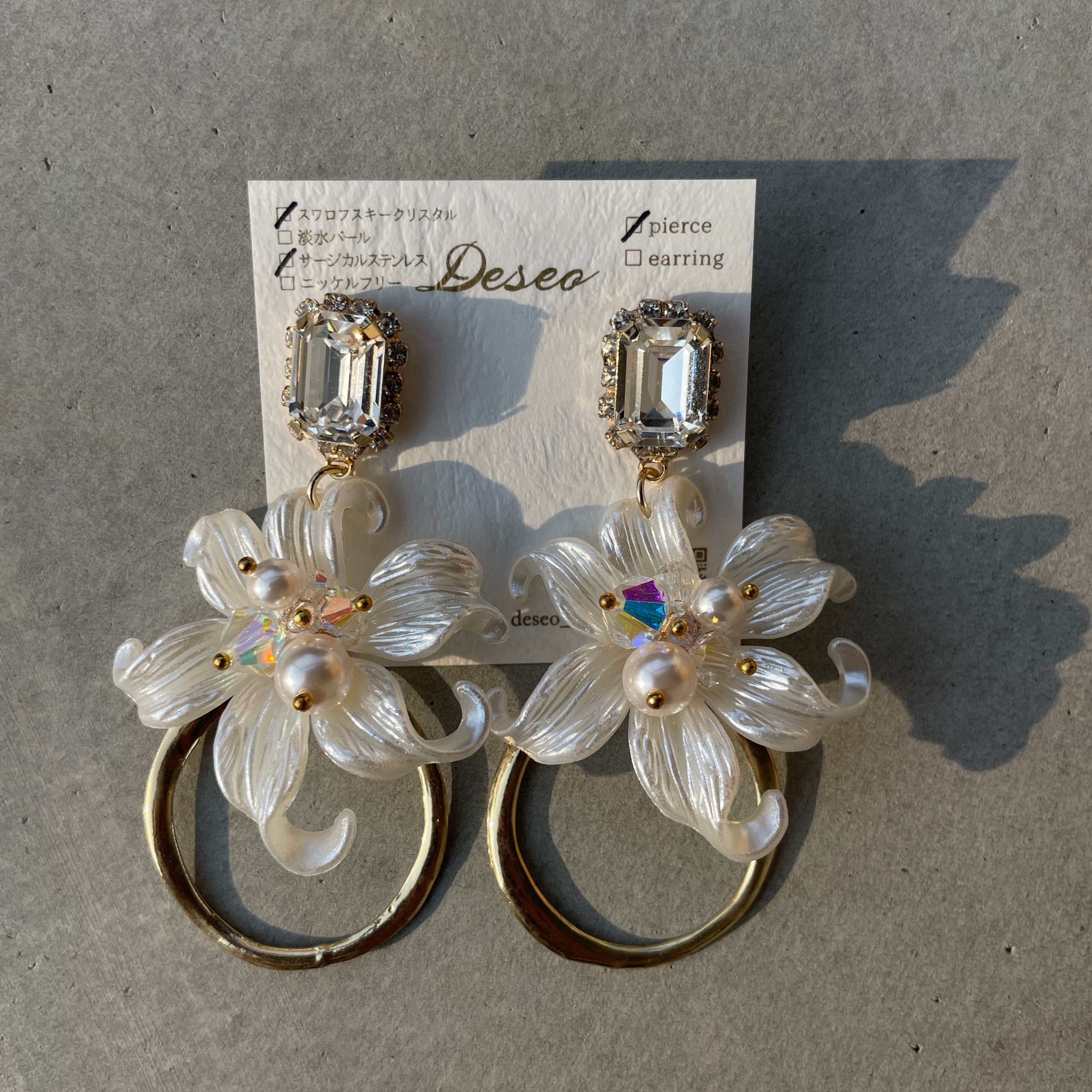 Noble❤️スワロフスキー × カサブランカ☆お花ピアス お花イヤリング✨NO.608