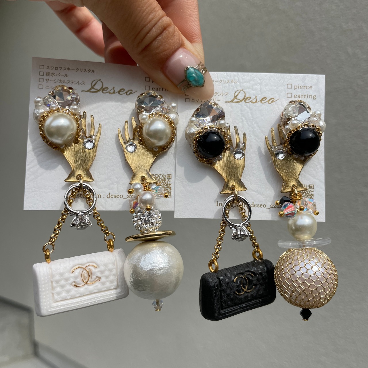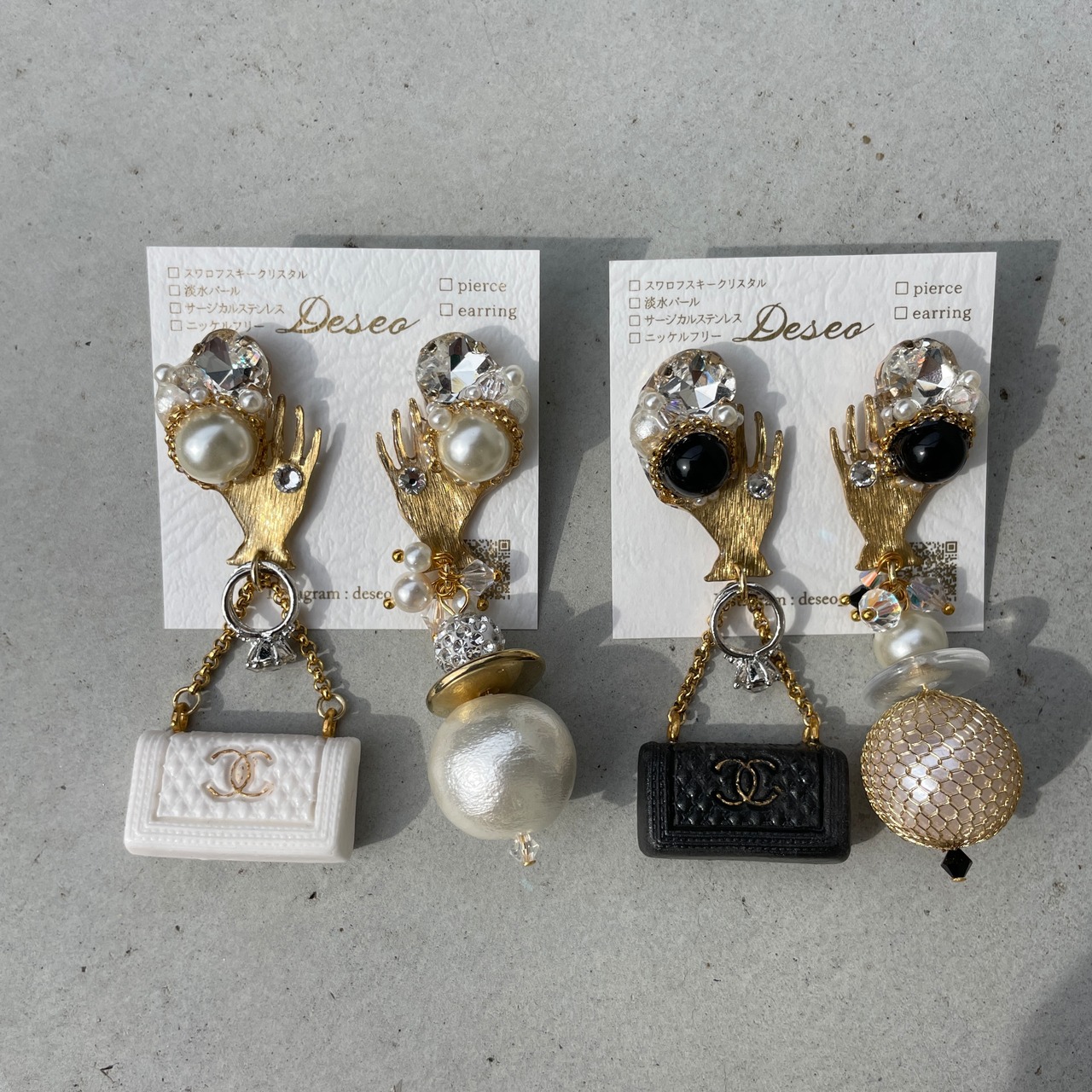 【 物欲 】BLACK バッグ アシメ★バッグピアス バッグイヤリング NO.598