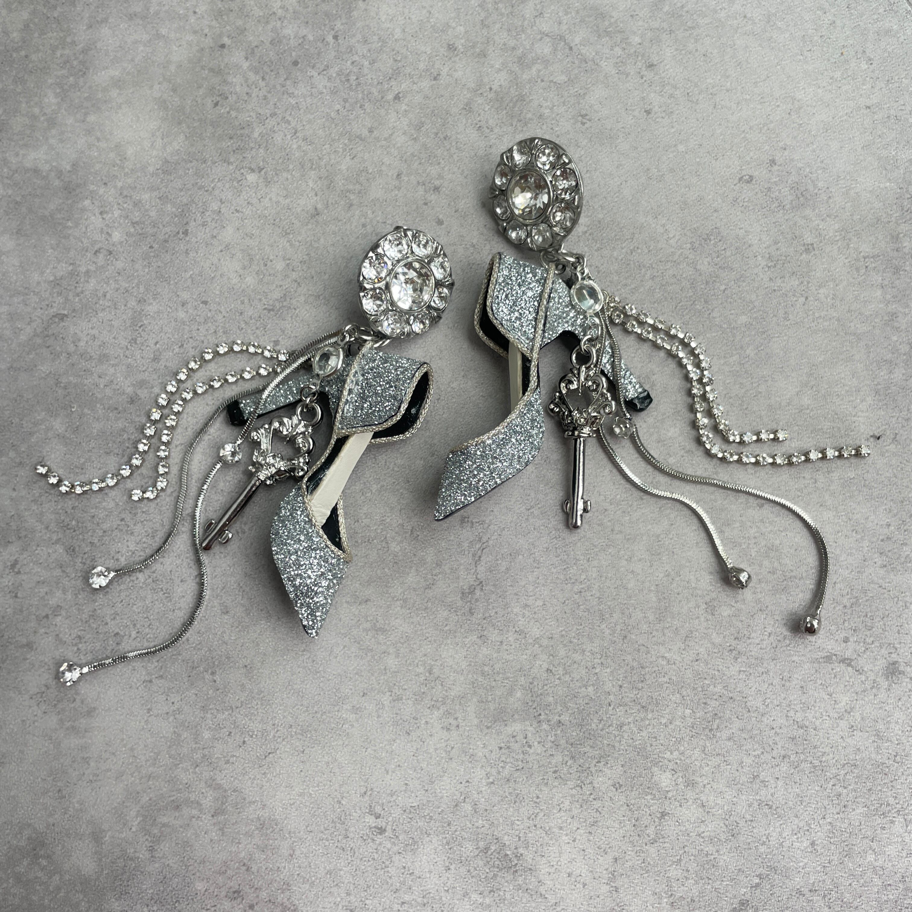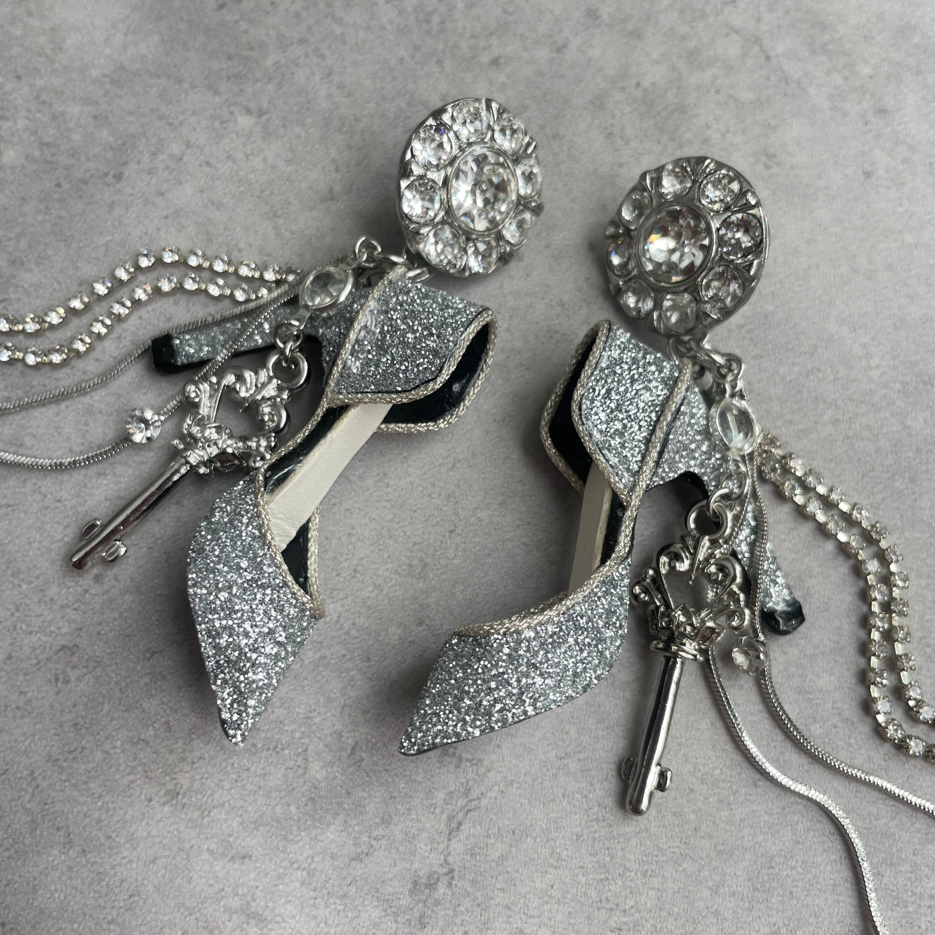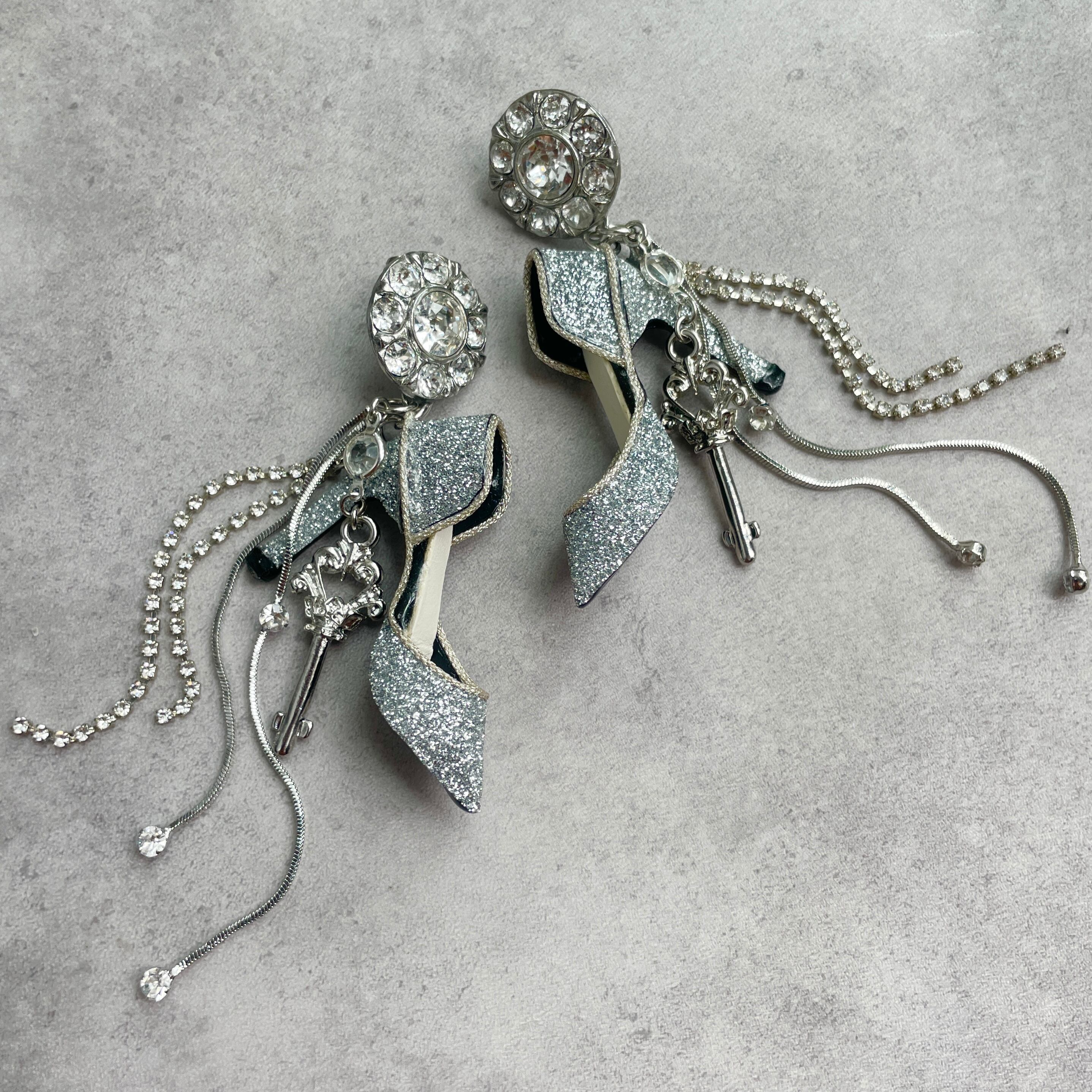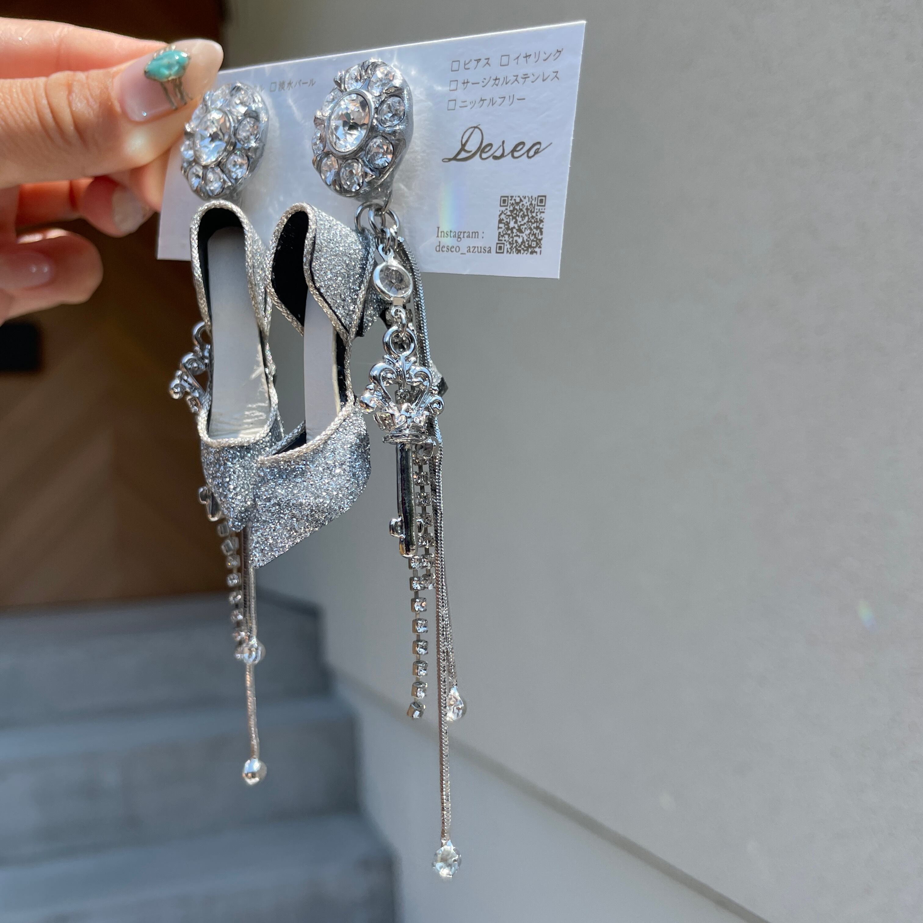 スワロフスキーボタン✨シルバーラメハイヒール❤️ハイヒールピアス NO.619
