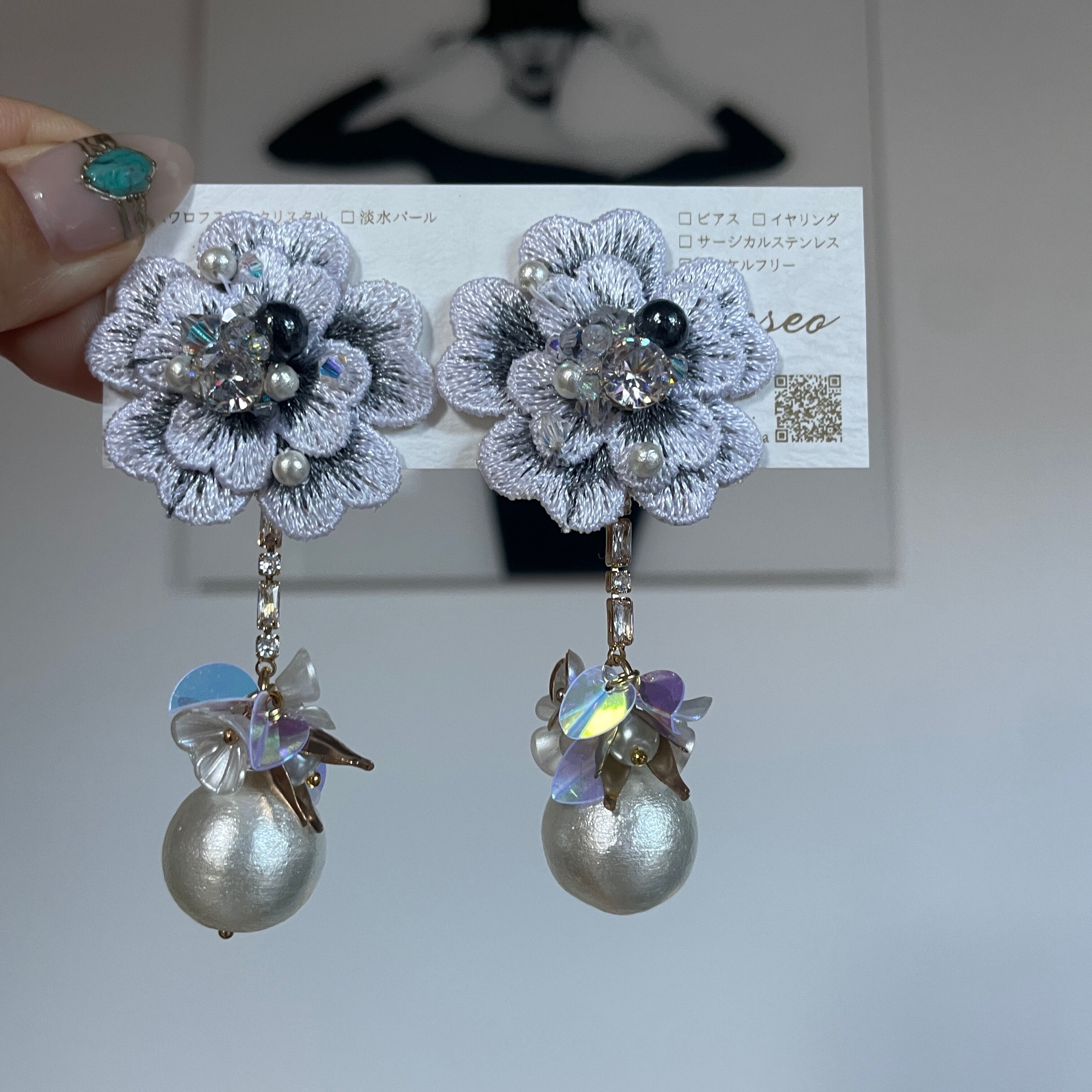 Bijou Flower✨Gray✨お花ピアス お花イヤリング NO.624