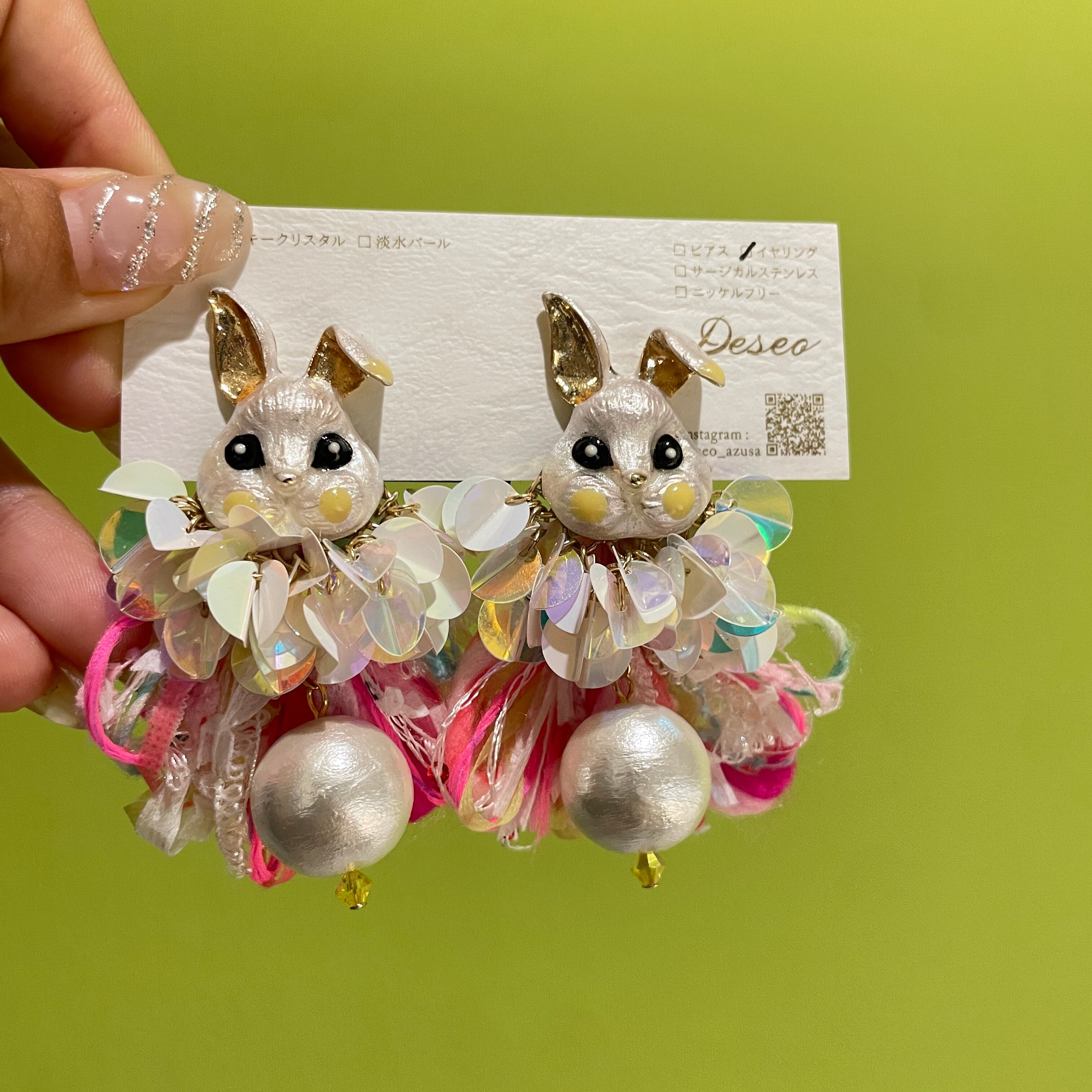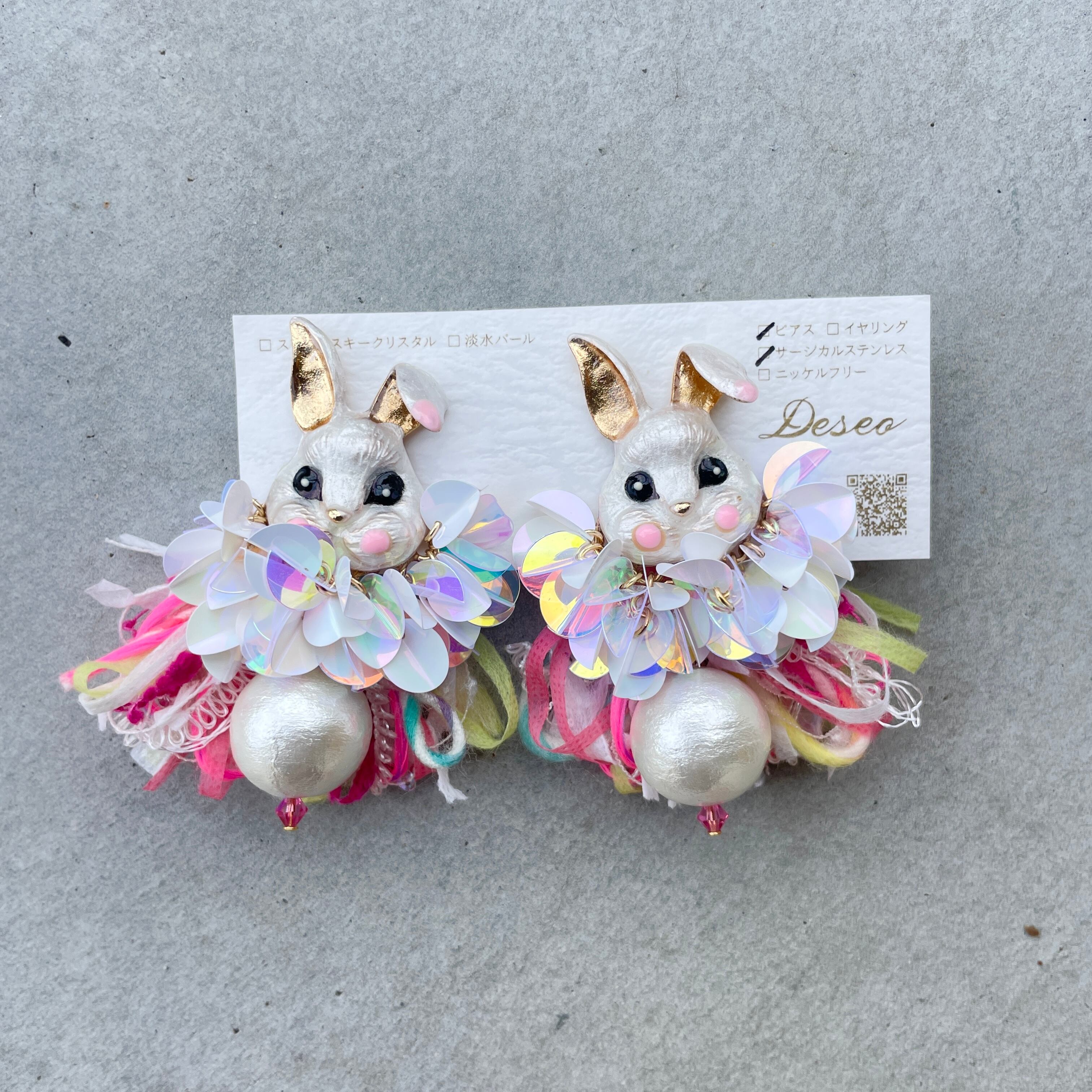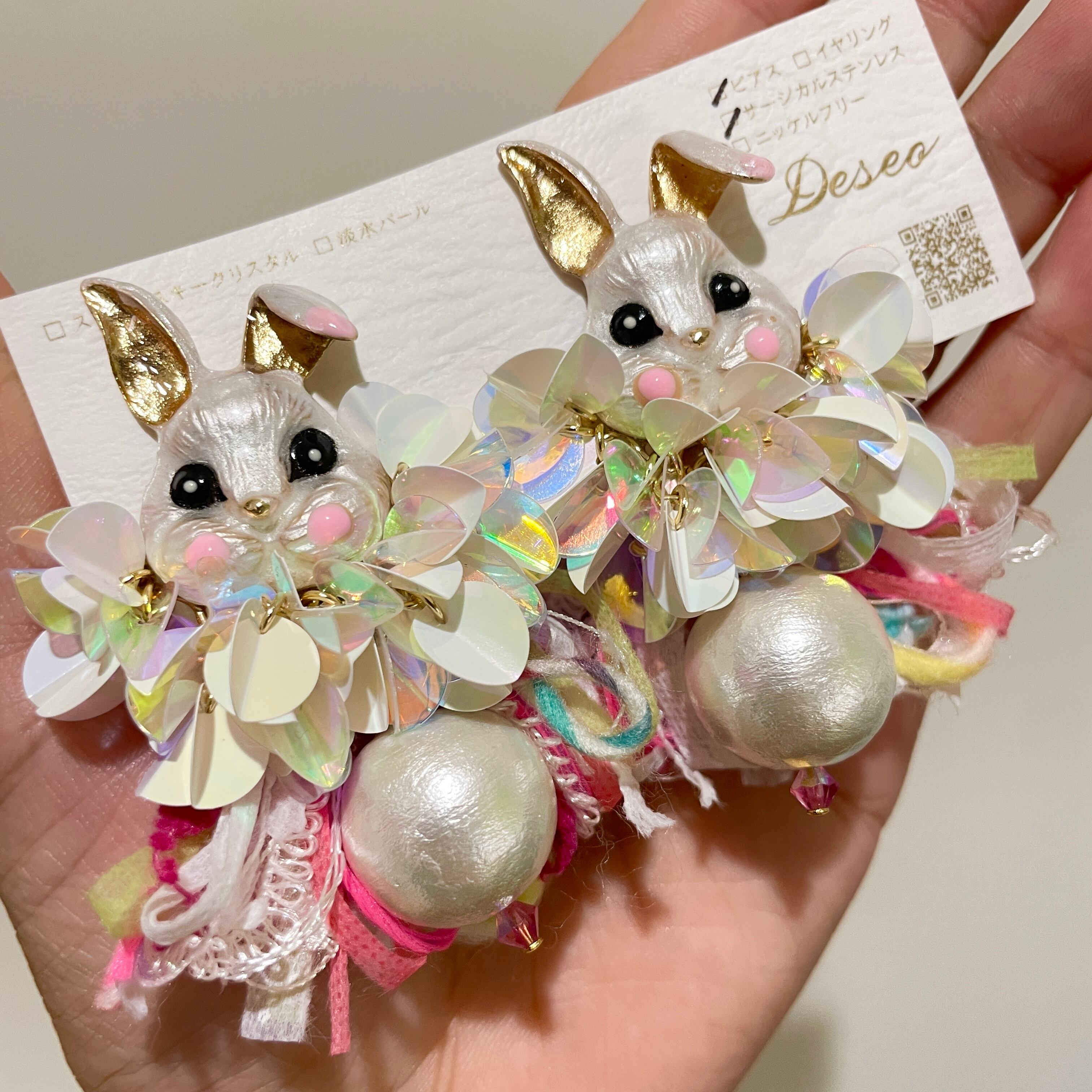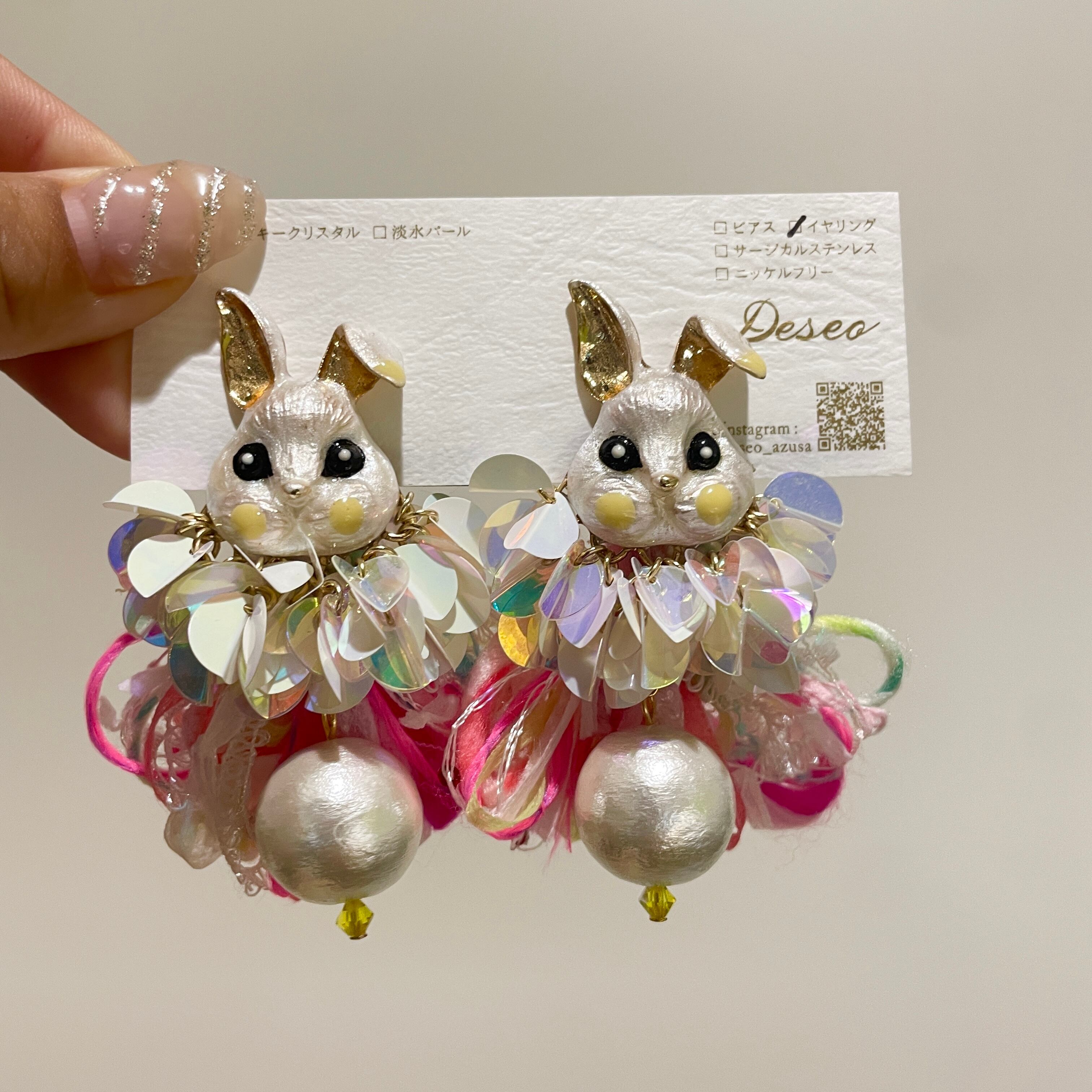 うさぎ❤️ギラMOJA★うさぎピアス うさぎイヤリング NO.648