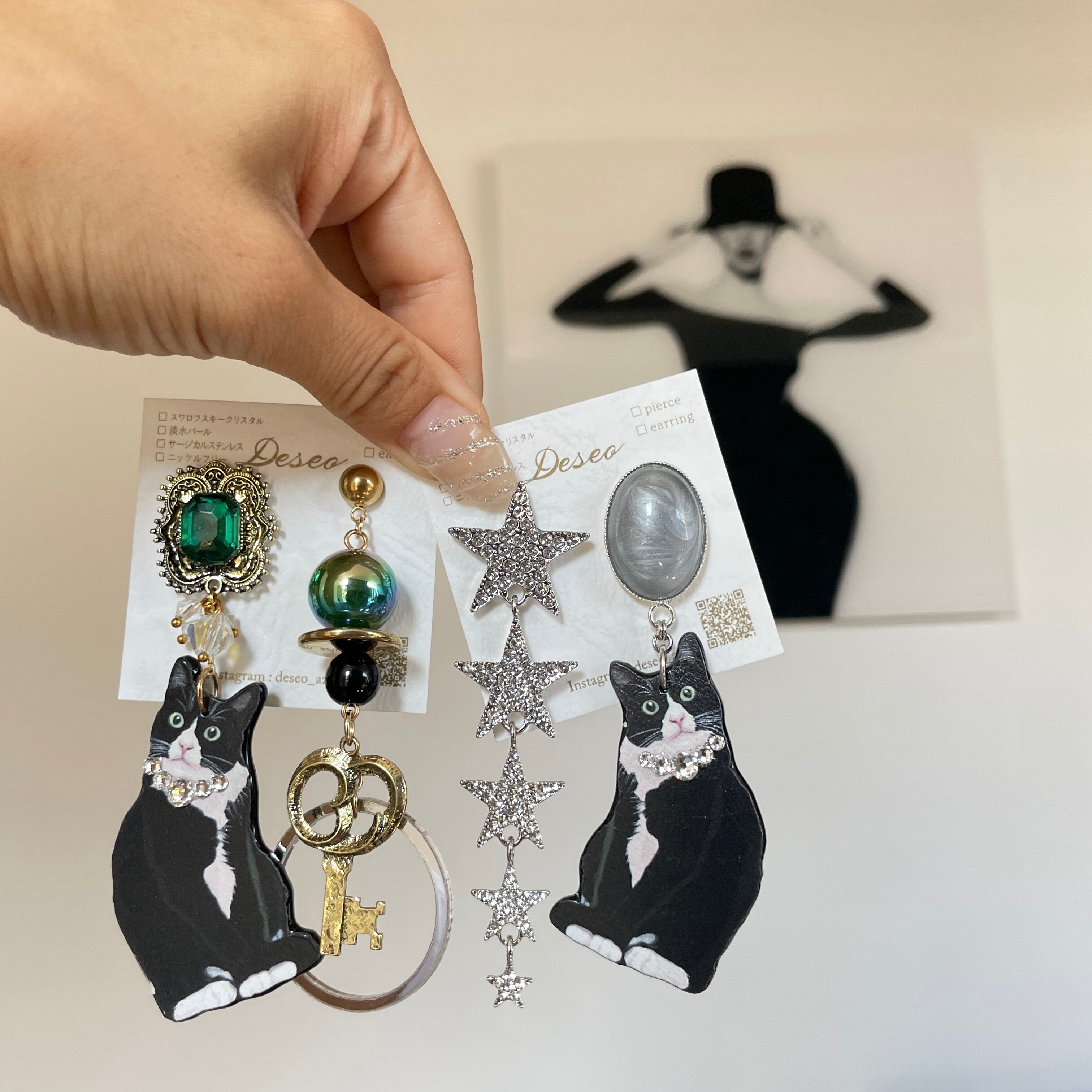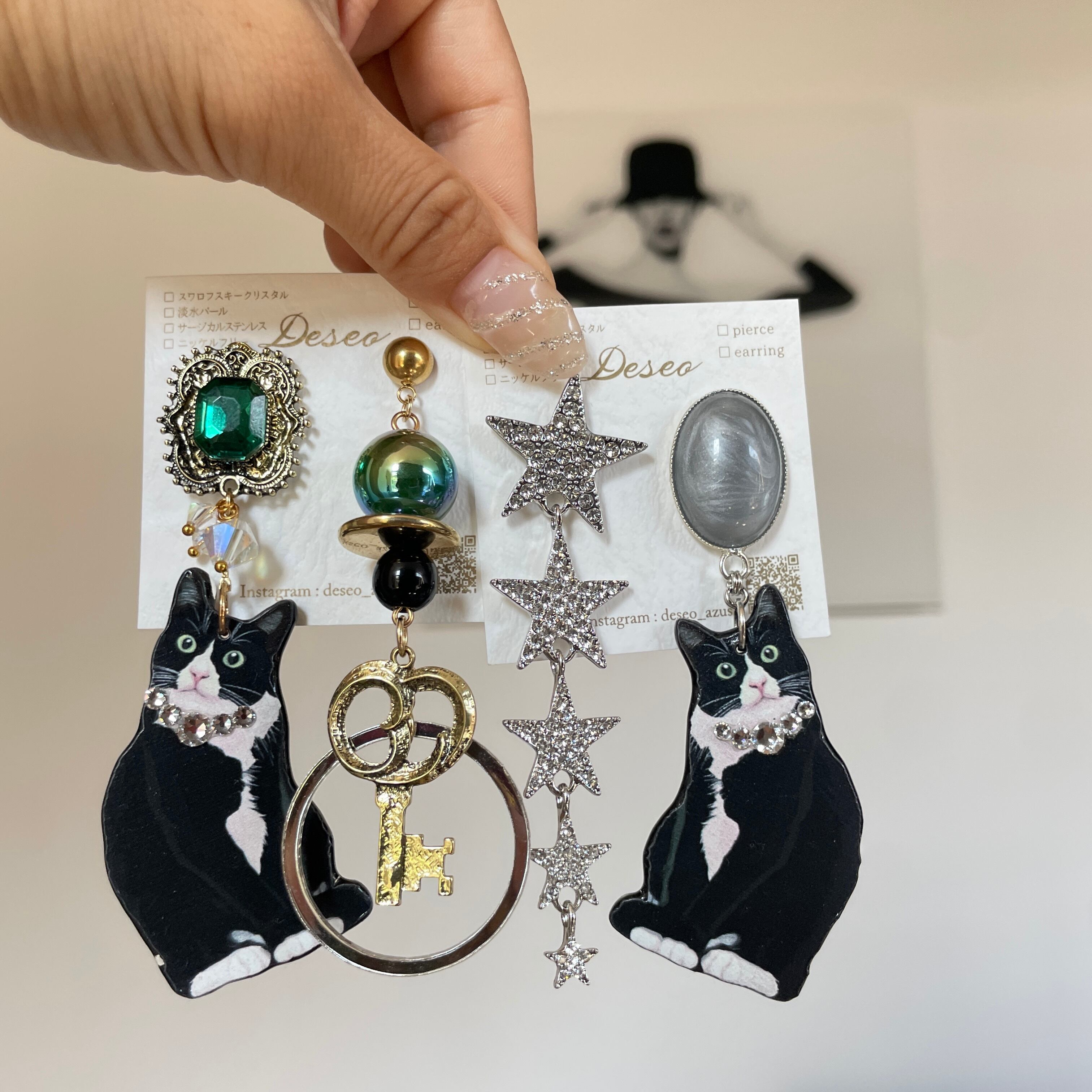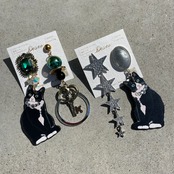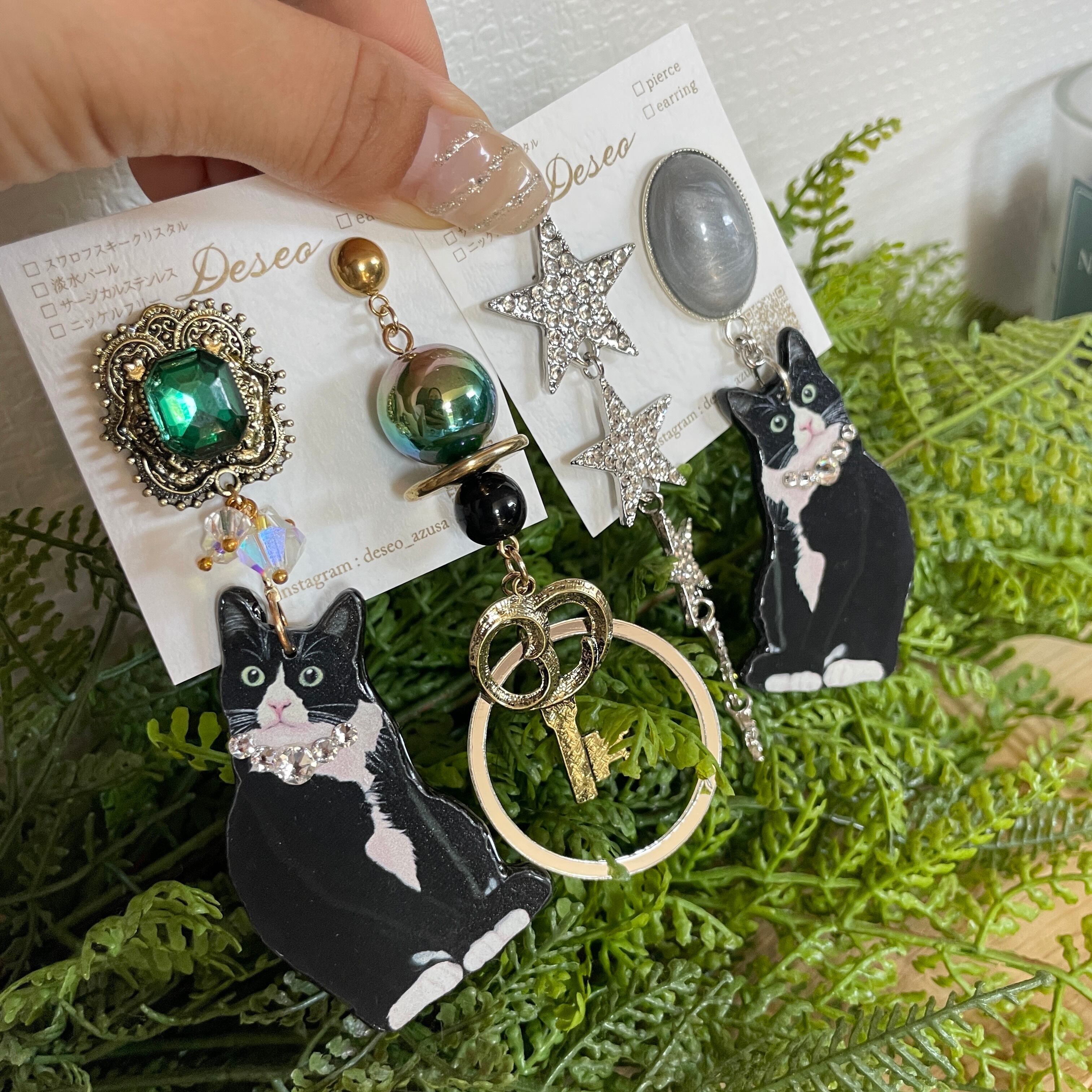 Cat : Silver❤️ハチワレ✨ネコピアス ネコイヤリング 猫ピアス 猫イヤリング NO.655