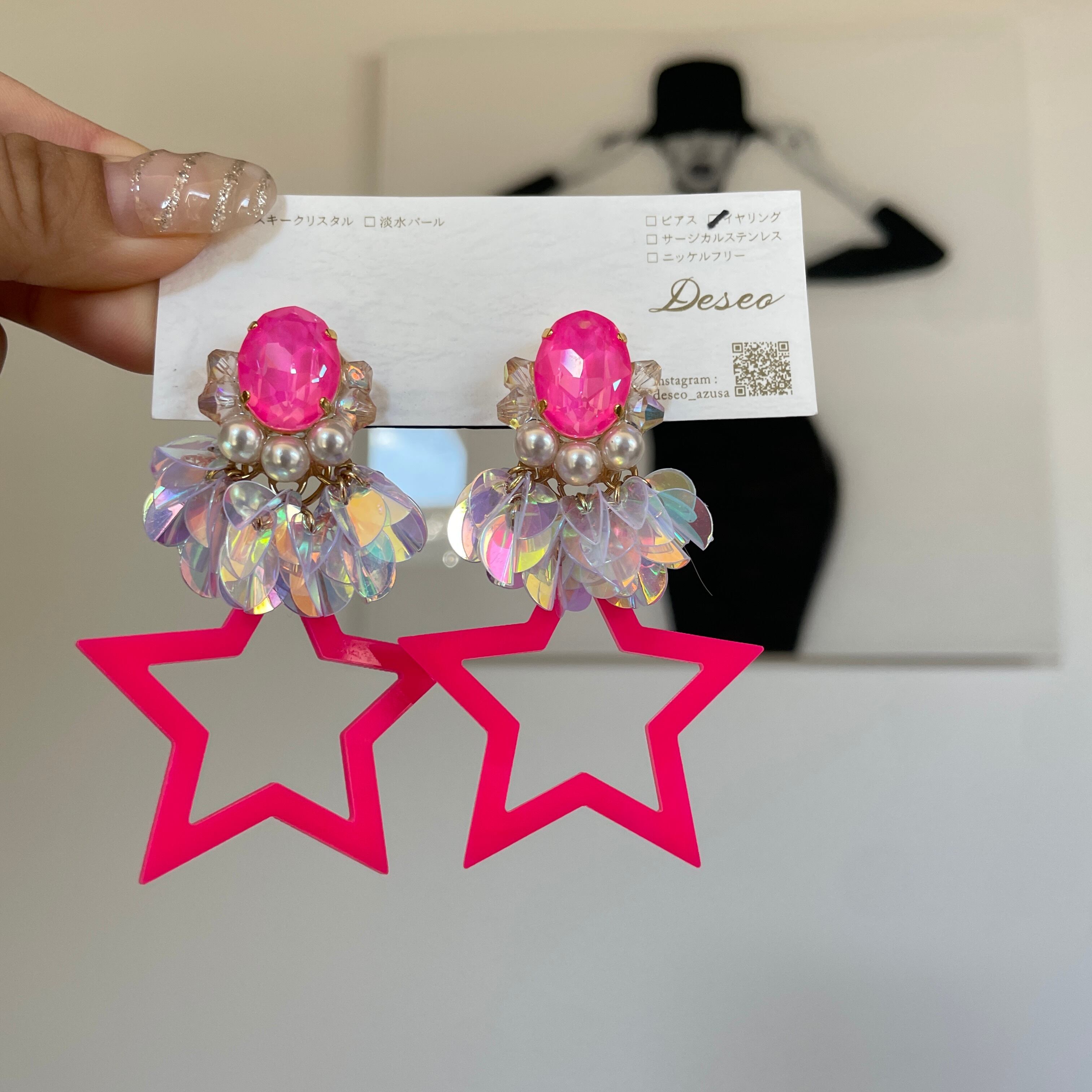 スワロフスキー × スパンコール × 星☆✨スワロフスキーピアス スワロフスキーイヤリング NO.669