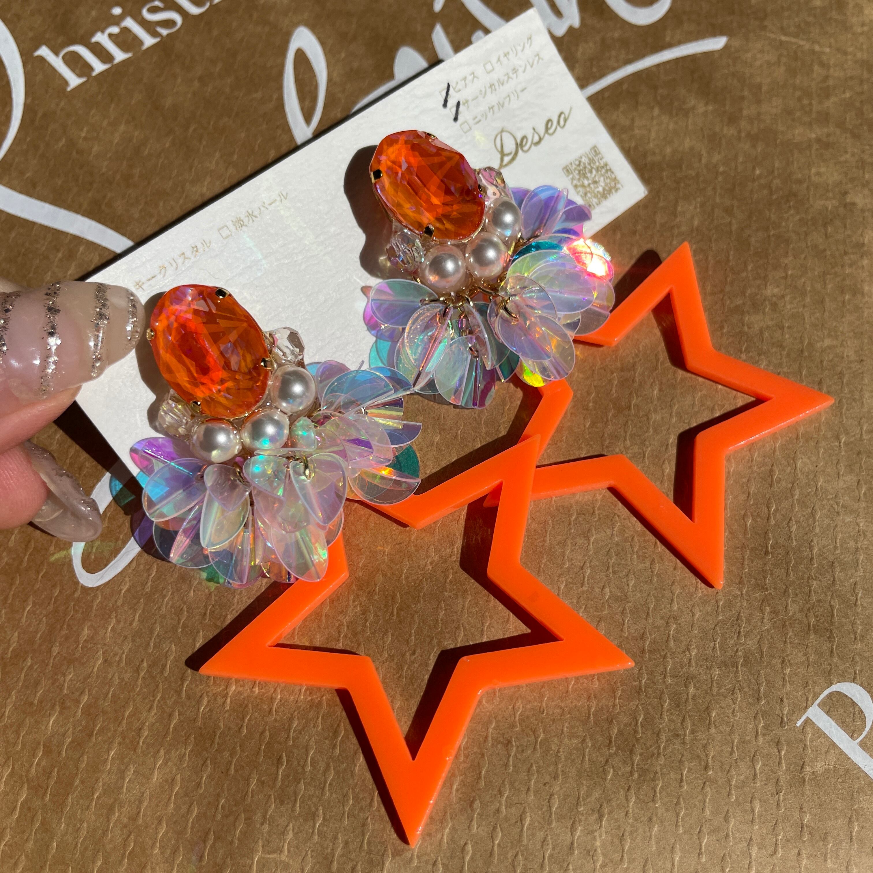 スワロフスキー × スパンコール × 星☆✨スワロフスキーピアス スワロフスキーイヤリング NO.670