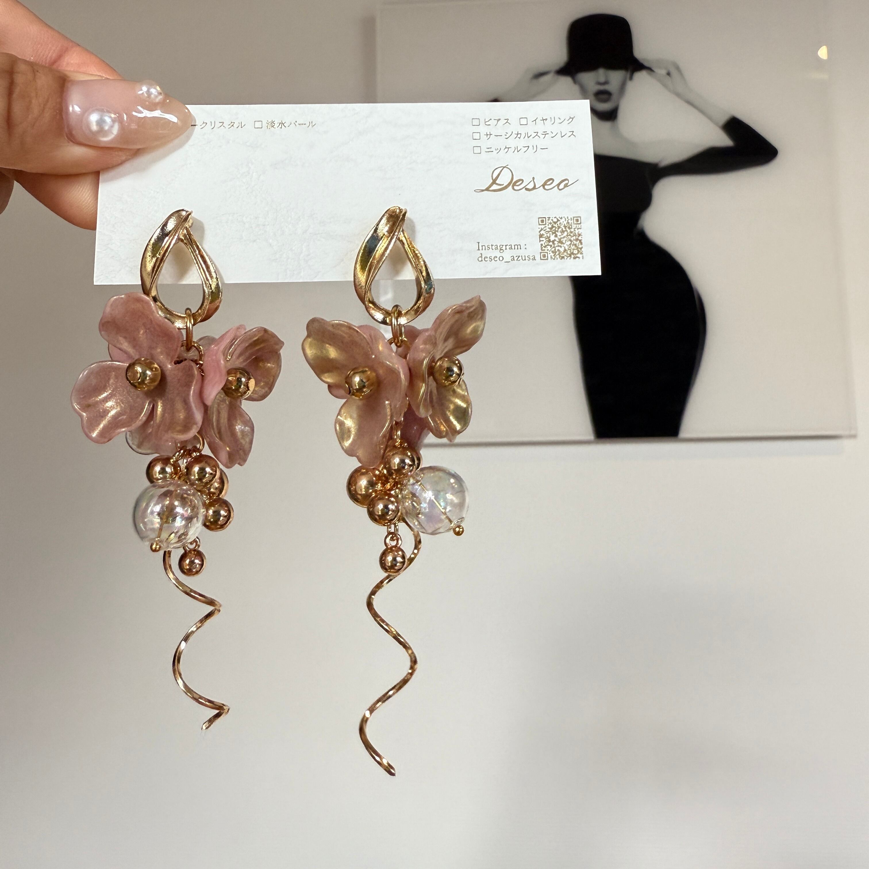 秋色コーデに合いそうな、べっこうフラワーと、くすみピンク