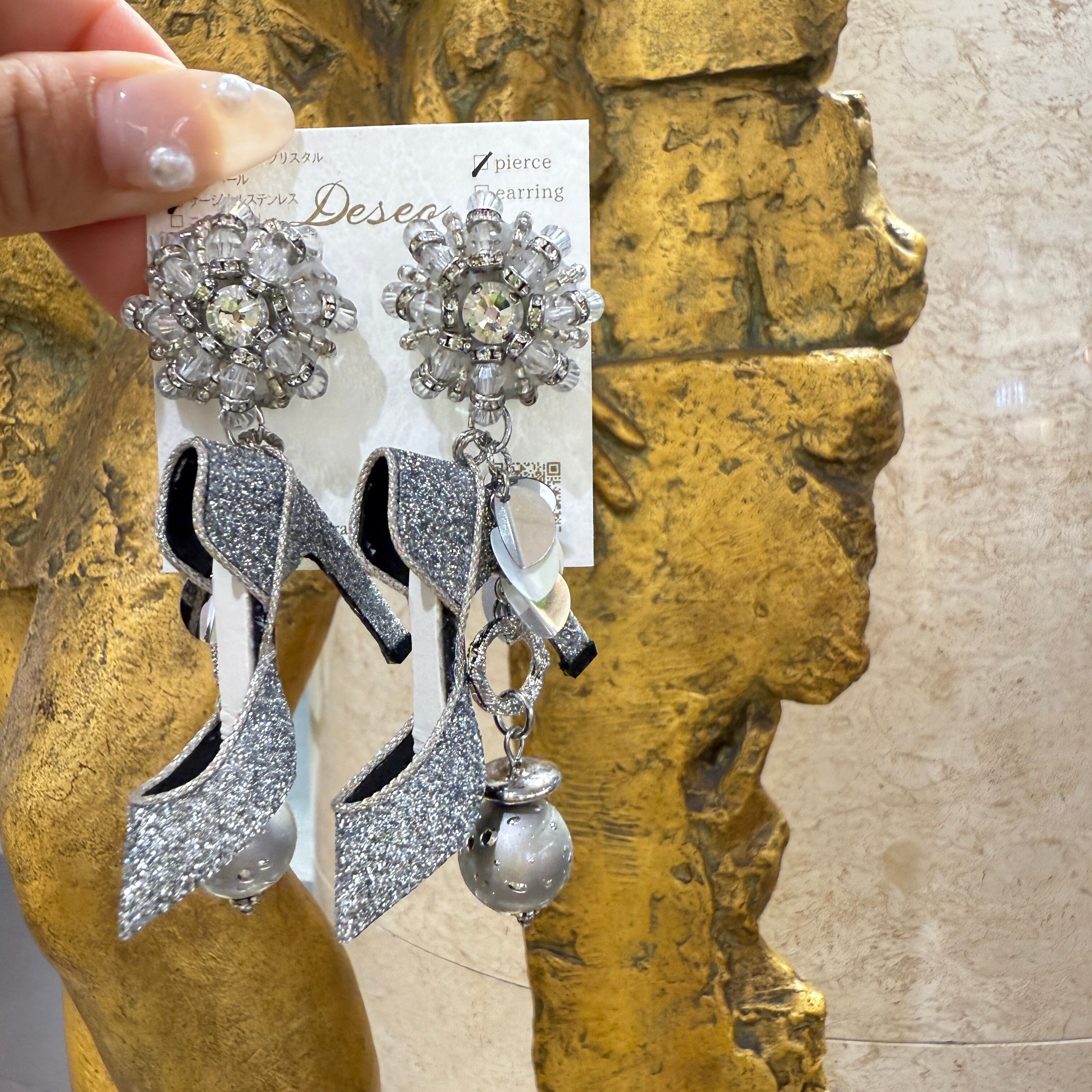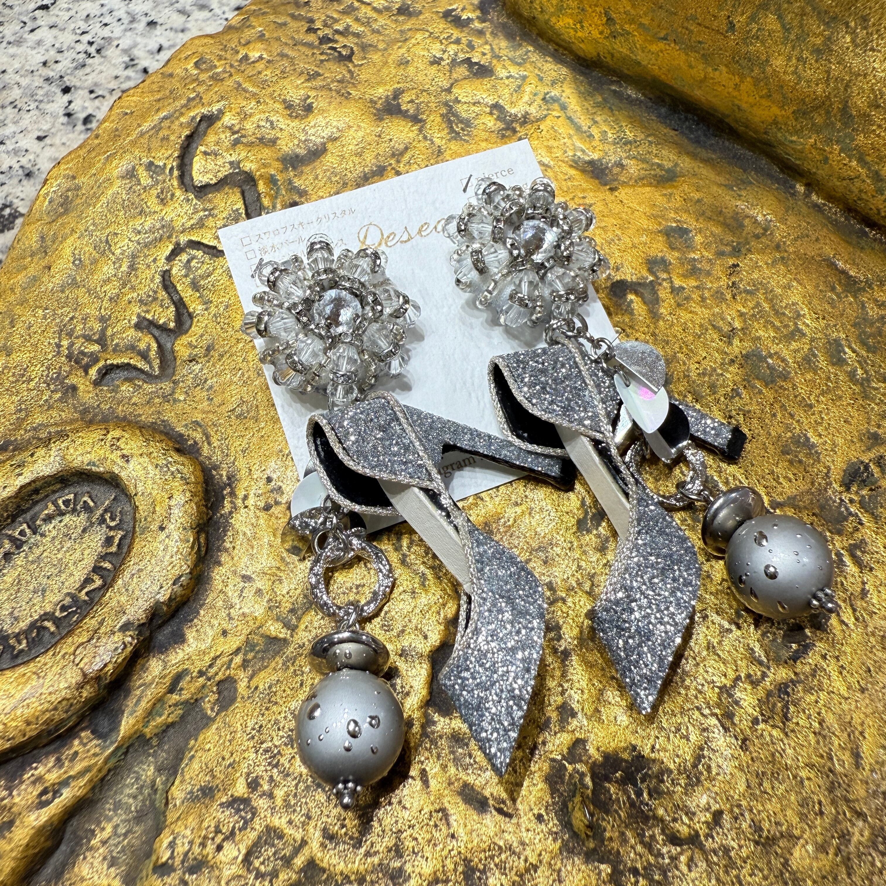 シルバーレザーハイヒール❤️ハイヒールピアス ハイヒールイヤリング✨ NO.683