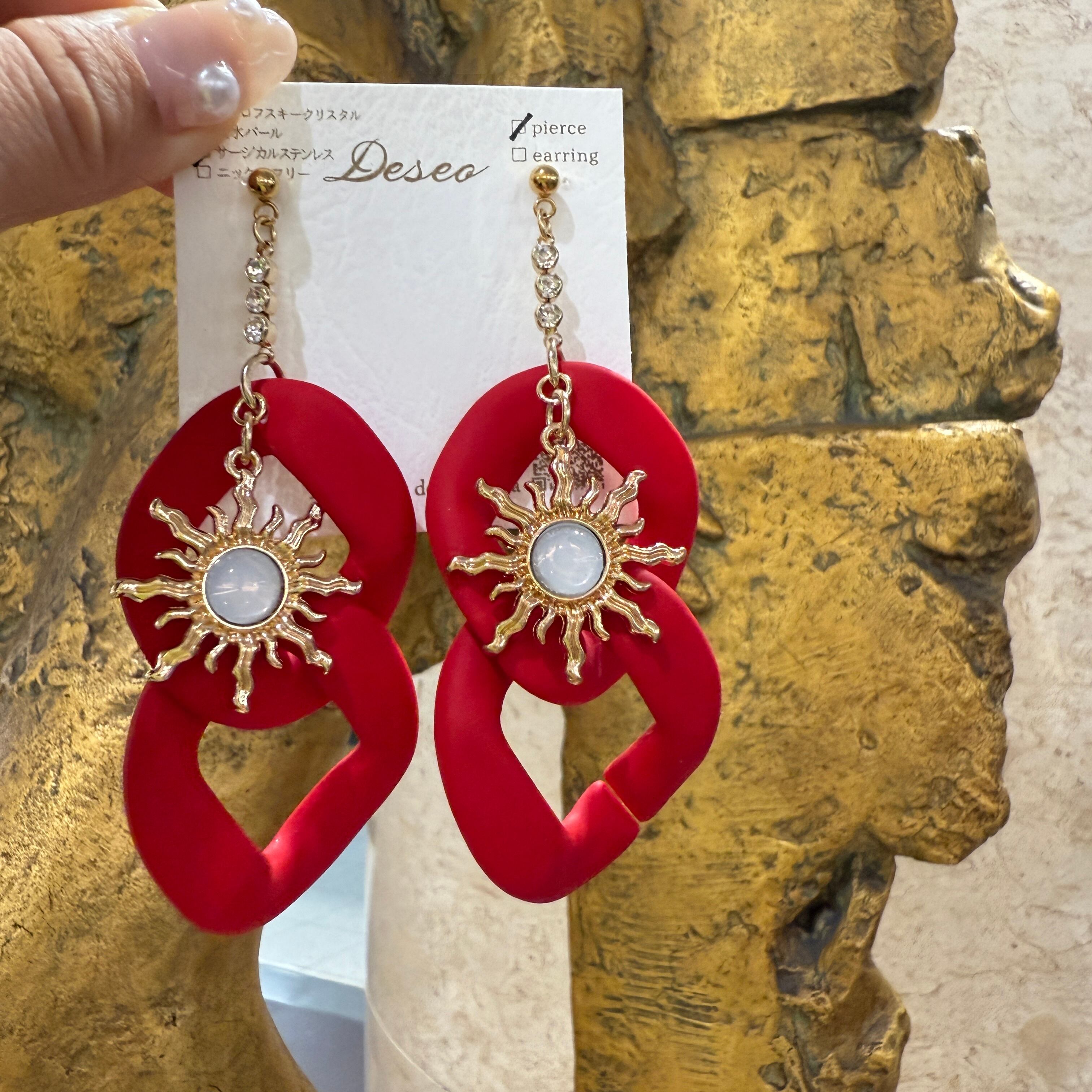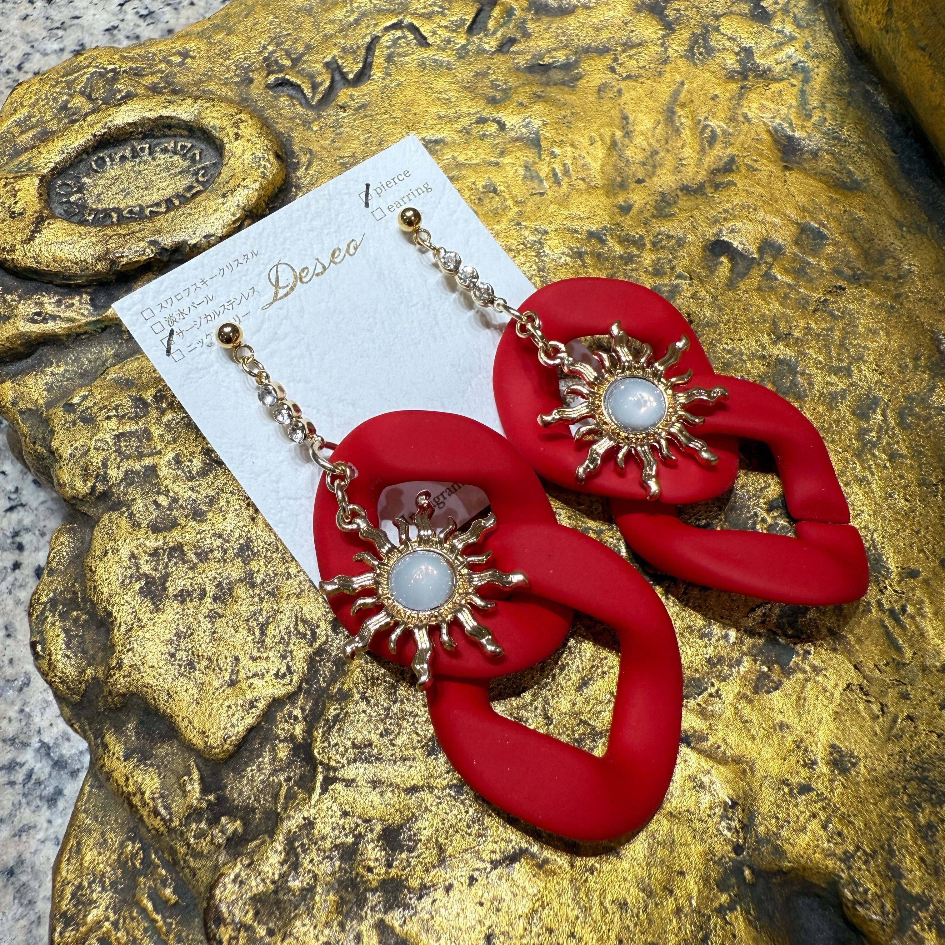 マットレッドチェーン★赤ピアス 赤イヤリング NO.684