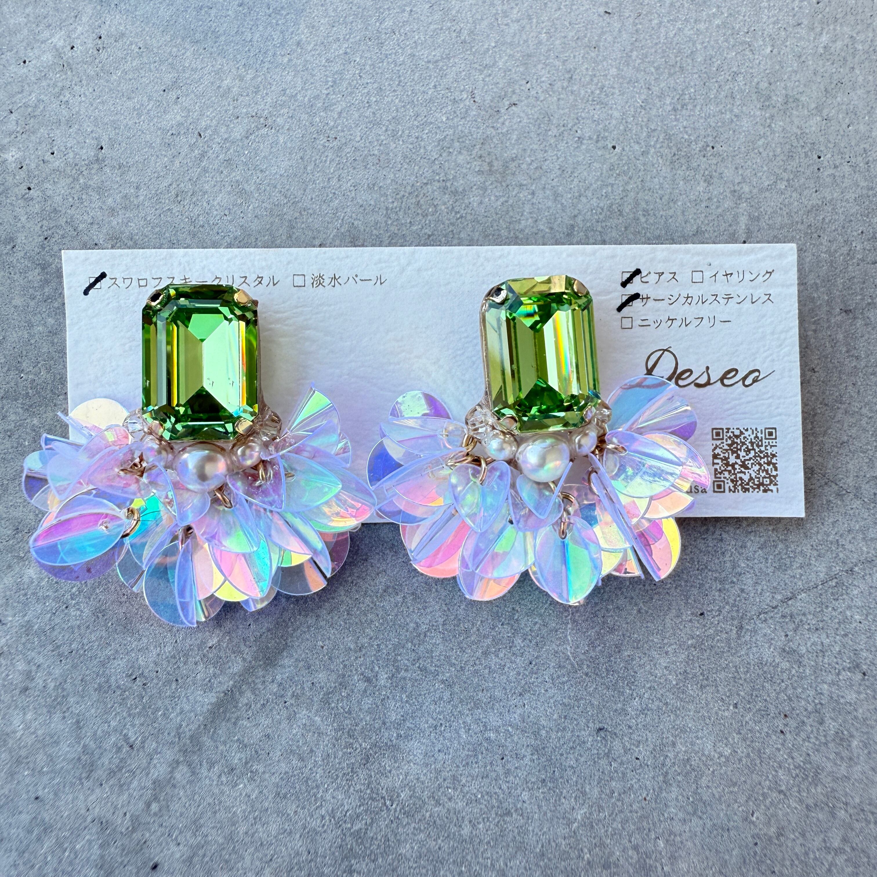 スワロフスキー × スパンコール✨スワロフスキーピアス スワロフスキーイヤリング NO.691
