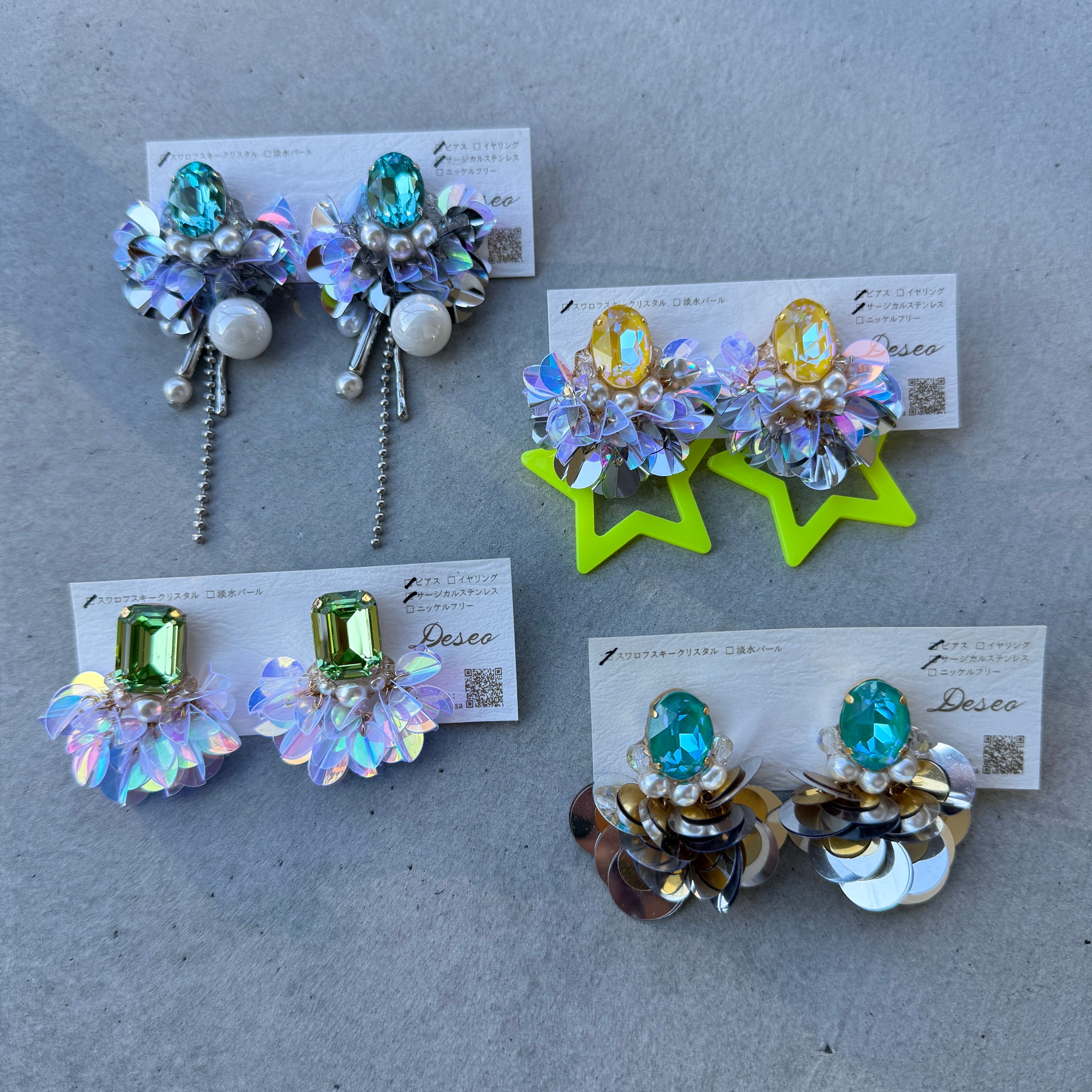 スワロフスキー × スパンコール✨スワロフスキーピアス スワロフスキーイヤリング NO.693
